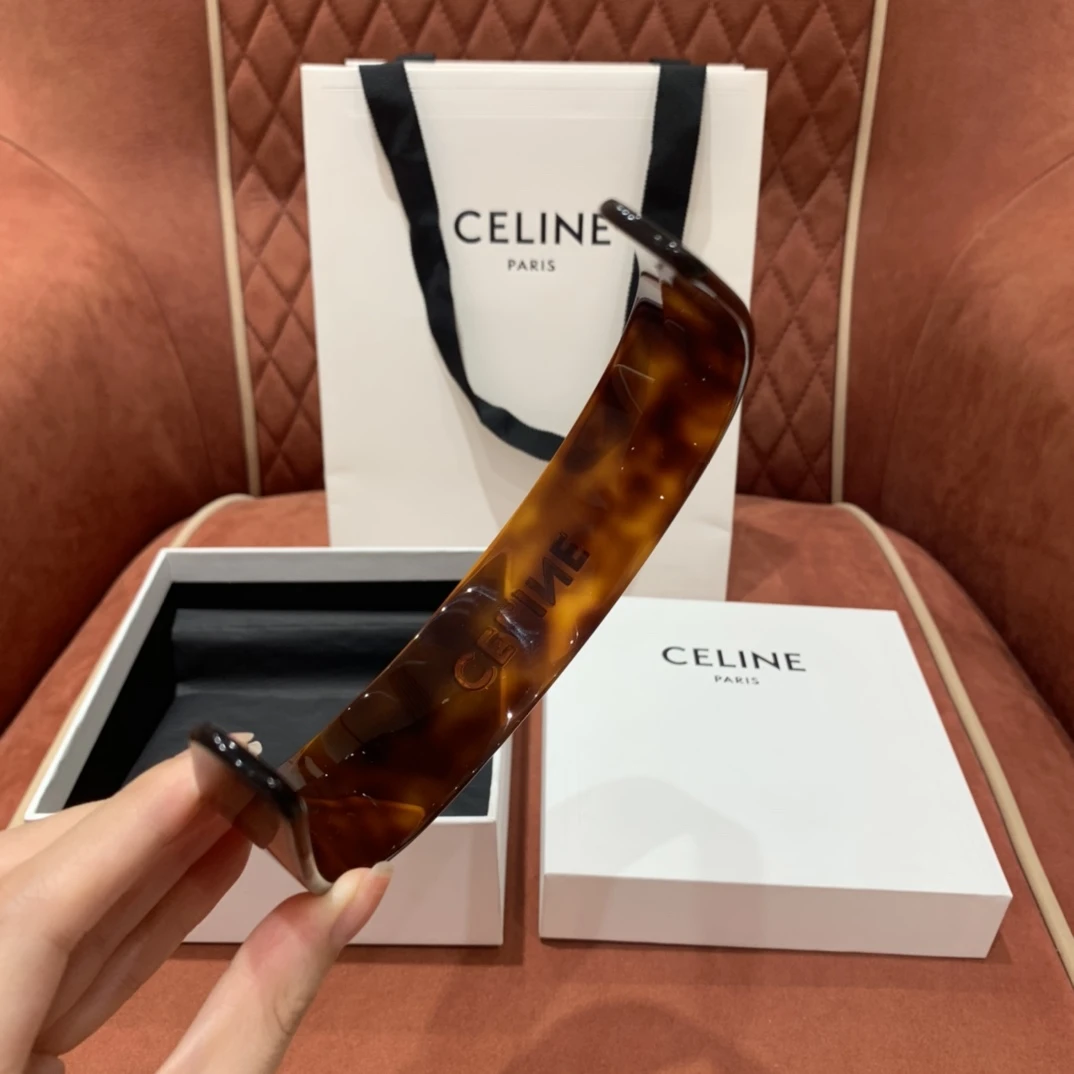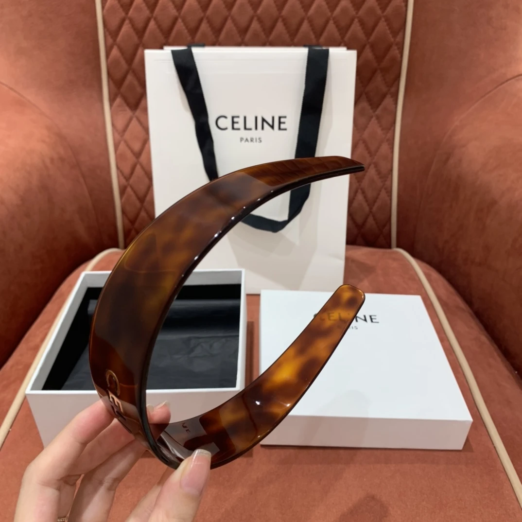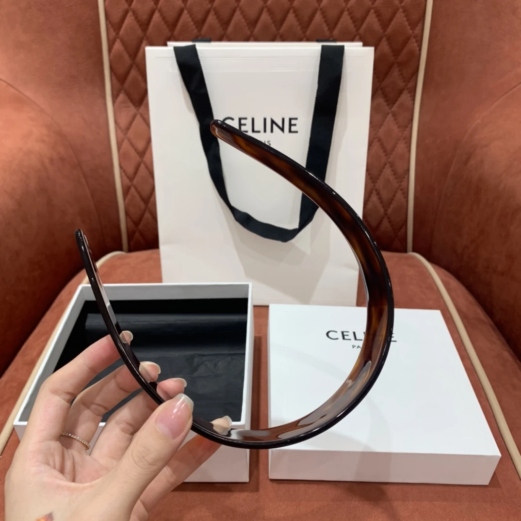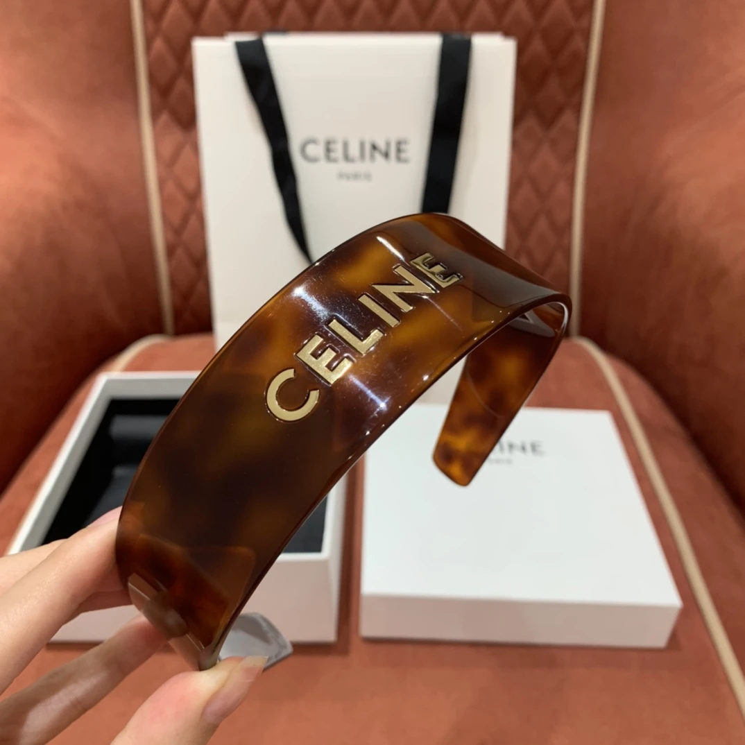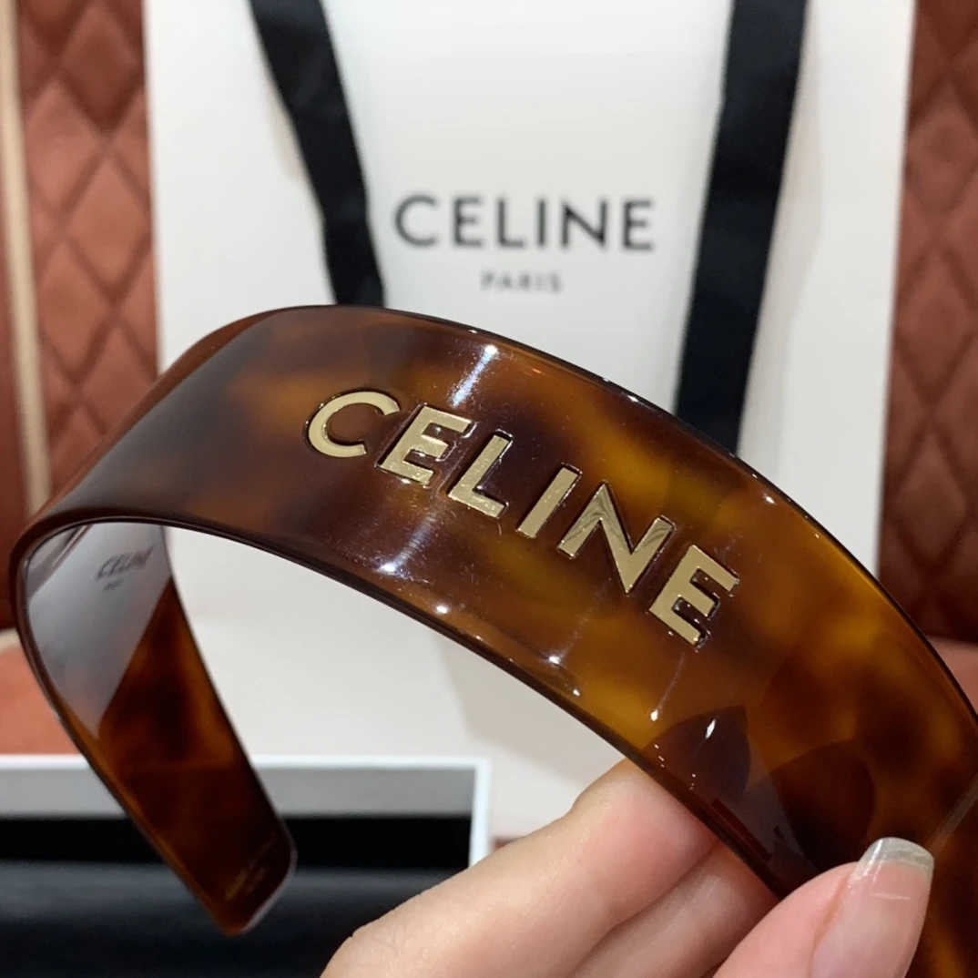 • Дизайн: широкий, жёсткий ободок с плавным изгибом и гладкой полированной поверхностью. Центральным акцентом служит рельефный логотип CELINE, выполненный в золотистом металлизированном оттенке.