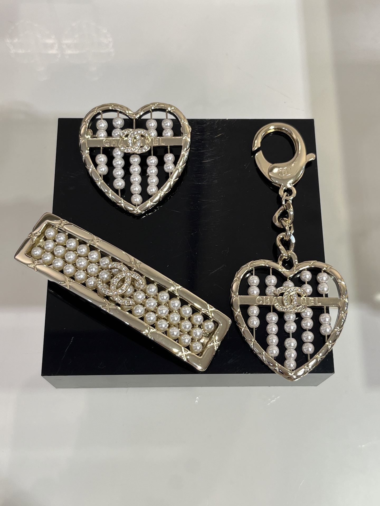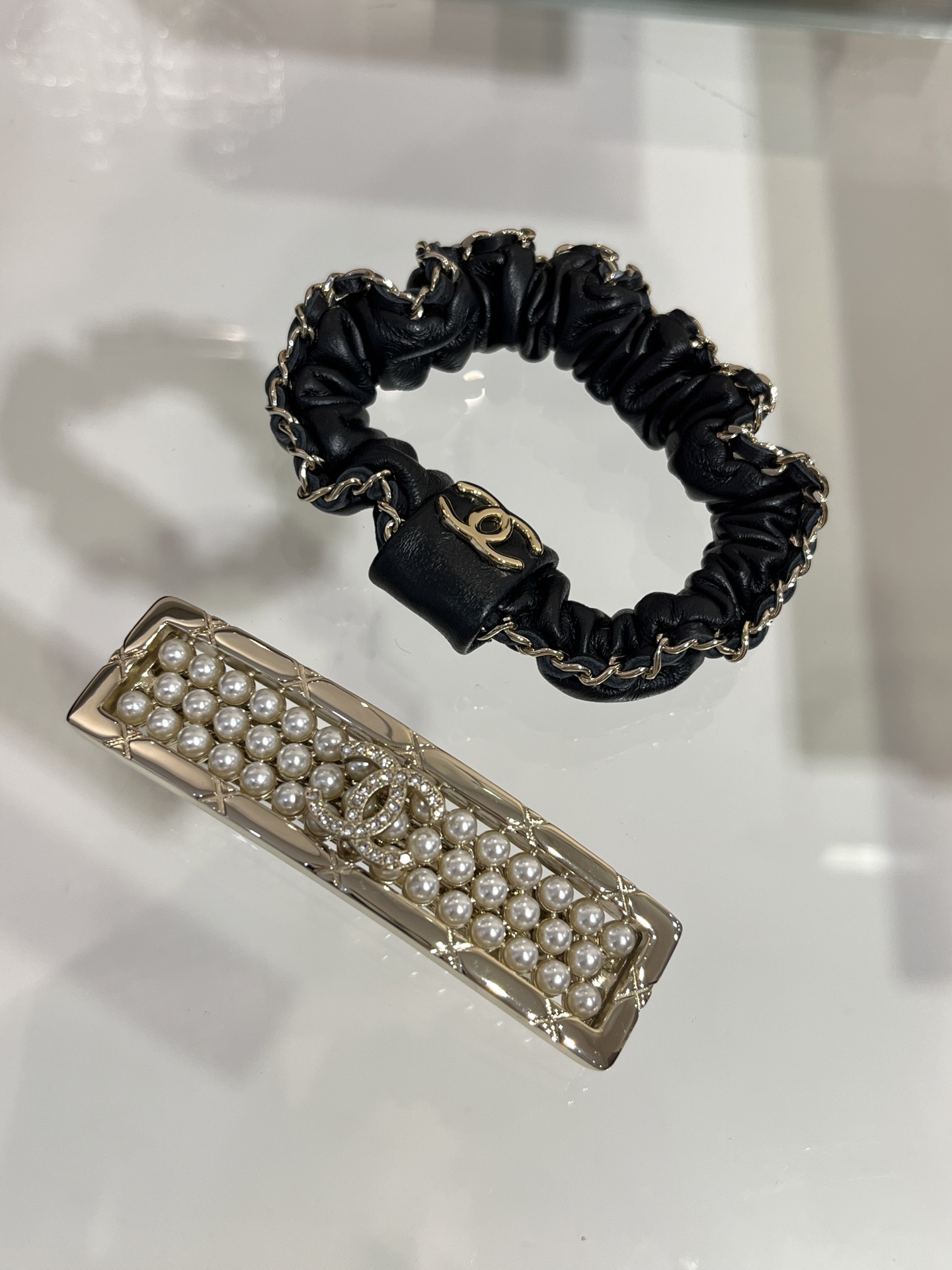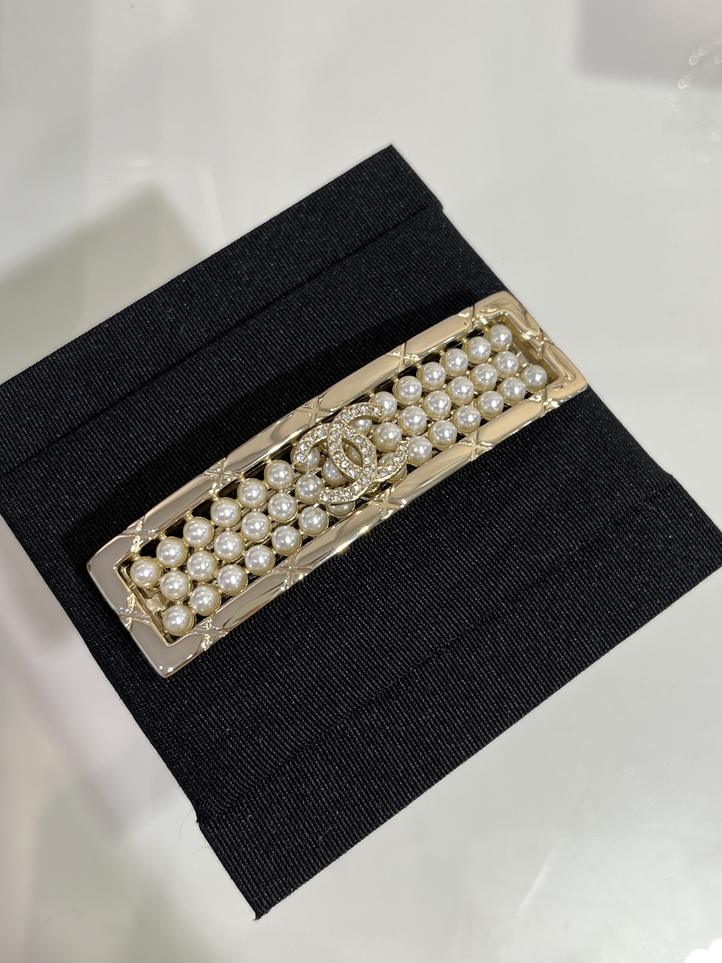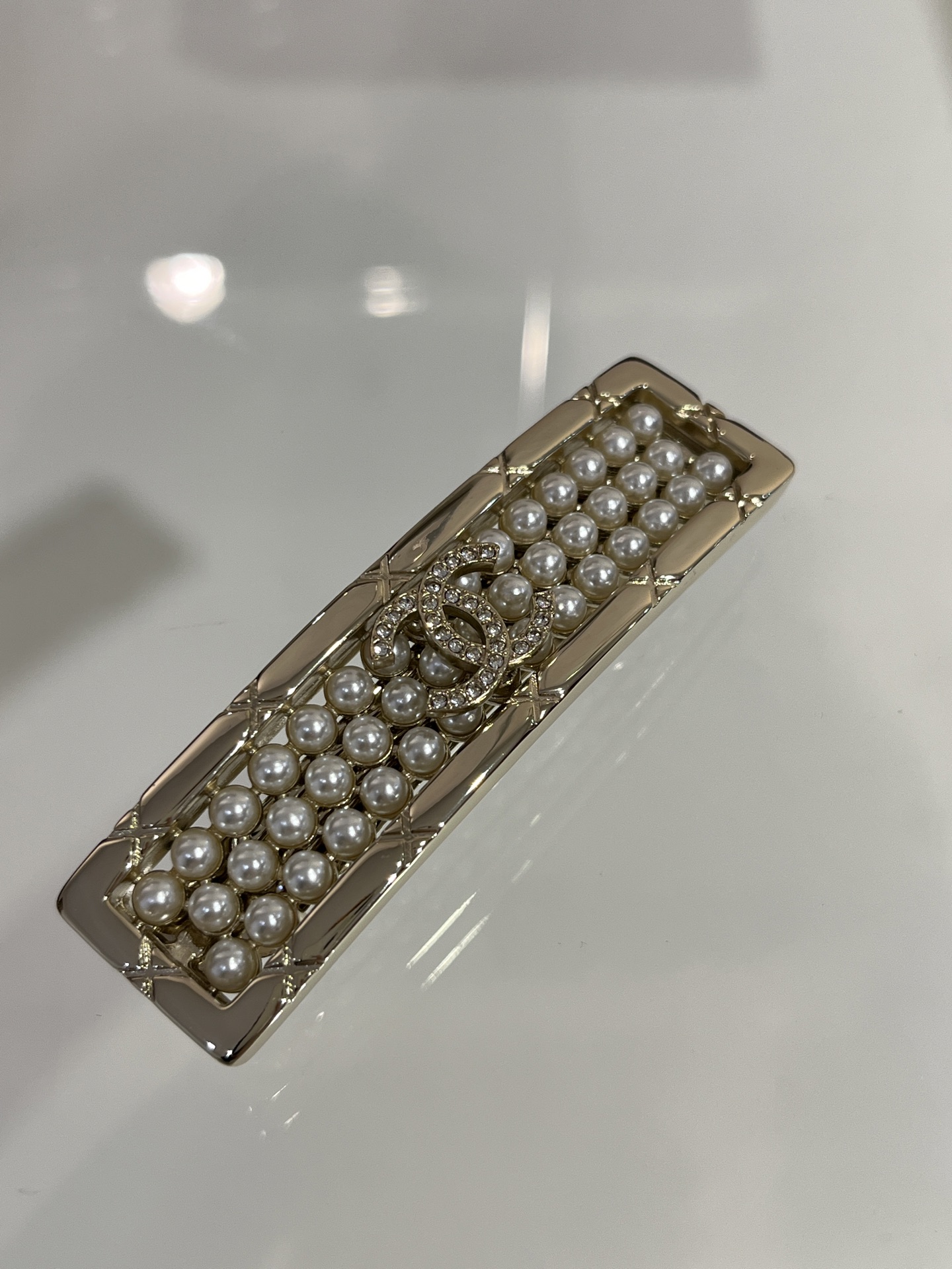 Новая квадратная шпилька для волос от Chanel с двойной жемчужиной в форме буквы C .