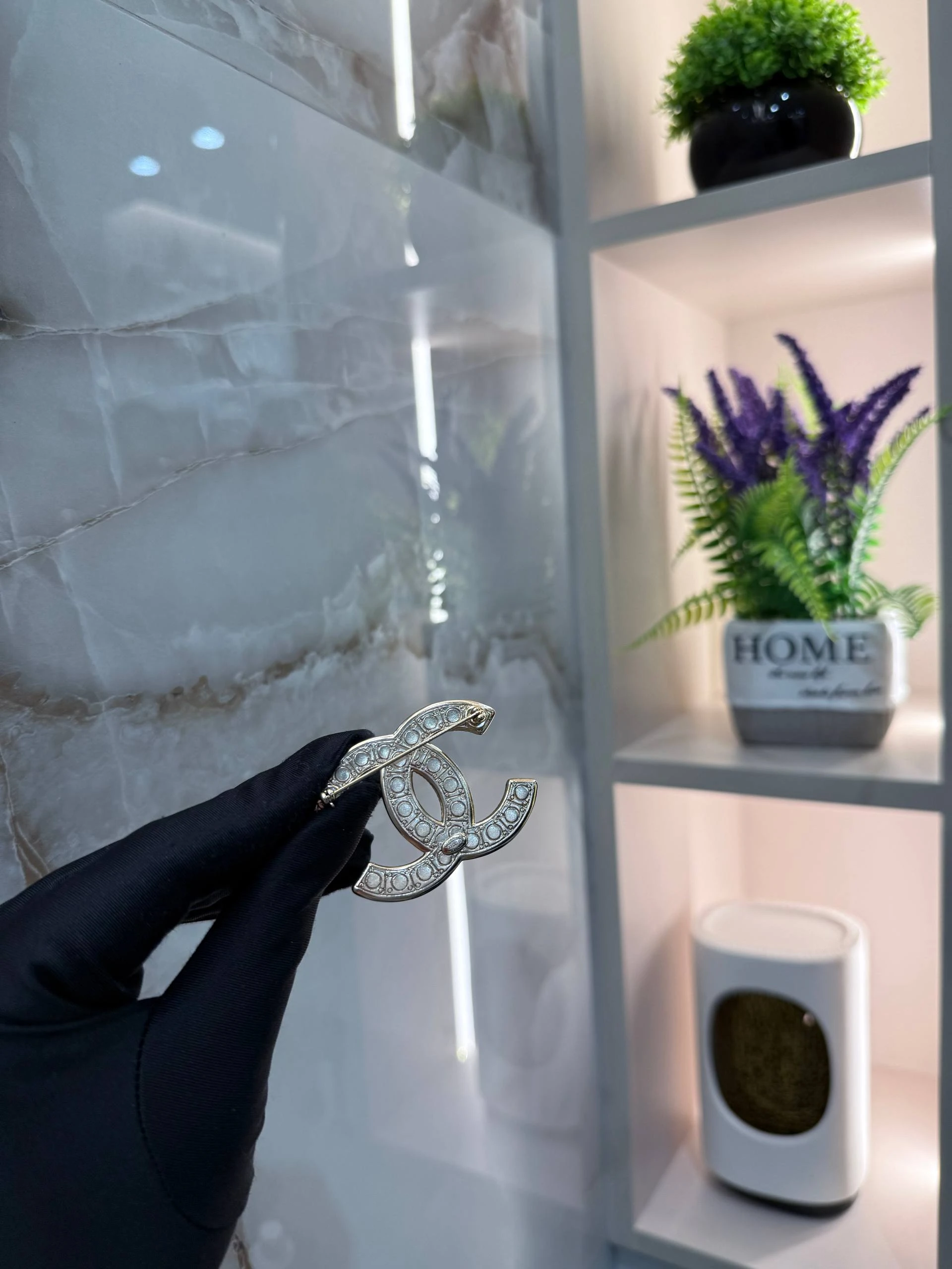 - Узнаваемый логотип CHANEL — переплетенные буквы «CC» как символ статуса