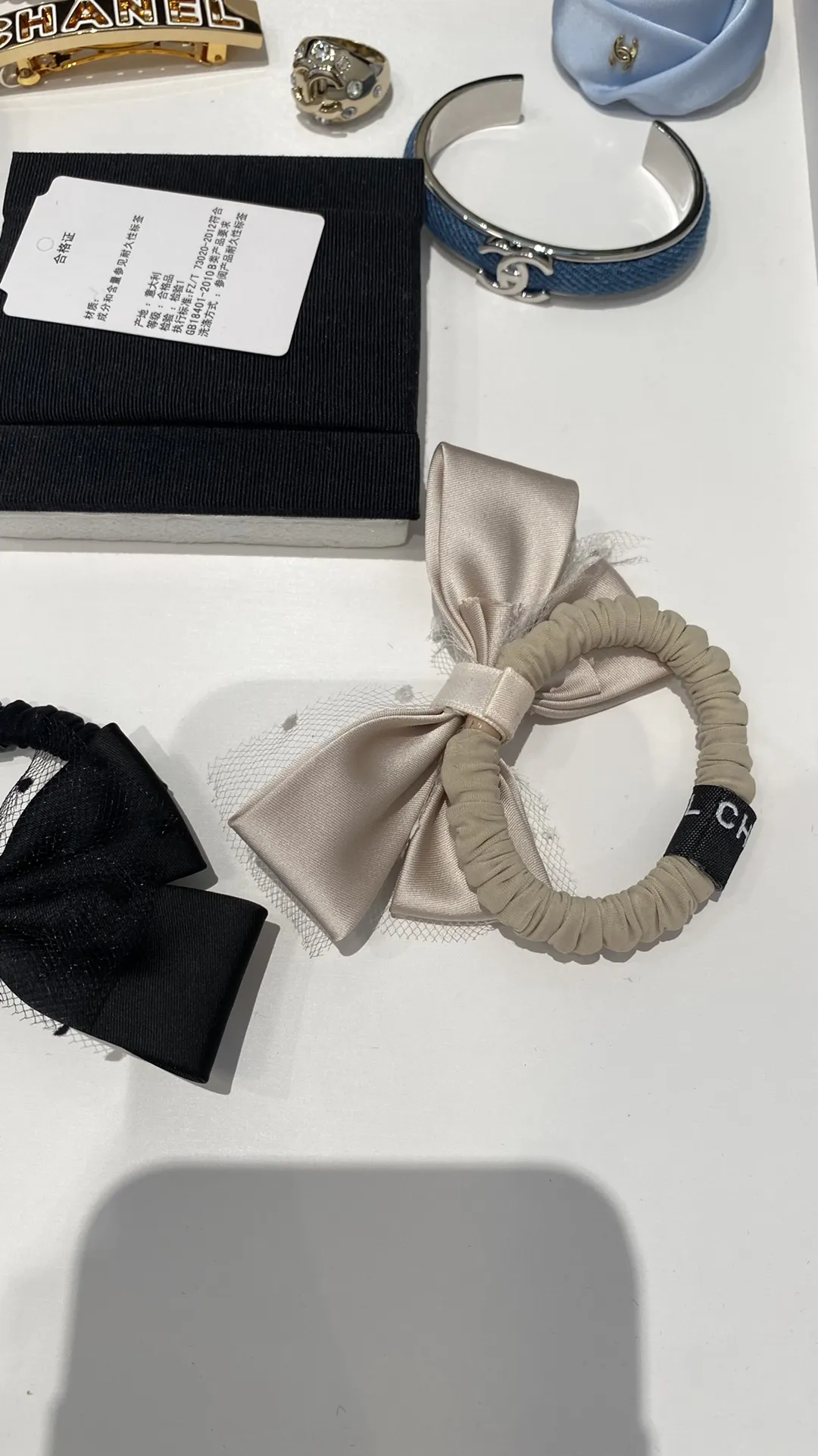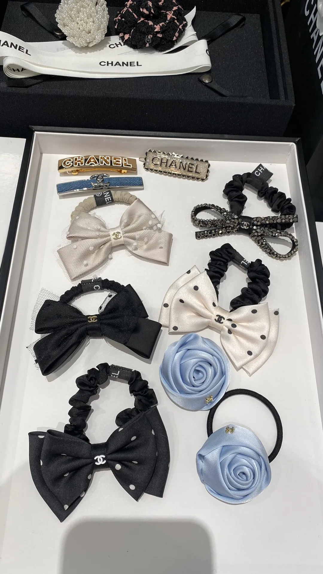 Атласная кружевная резинка с бантом от Chanel — это изысканный аксессуар, который идеально подходит для завершения элегантного образа. Она часто состоит из мягкого атласного материала, украшенного кружевными деталями, и может использоваться для управления волосами, а также в качестве декоративного элемента. Такой аксессуар добавляет нотку роскоши и стиля, делая любой наряд более утончённым.