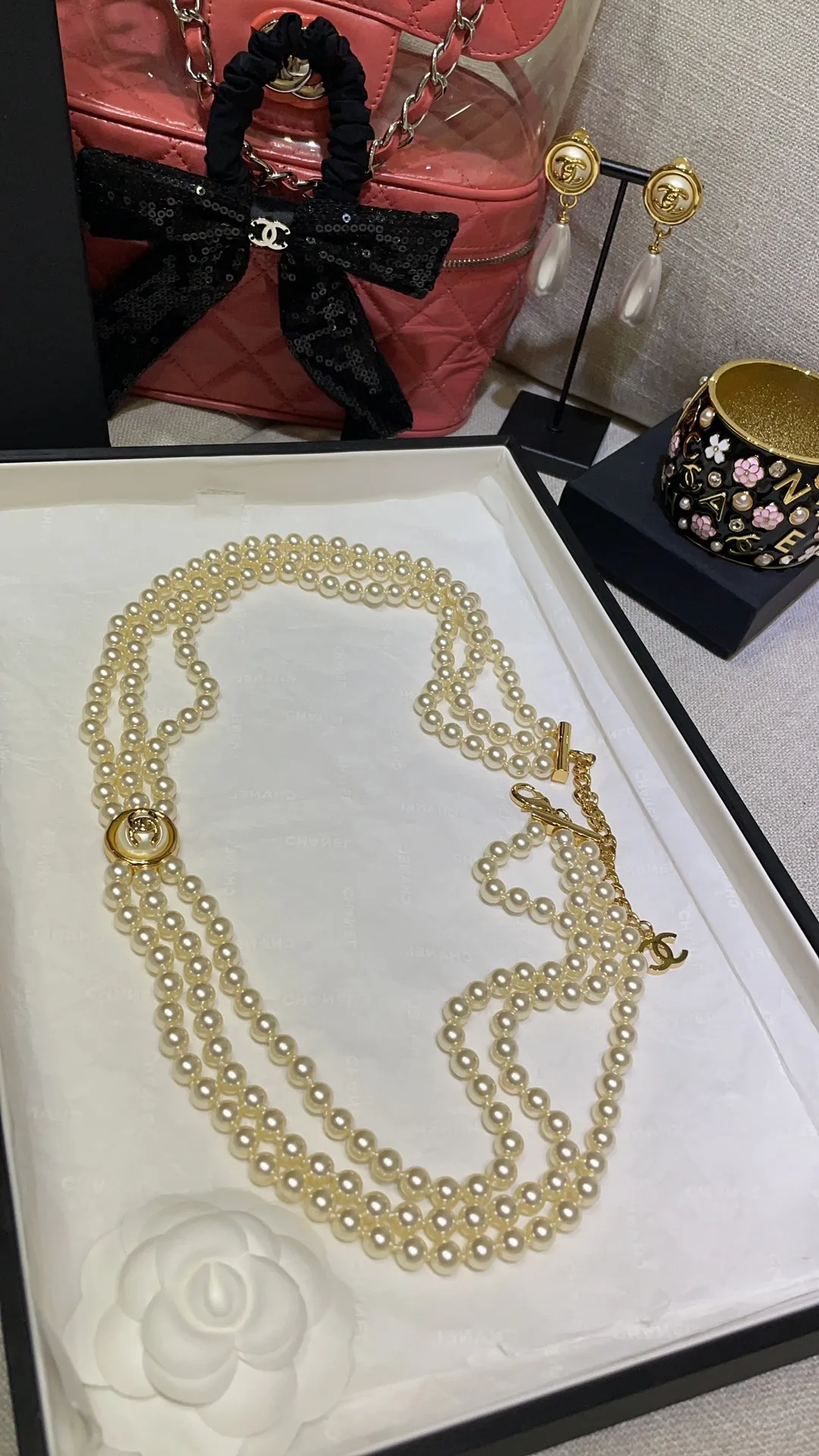 Поясная цепочка ремень Chanel 24А в новом стиле идеально впишется в любой образ. Ее трехслойная конструкция и изысканный дизайн с золотой пуговицей и двойной жемчужиной C придают аксессуару особый шарм. Круглая пуговица неправильной формы, в сочетании с классической пуговицей для школьной сумки и двойной буквой C, отражает элегантность и стиль, которые так характерны для продукции Chanel.