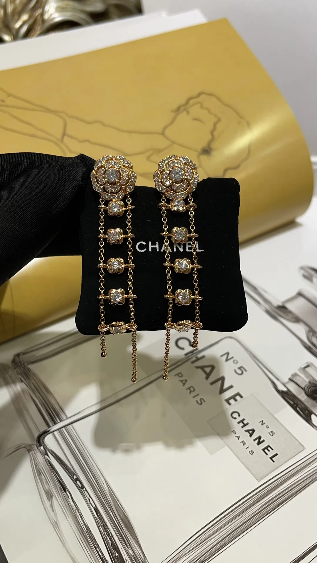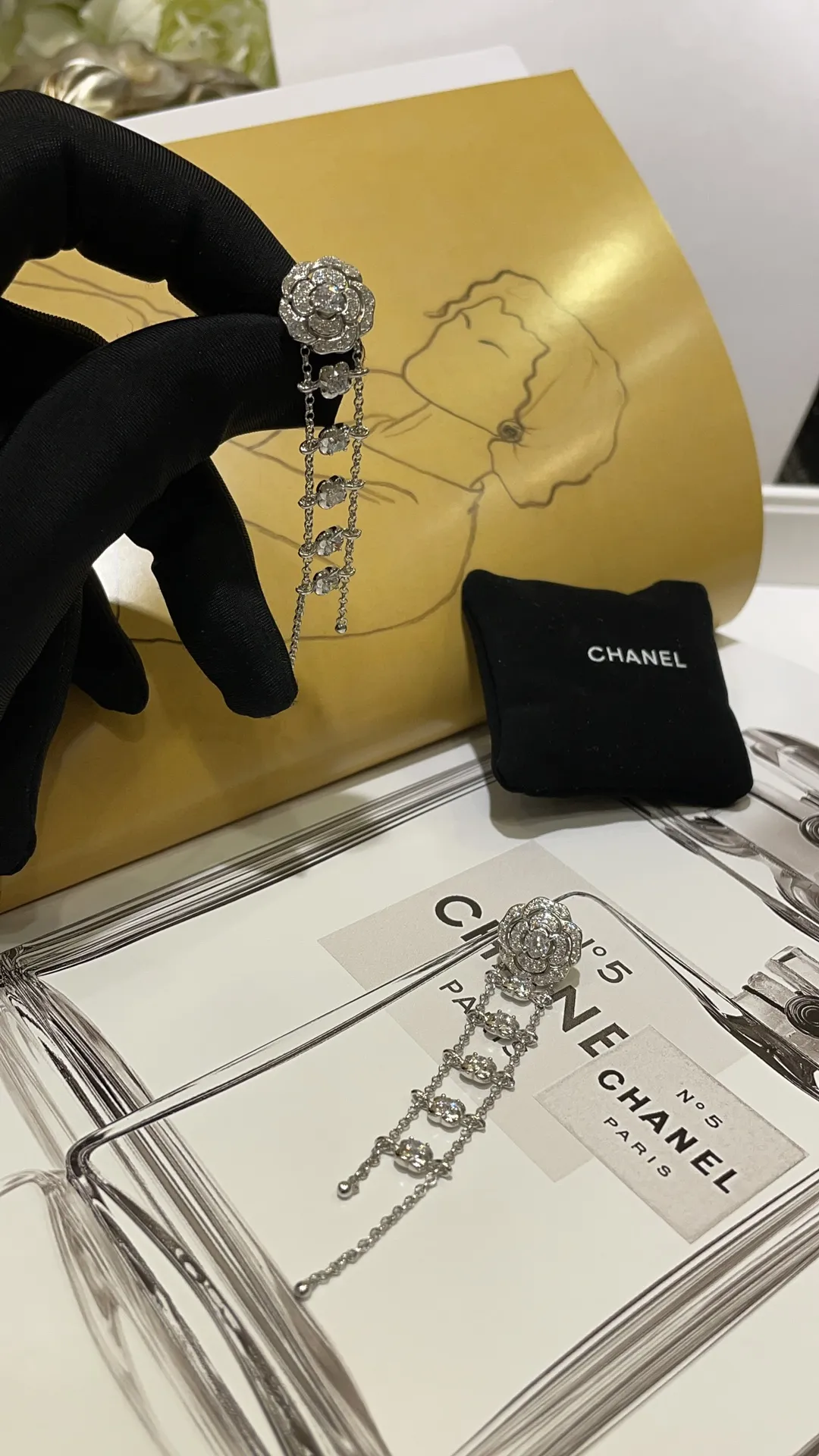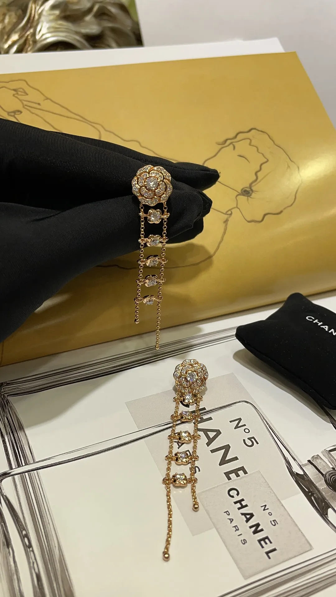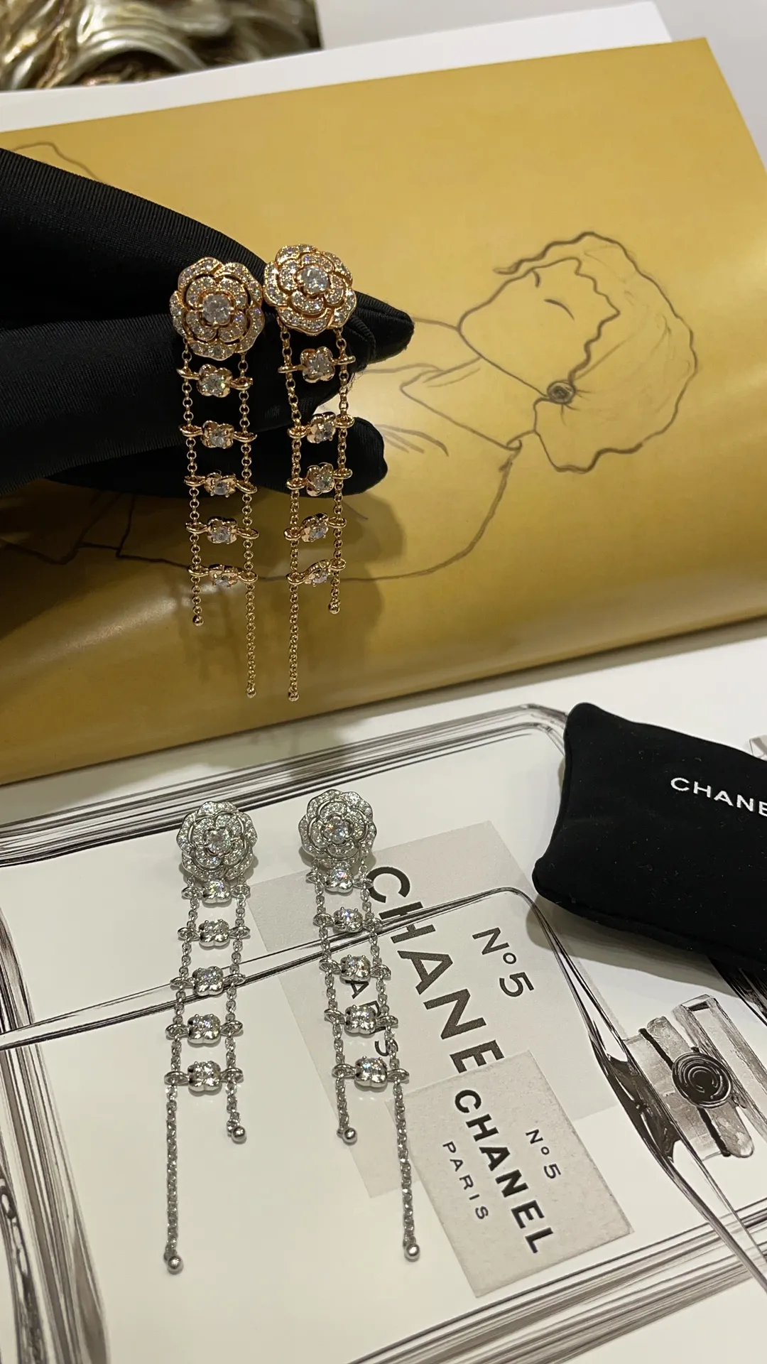 Серьги камелии Chanel с кристаллами Swarovski из серебра 925 и позолоты — аксессуар, который сочетает в себе элегантность и современный дизайн.