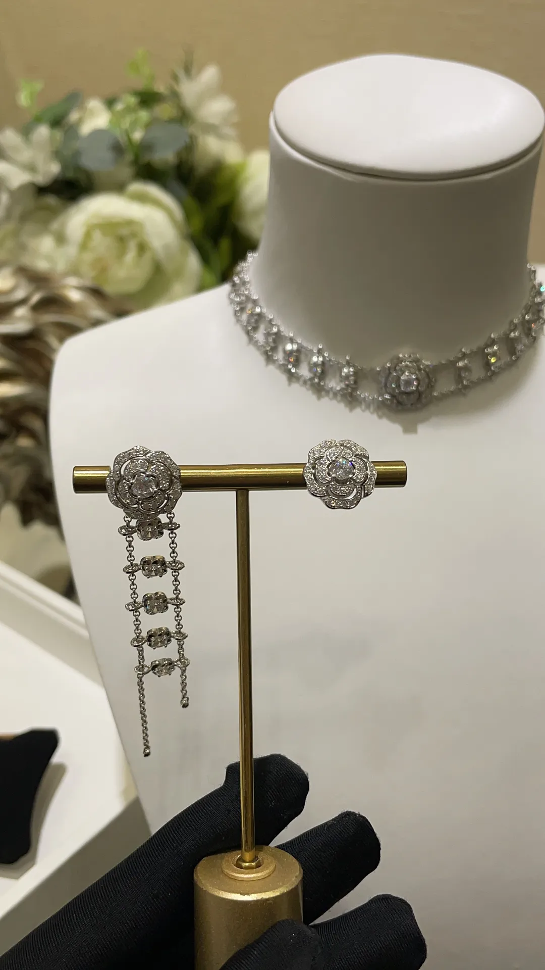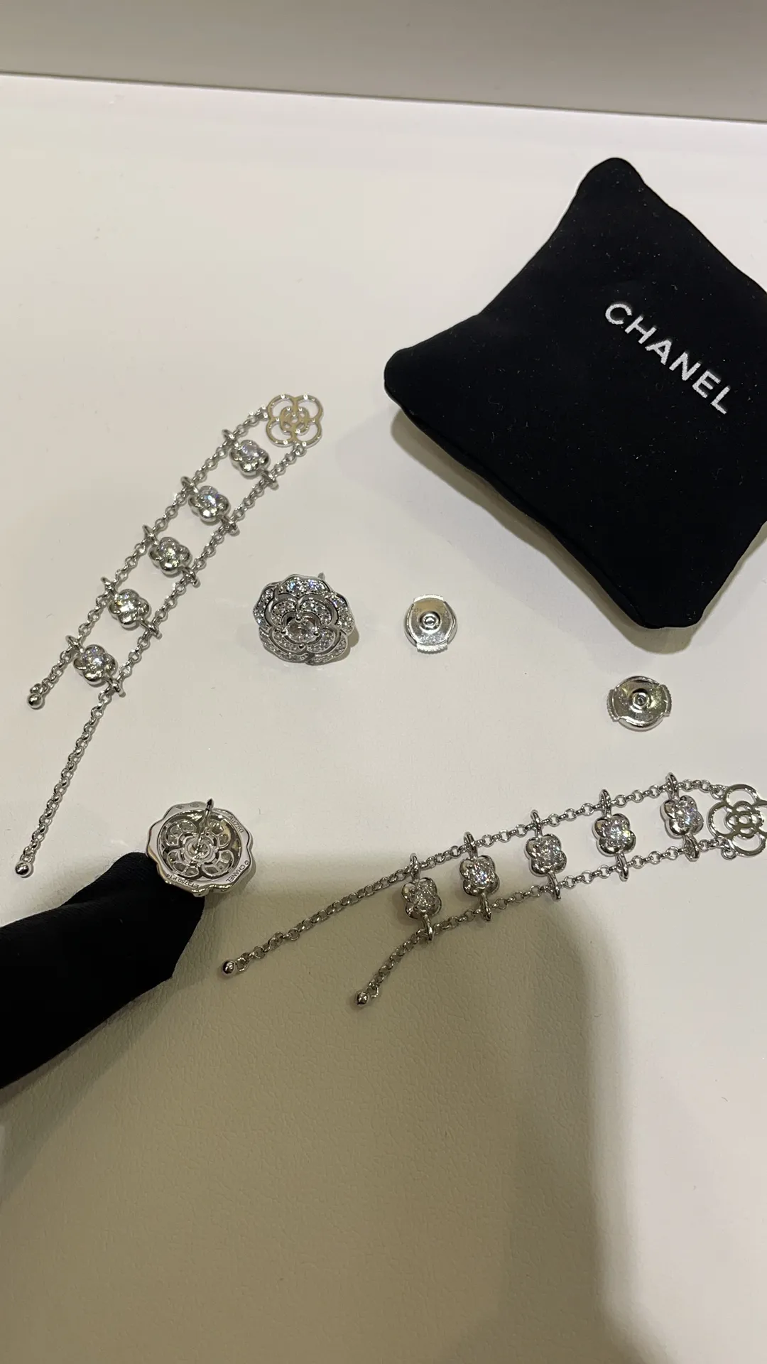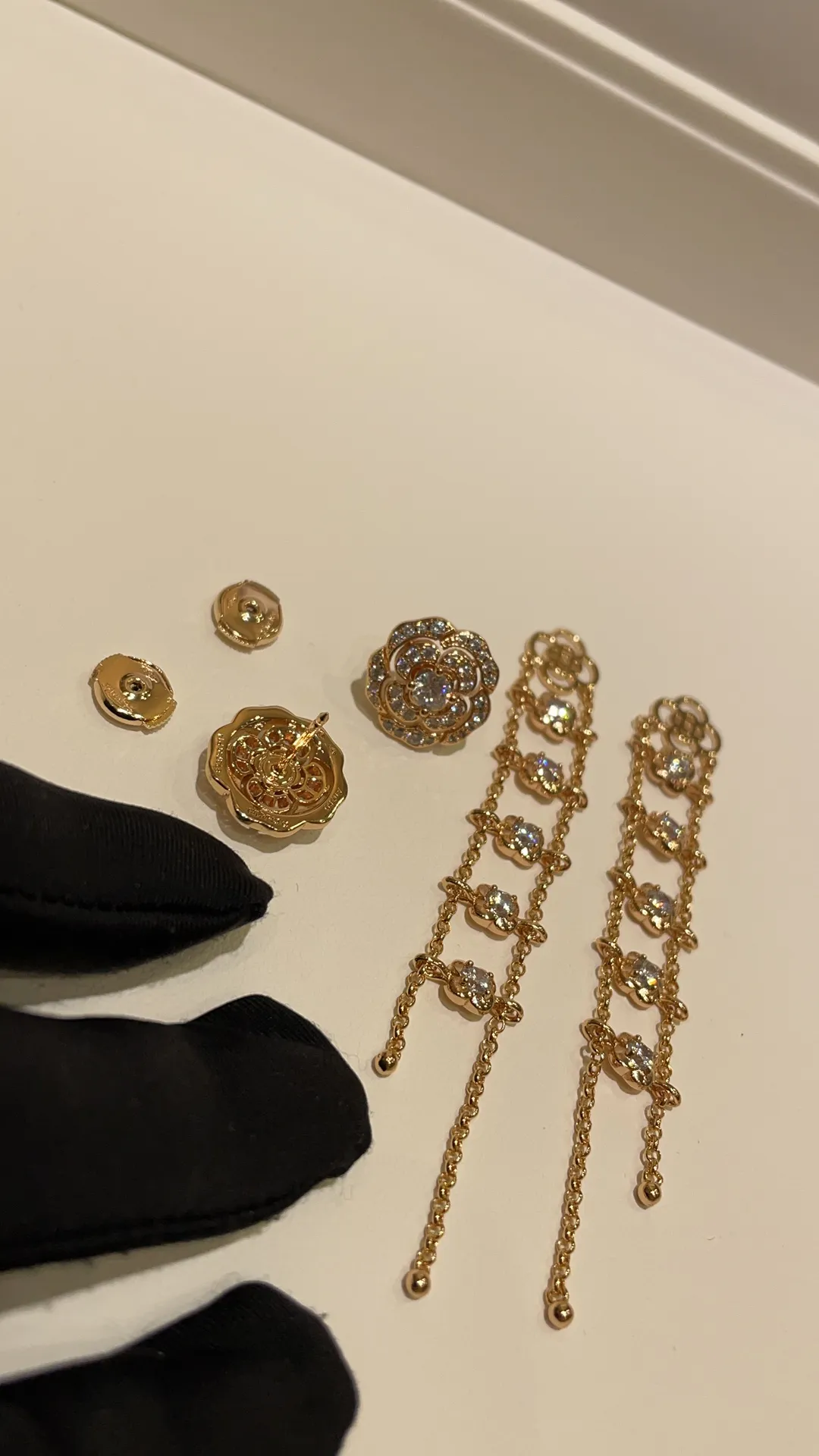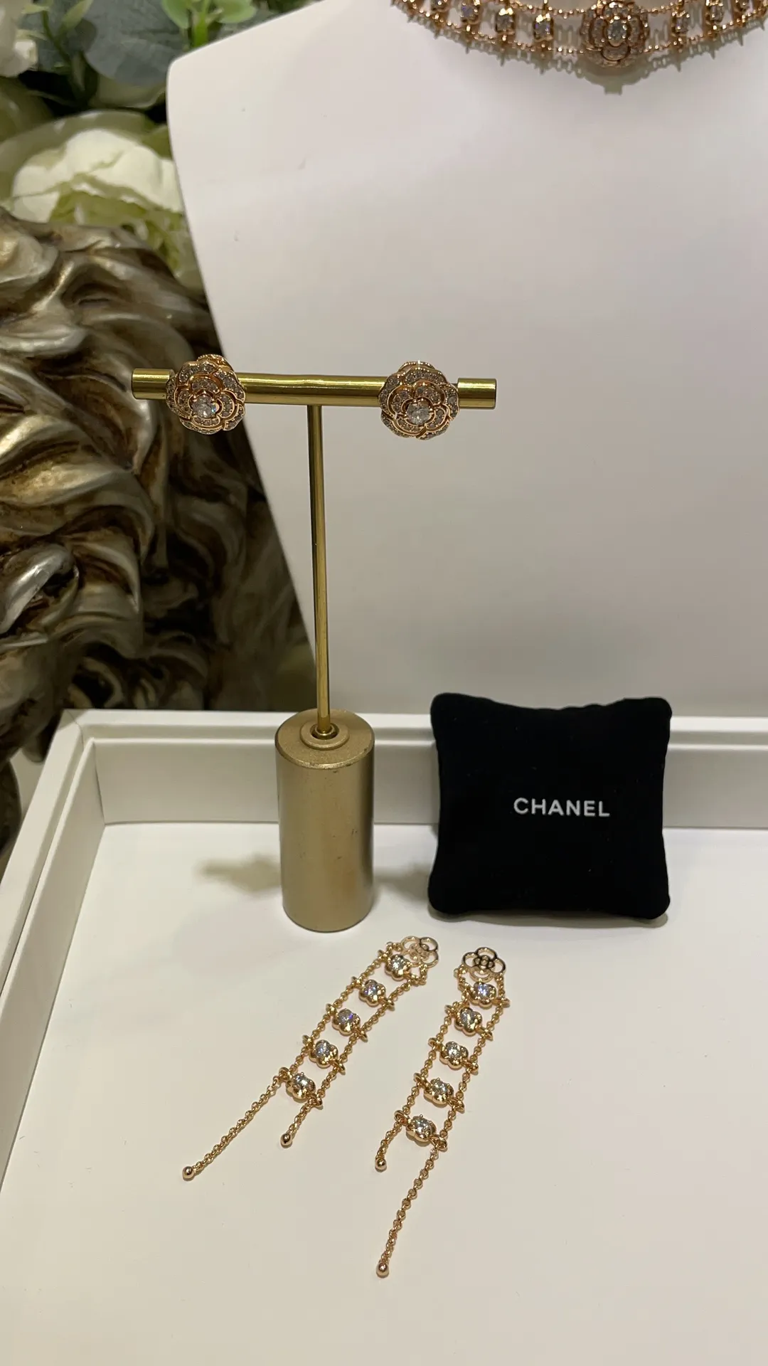Серьги камелии Chanel с кристаллами Swarovski из серебра 925 и позолоты — аксессуар, который сочетает в себе элегантность и современный дизайн.