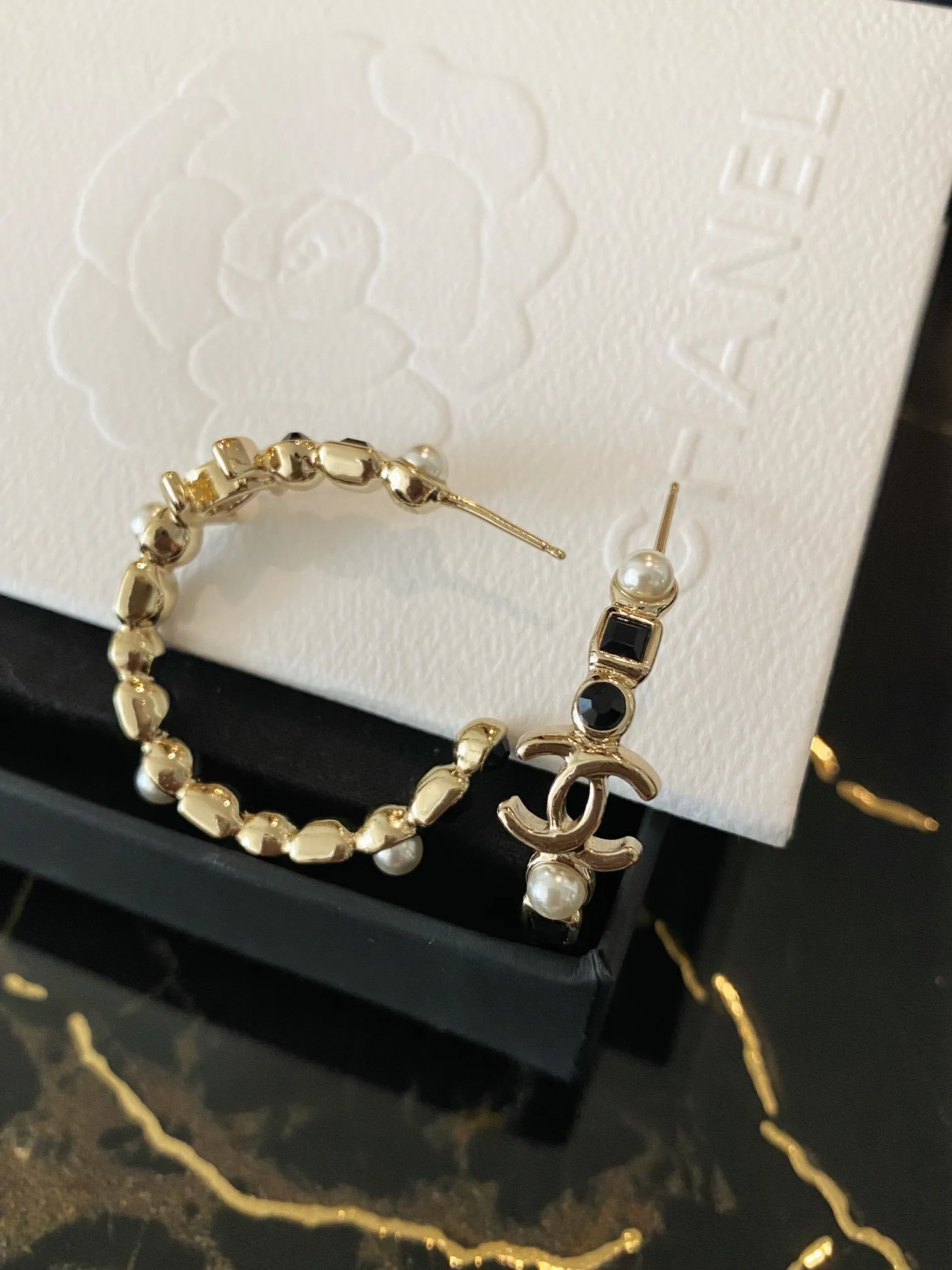 Серьги в форме колец от Chanel с черным бриллиантом и жемчугом — это прекрасный пример сочетания элегантности и роскоши. Chanel славится своим утонченным дизайном и высококачественными материалами, и такие серьги становятся отличным дополнением к любому образу.
