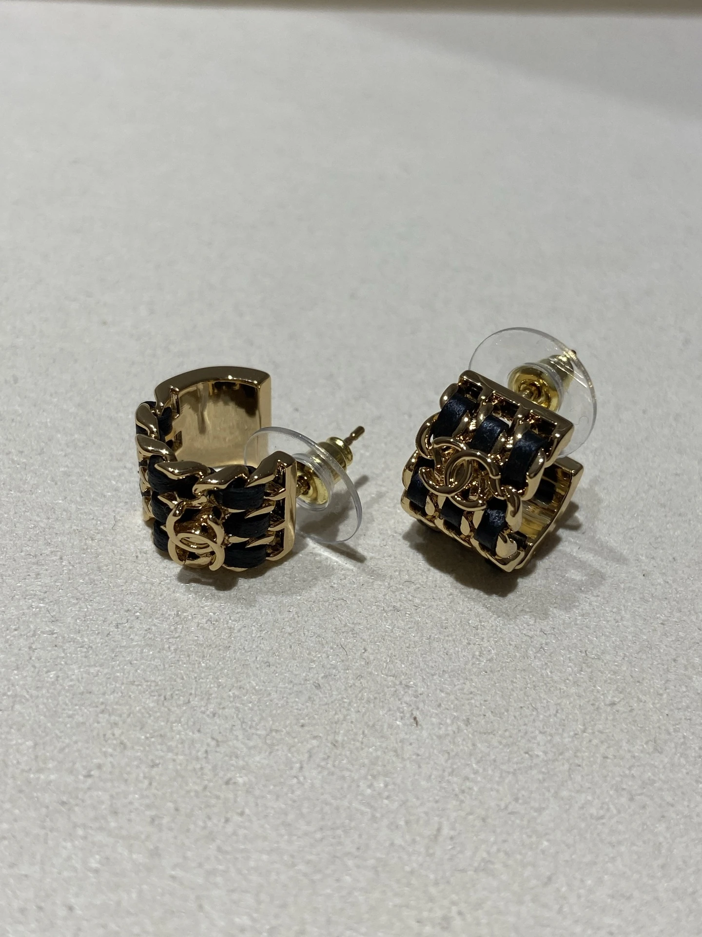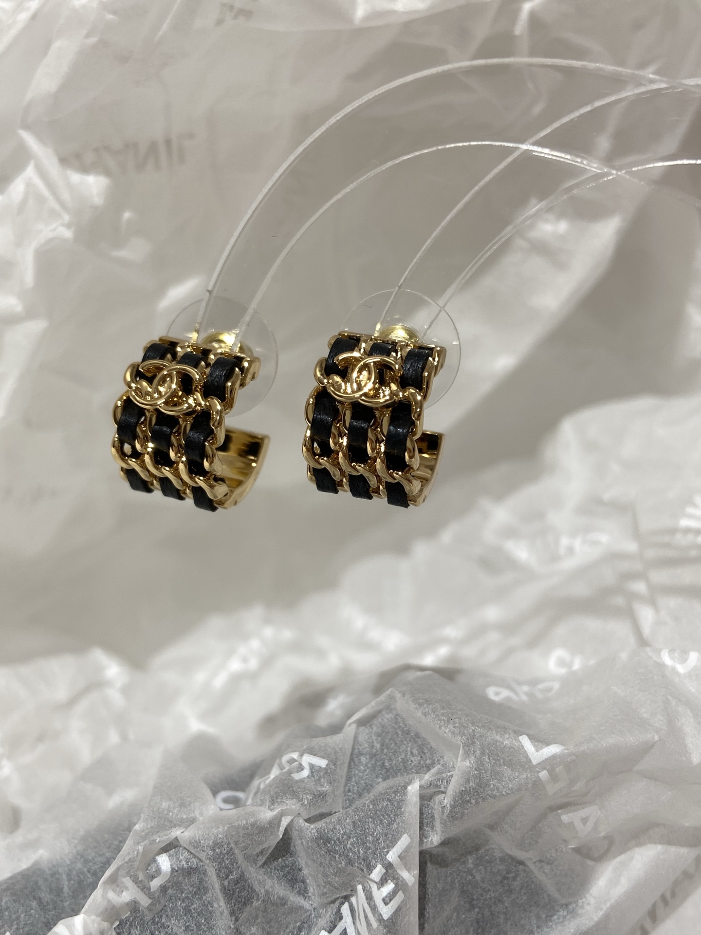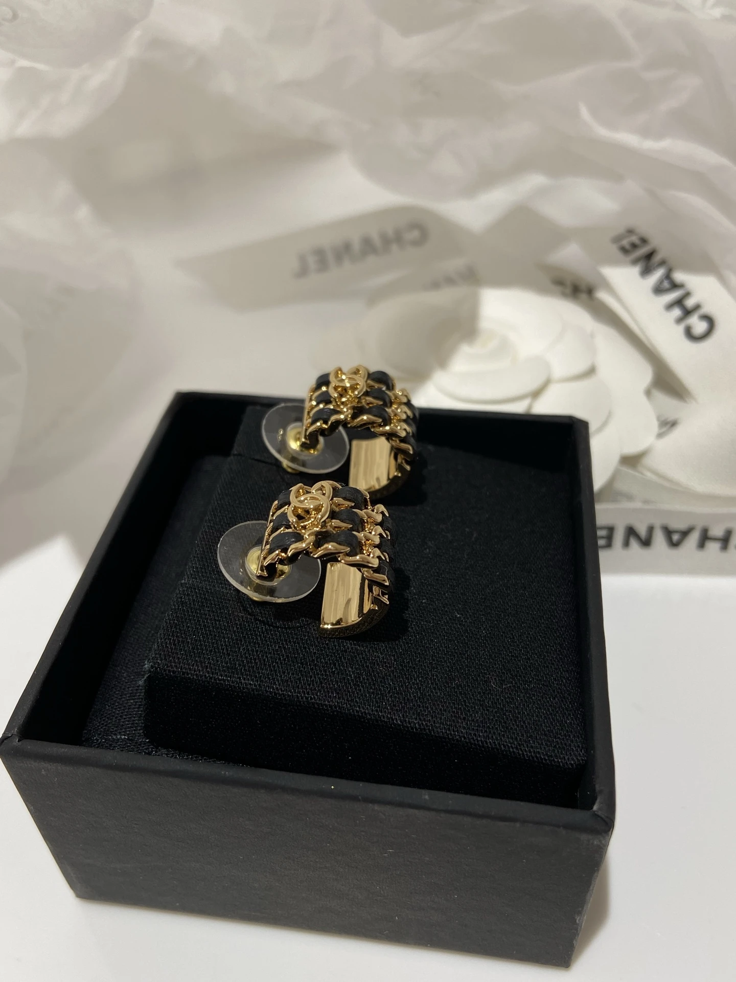 Эти серьги‑кольца сочетают в себе классическую элегантность и характерный для Дома Chanel стиль. Изделие выполнено из металла с акцентами мягкой кожи — материал, который часто используется в культовых аксессуарах Chanel, добавляя текстурный контраст и роскошную чувственность.
