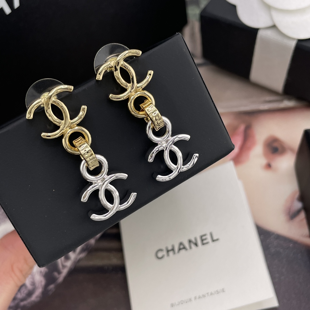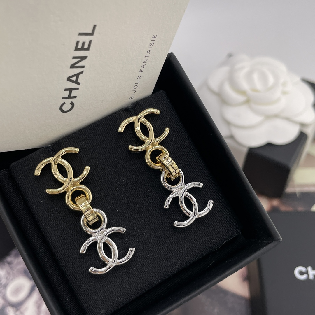 Элегантные серьги-подвески Chanel — утончённый аксессуар с современным характером. Лаконичный дизайн мягко подчёркивает черты лица и добавляет образу изысканный акцент. Серьги выполнены с изящным сочетанием золотистого и серебристого оттенков, они создают мечтательный контраст, который добавляет сияние каждому движению.