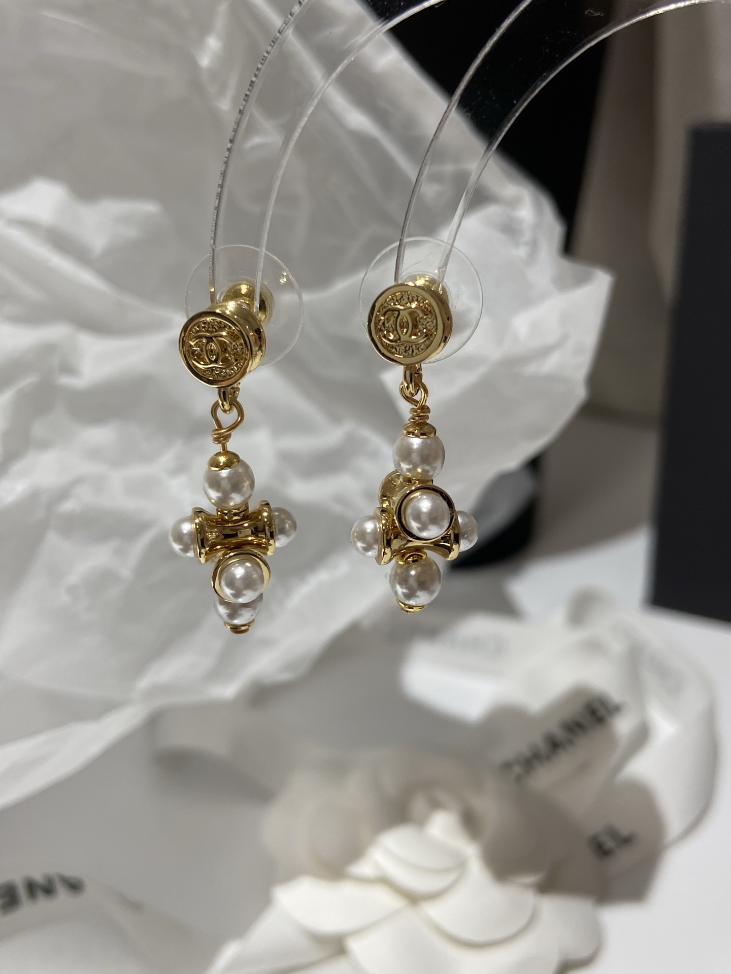 Эта пара гармонично дополняет как повседневные, так и более торжественные образы, отражая утончённый характер стиль Дома Chanel.