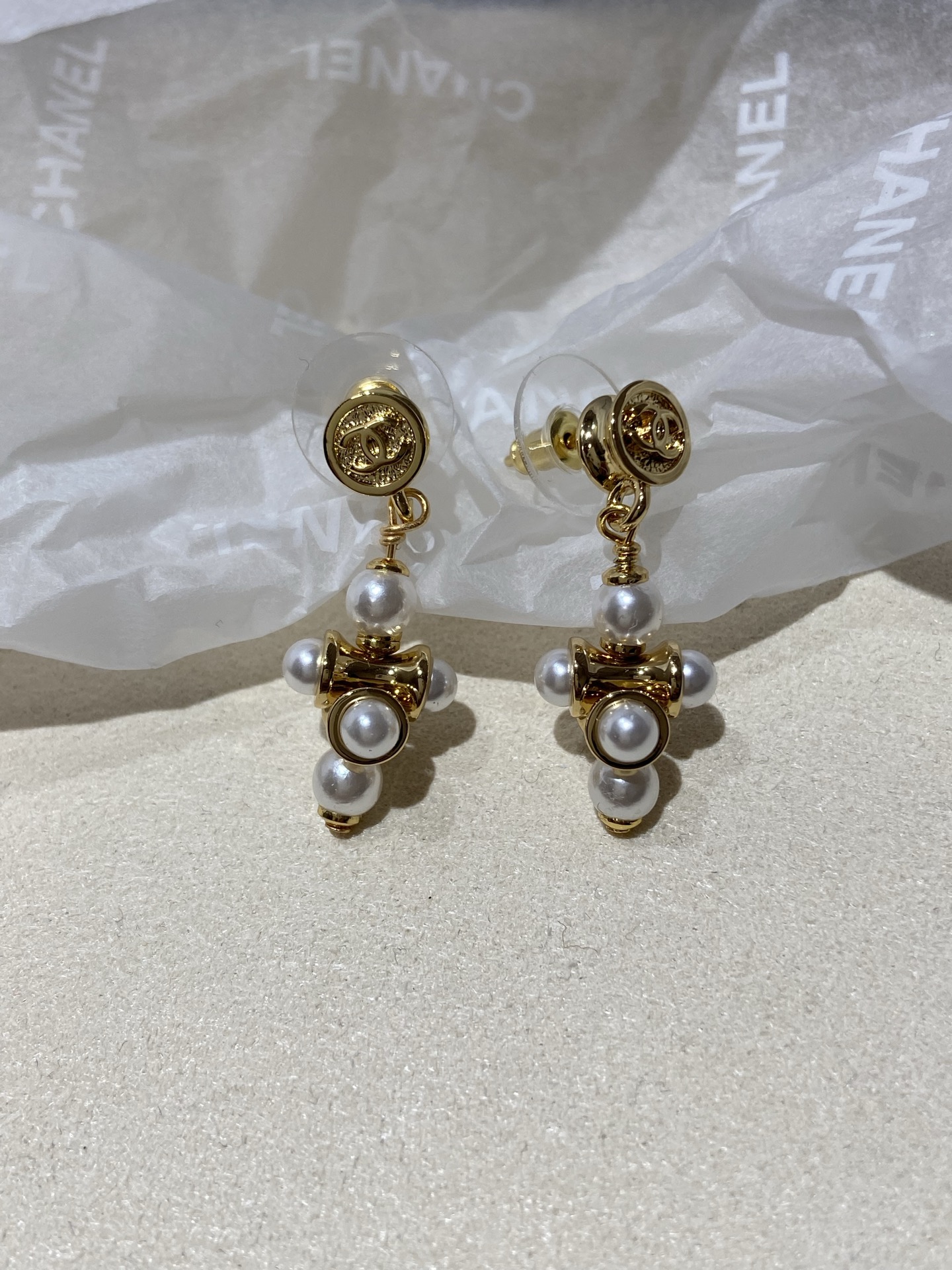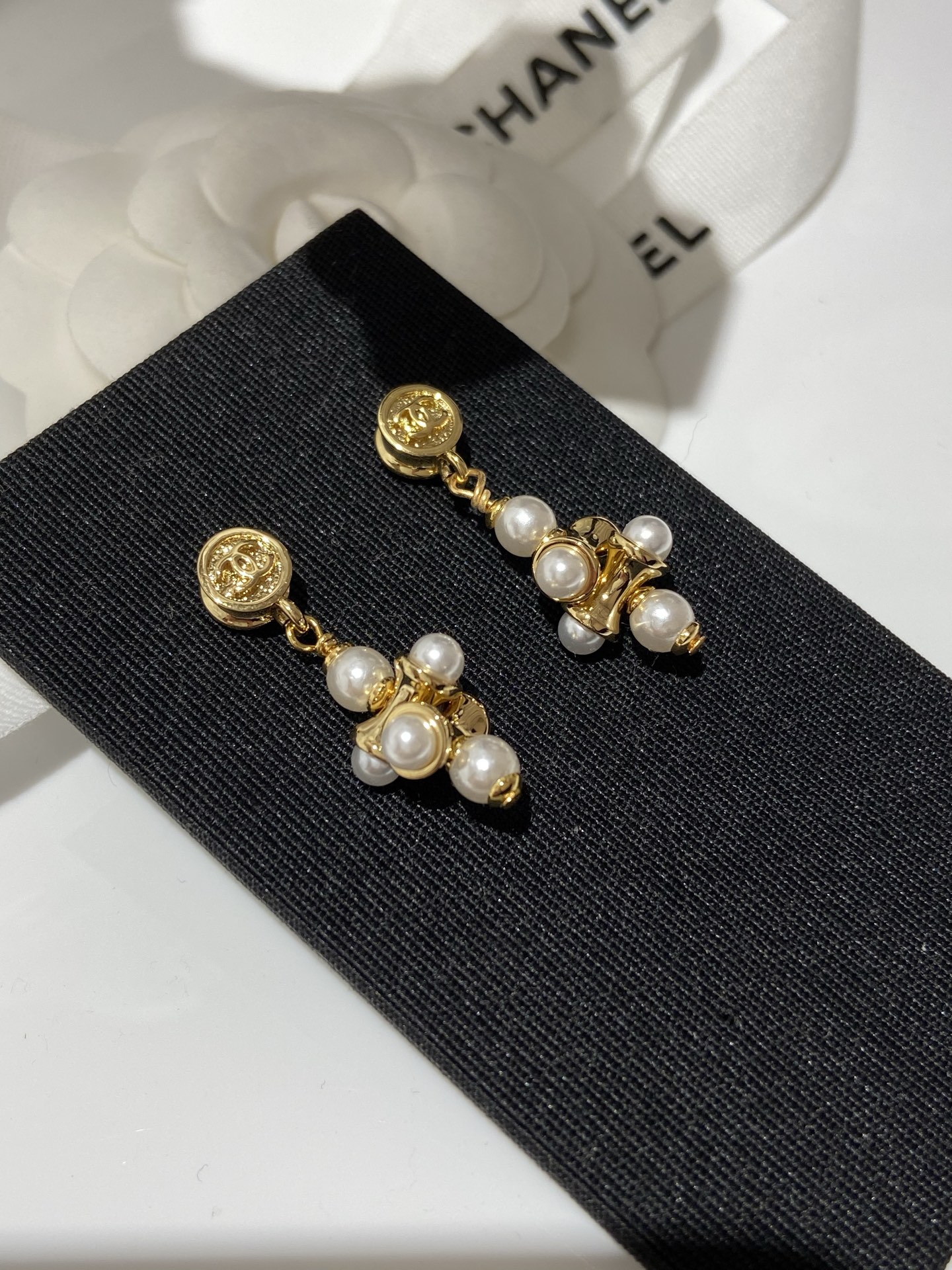 CHANEL Женские серьги-подвески с стеклянным жемчугом
