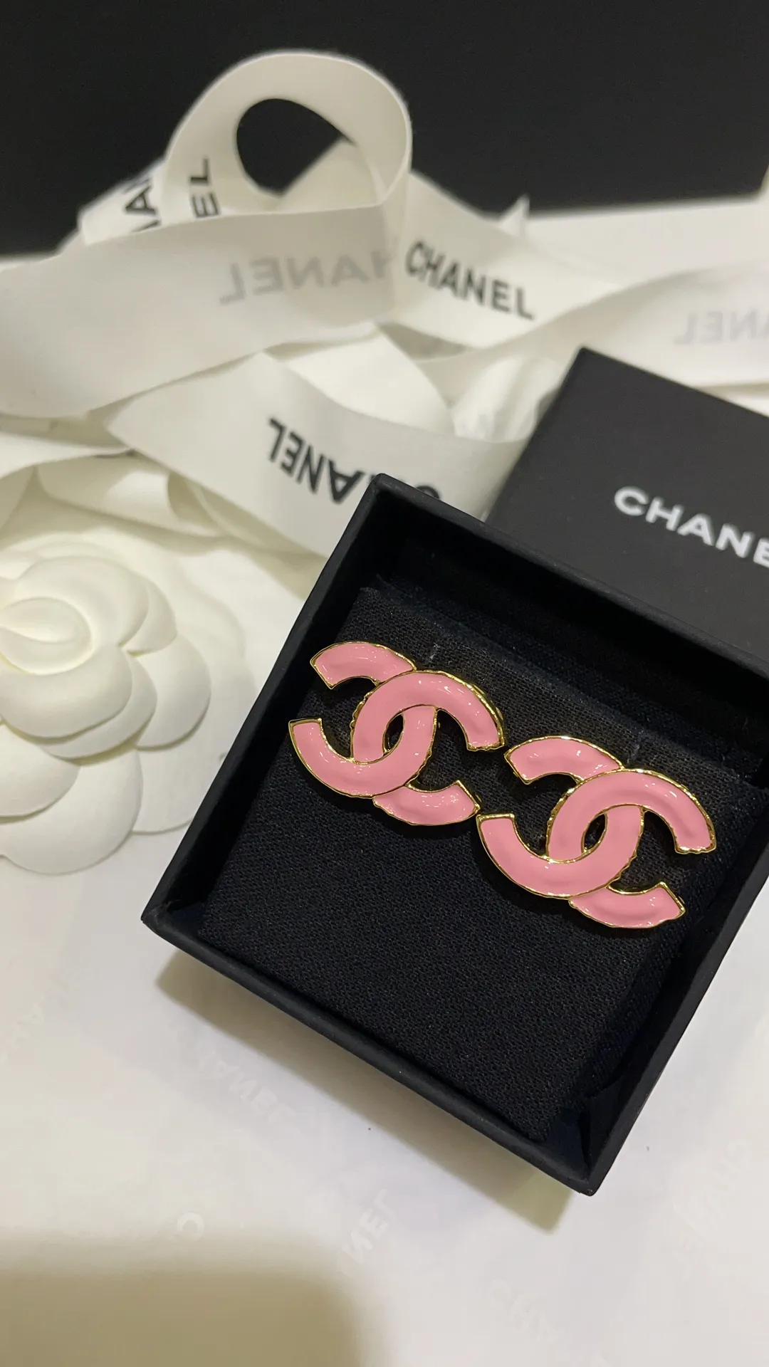 CHANEL Женские серьги с розовой эмалью