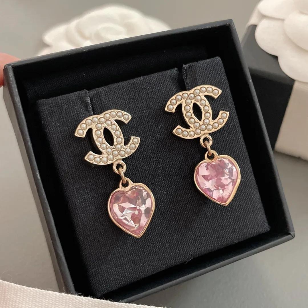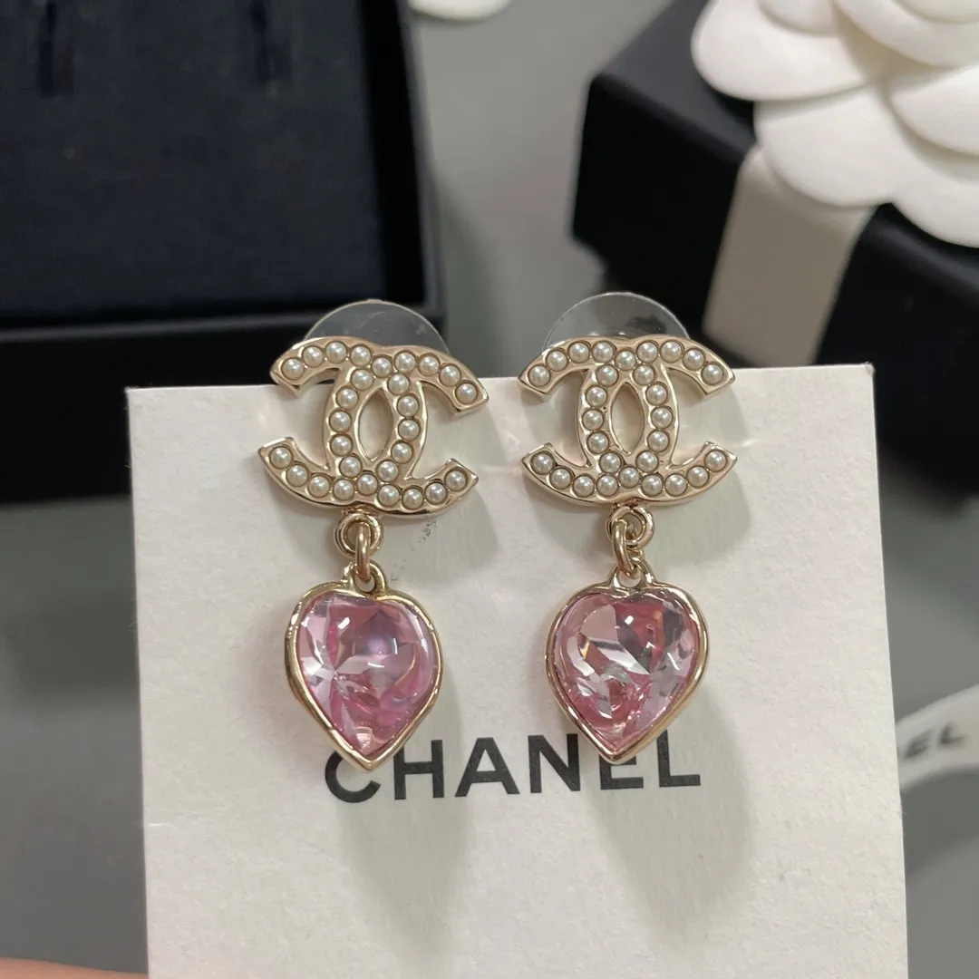 CHANEL Женские серьги с розовым камнем Love