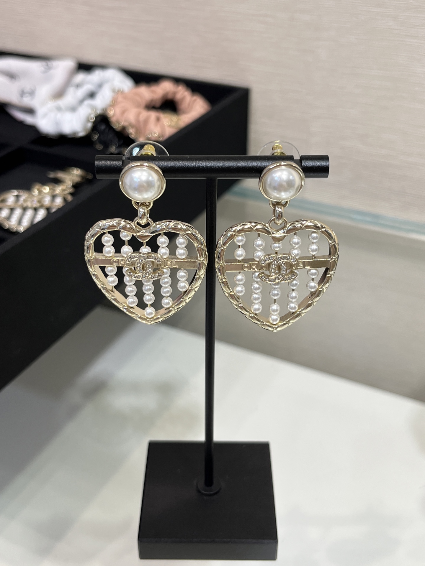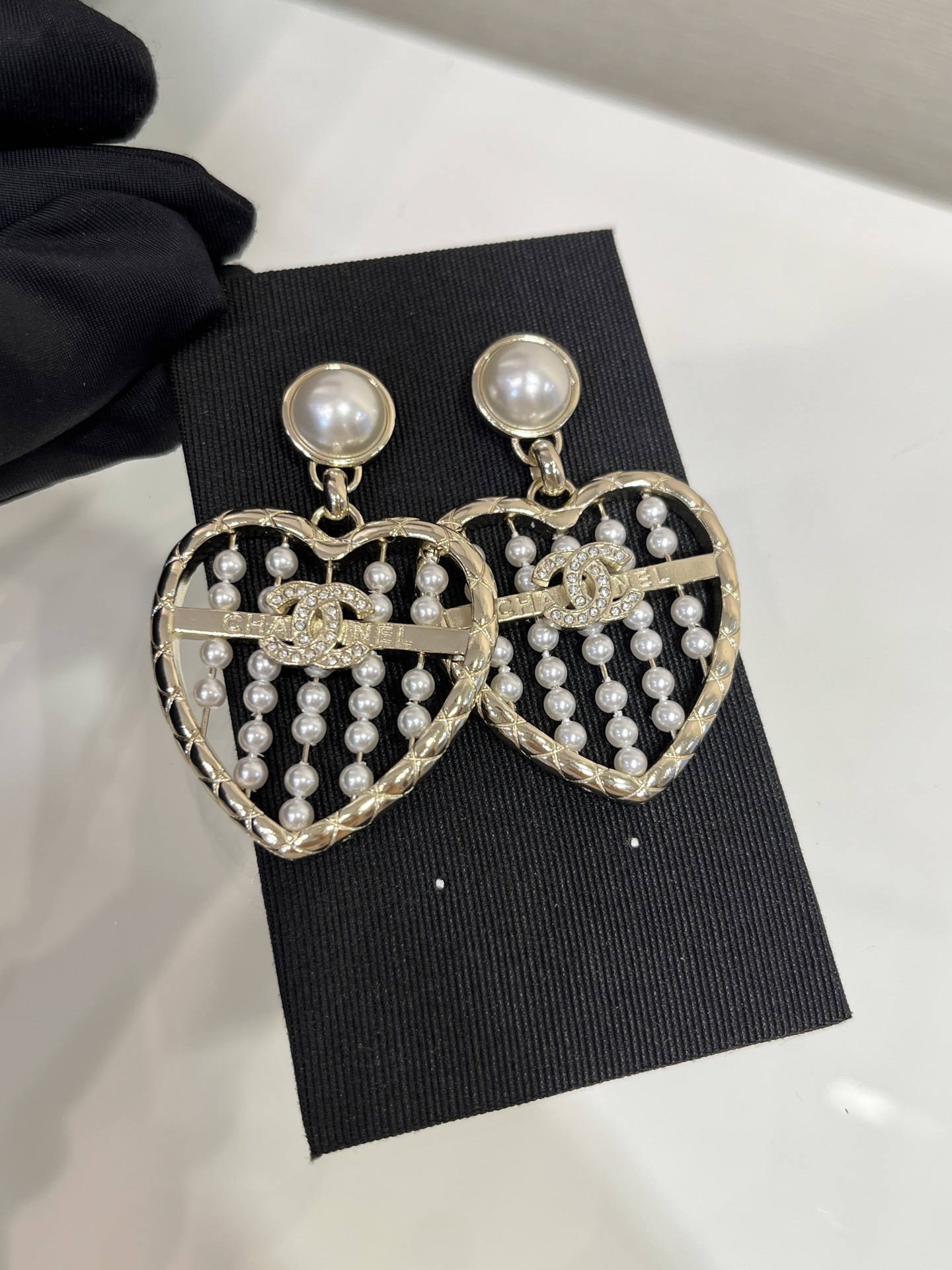 Серьги-абаки Chanel сочетают в себе уникальный дизайн с характерными элементами бренда, такими как буква C и жемчуг. Ромбовидный узор и полое сердце добавляют интересный визуальный акцент, а использование кристаллов придает им роскошный вид.