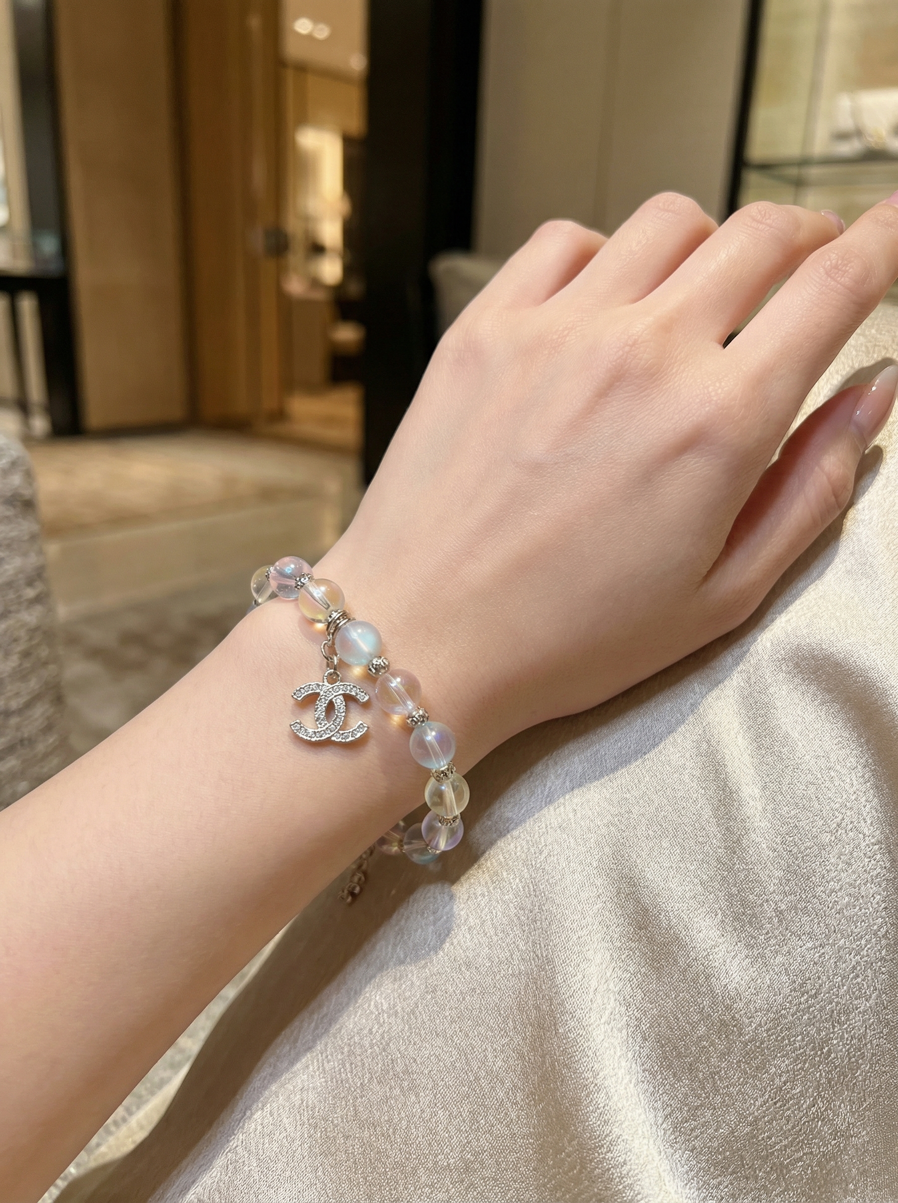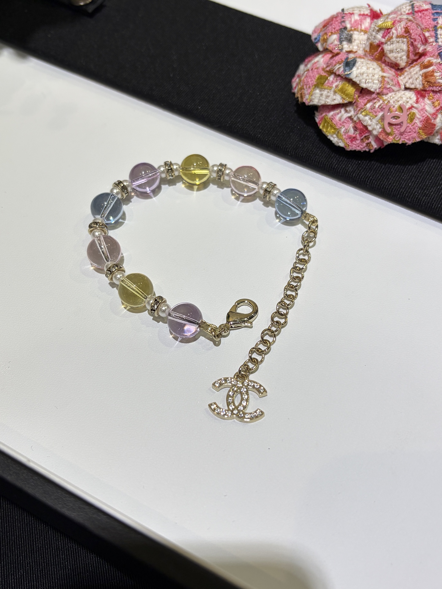 CHANEL Женский браслет с стеклянным жемчугом и кристаллами