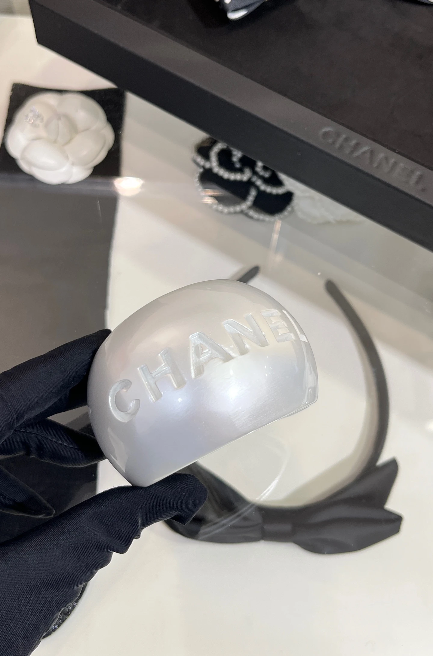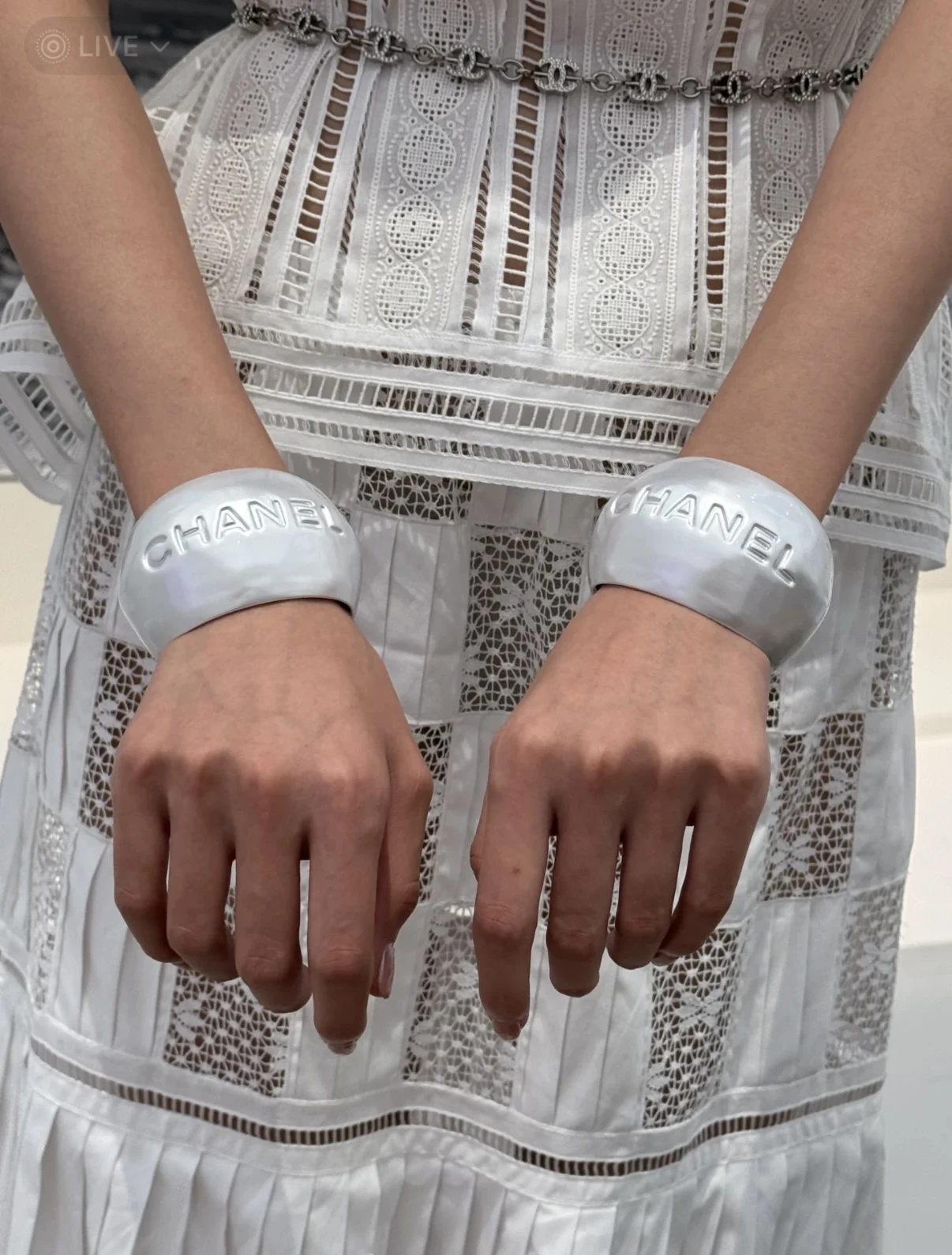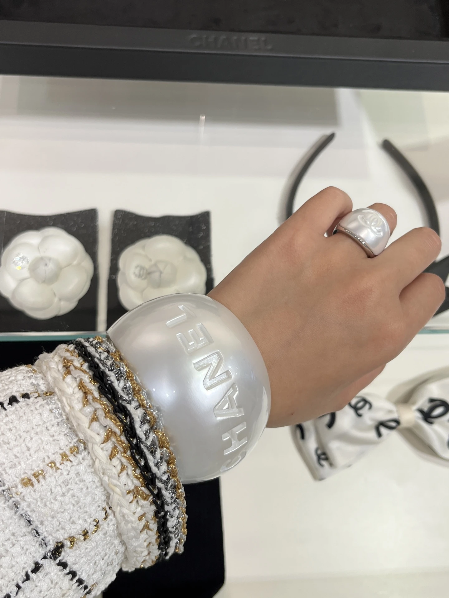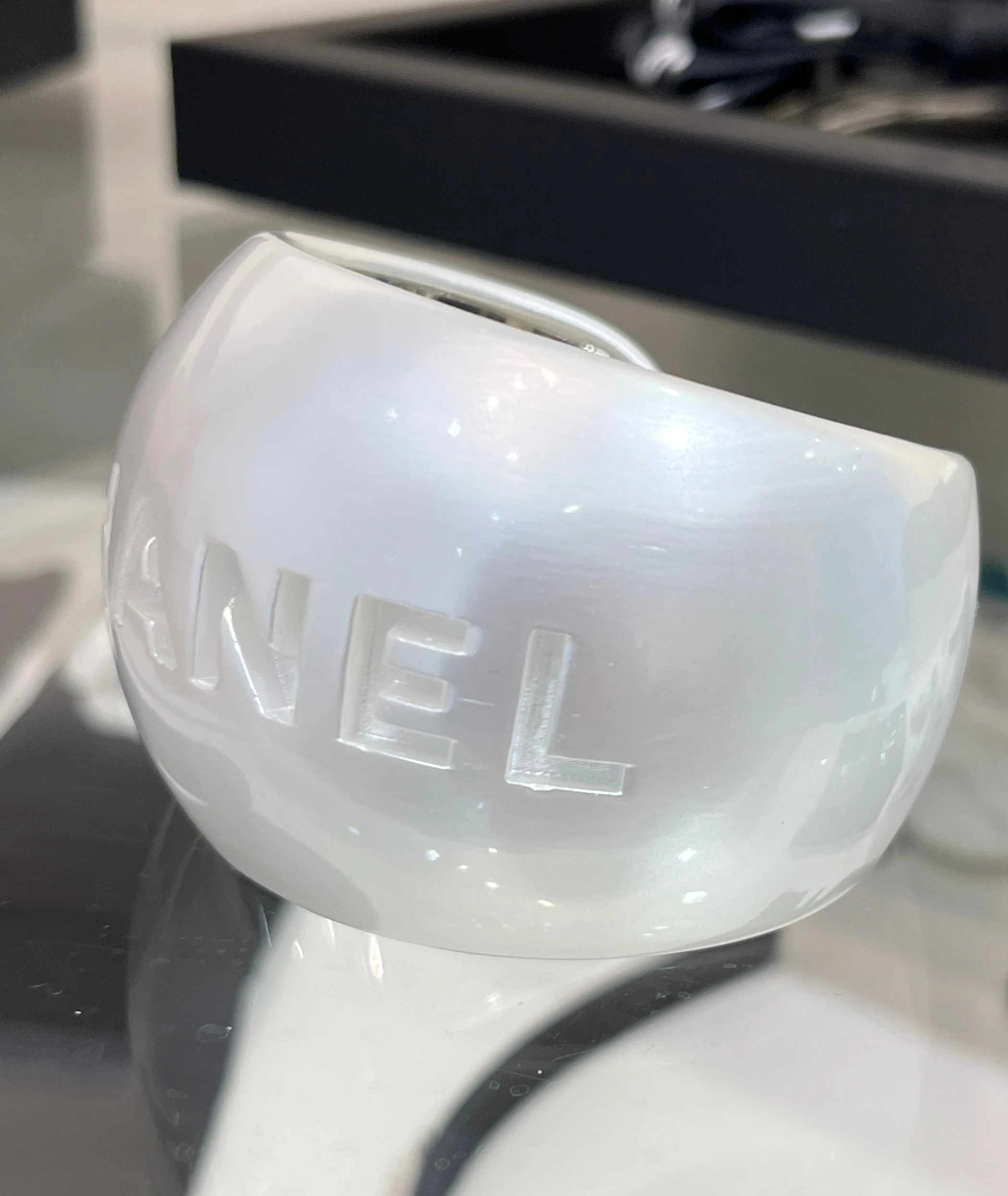 CHANEL Женский широкий браслет из жемчужно-белого акрила 25C