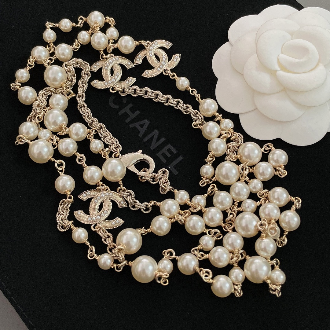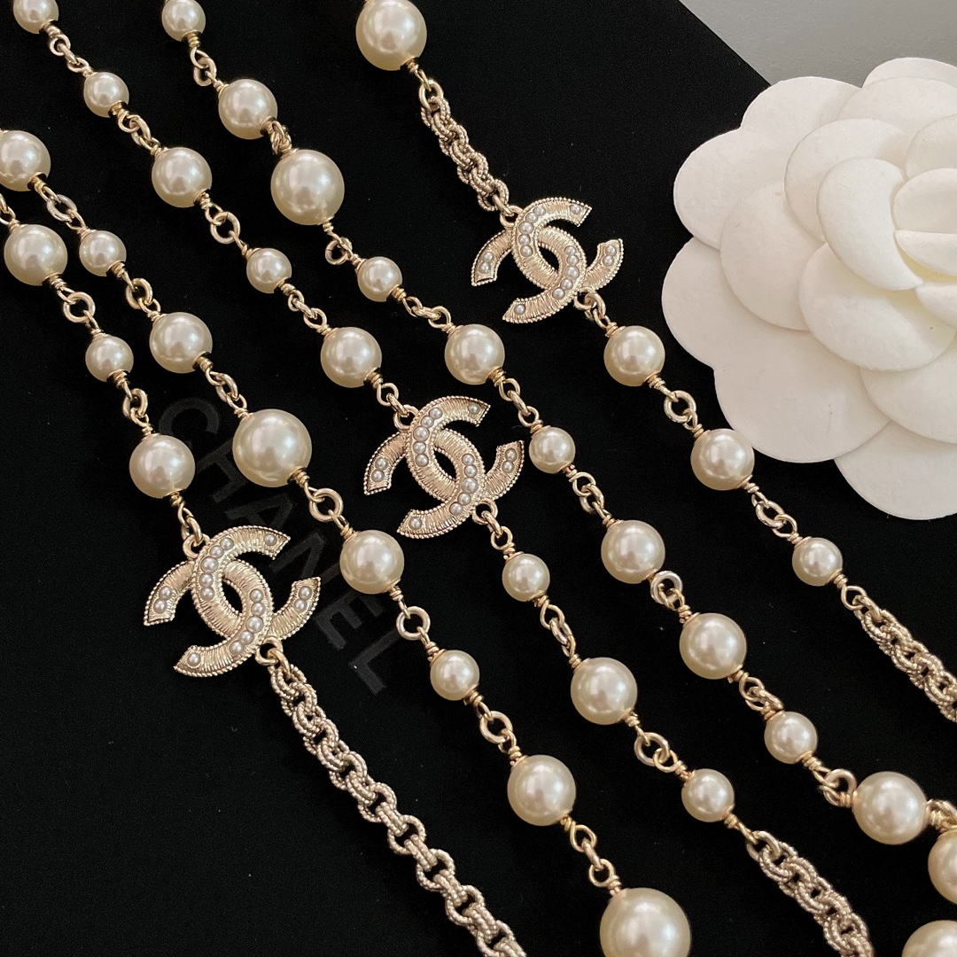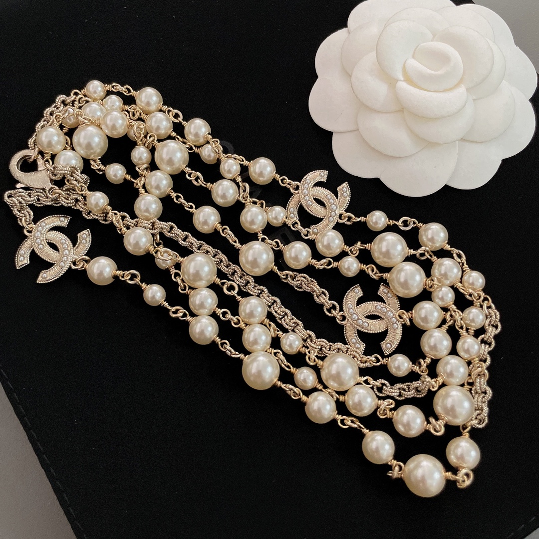 Длинное многослойное колье от Chanel, украшенное жемчугом Swarovski, — это великолепный аксессуар, который дополнит любой образ. Chanel славится своими изысканными ювелирными изделиями, и такое колье, сочетает в себе элегантность и утонченность. Обычно такие колье создаются с использованием высококачественных материалов, что придаёт им долговечность и роскошный вид.