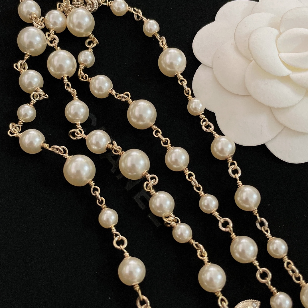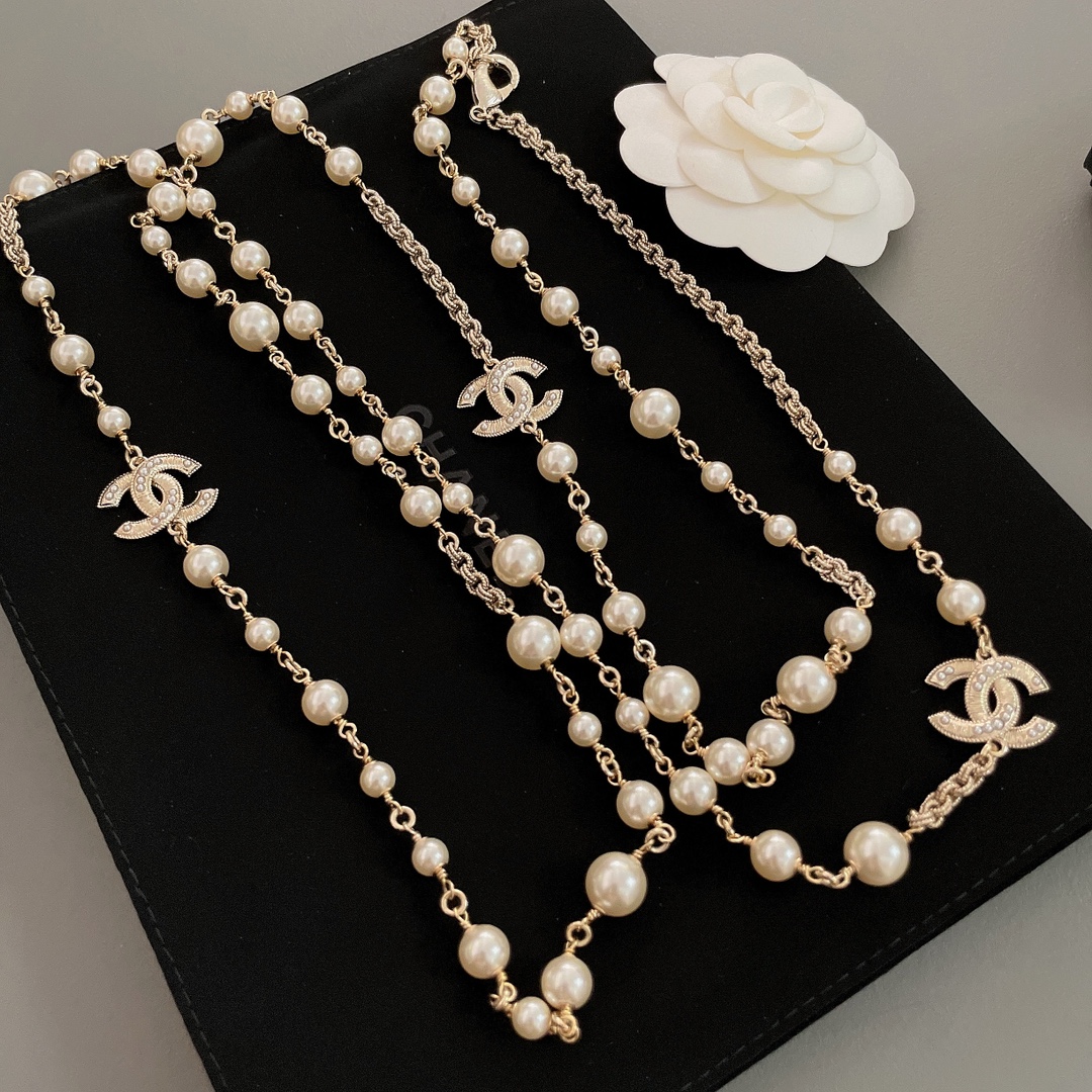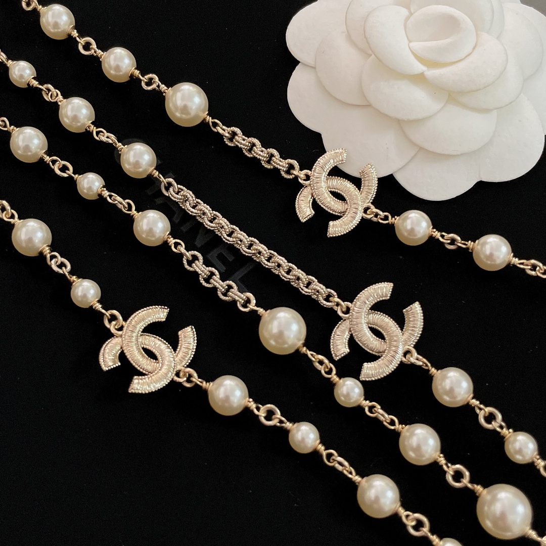 Длинное многослойное колье от Chanel, украшенное жемчугом Swarovski, — это великолепный аксессуар, который дополнит любой образ. Chanel славится своими изысканными ювелирными изделиями, и такое колье, сочетает в себе элегантность и утонченность. Обычно такие колье создаются с использованием высококачественных материалов, что придаёт им долговечность и роскошный вид.