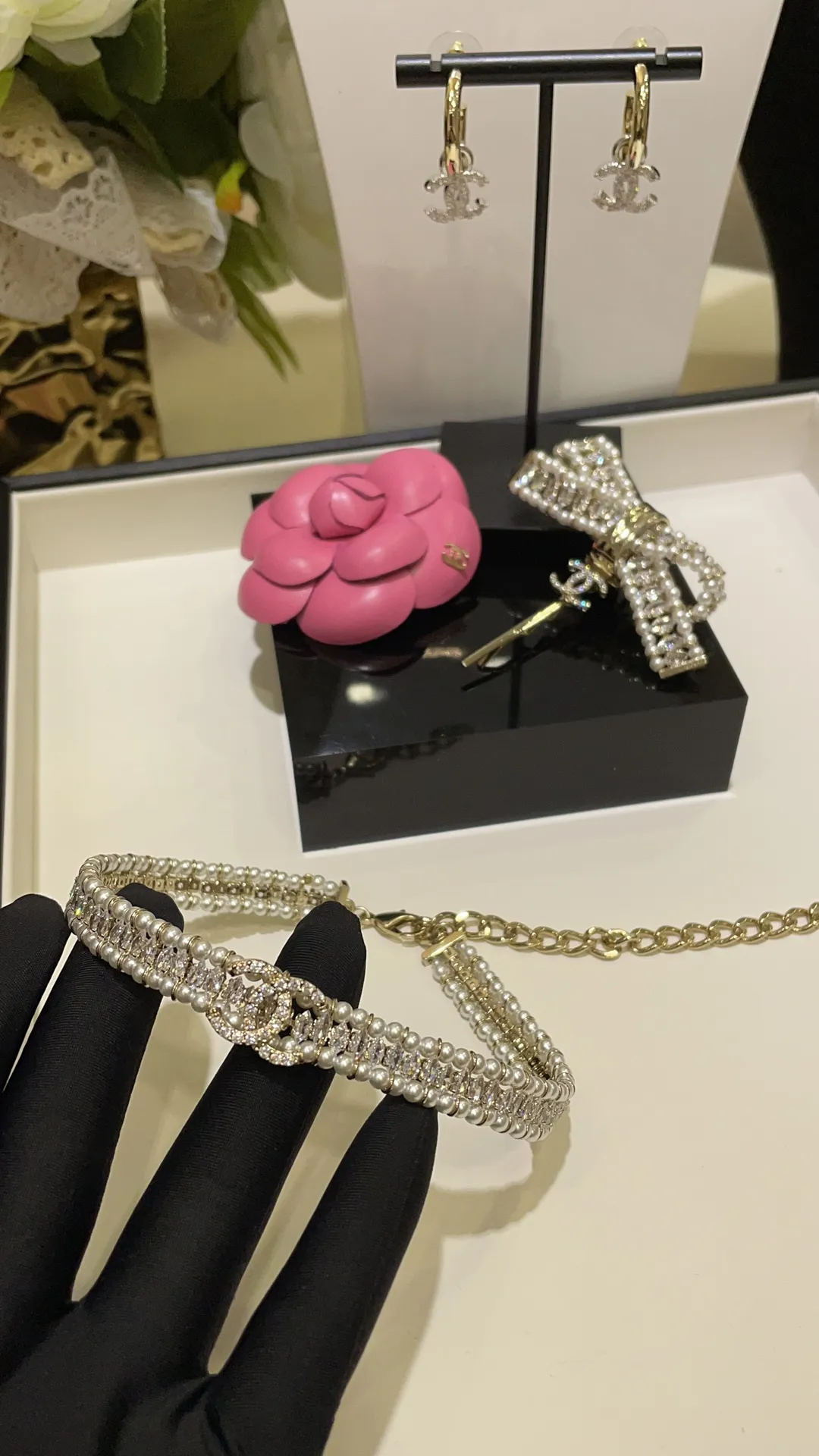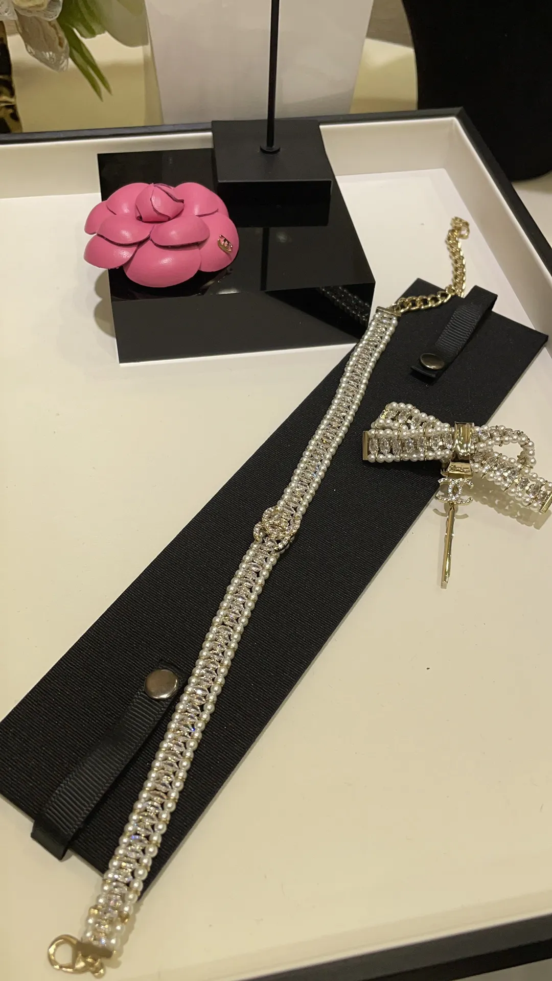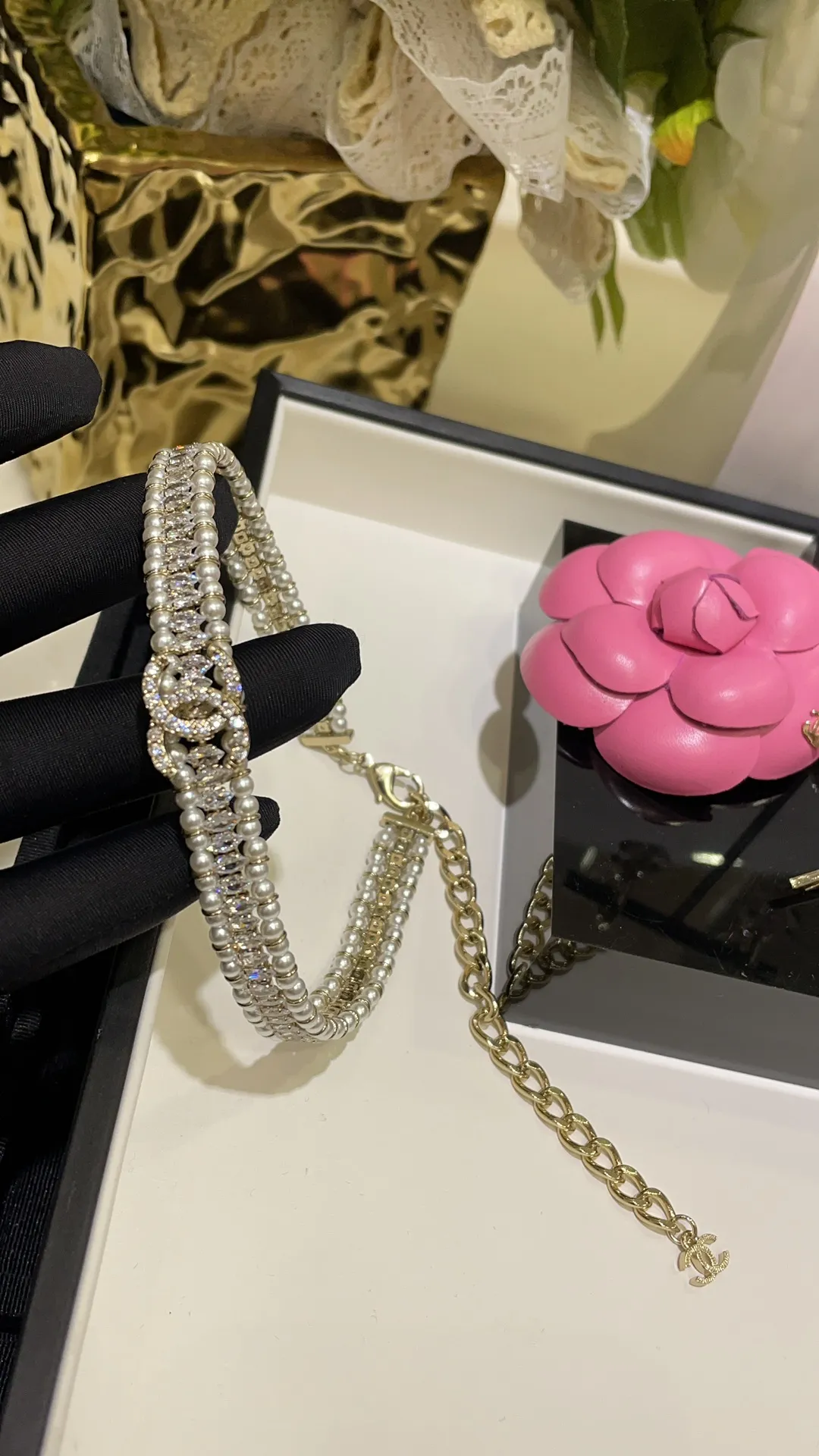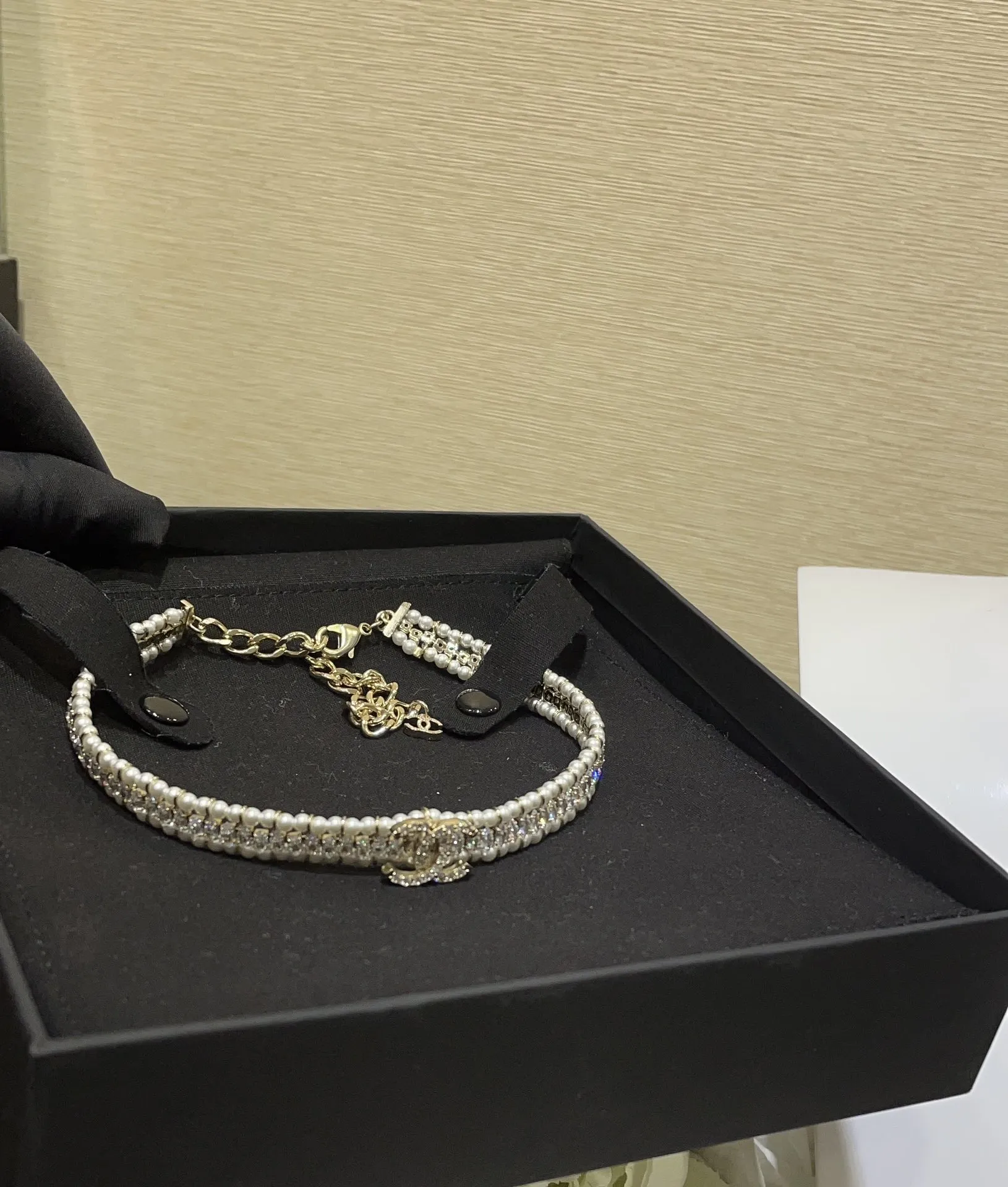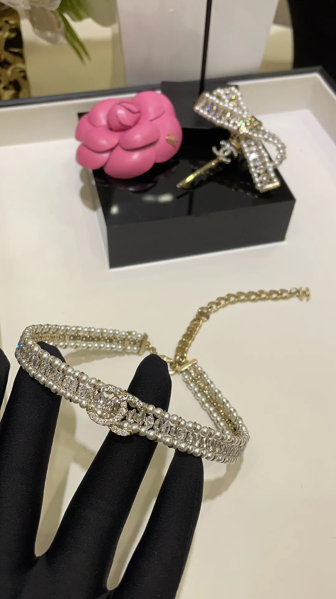 Это колье действительно выглядит очень элегантно и стильно! Белый жемчуг всегда ассоциируется с классикой и утончённостью, а дополнение в виде плетеного бриллианта и двойной буквы C придаёт уникальность и шик.
