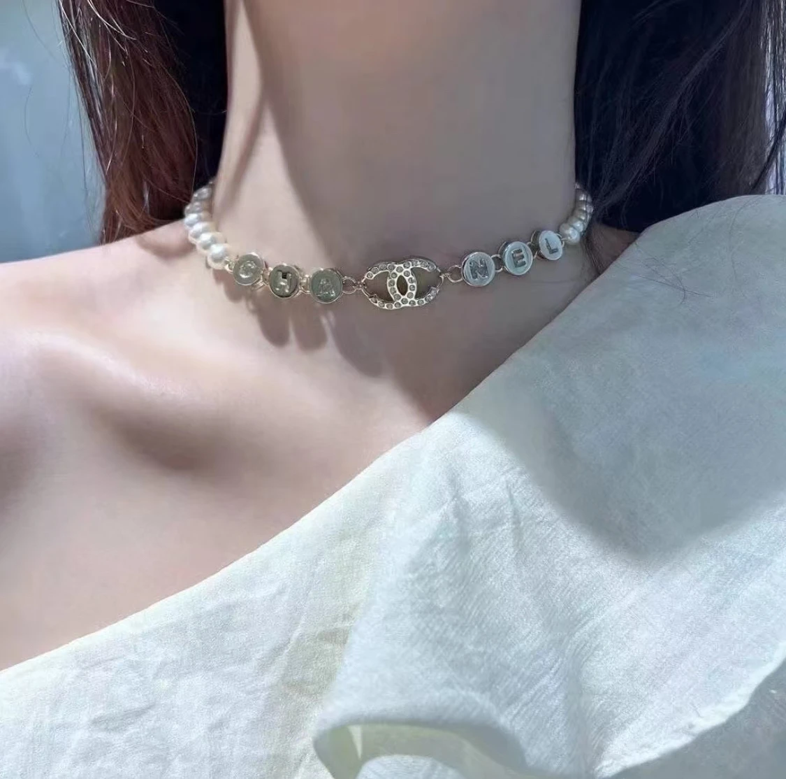 Элегантное колье CHANEL, выполненное из высококачественной латуни и украшенное жемчужными бусинами. Центральной частью украшения является культовый логотип бренда, окружённый отдельными элементами с буквами "CHANEL". Изысканный дизайн подчёркивает утончённость и роскошь, идеально дополняя как повседневный, так и вечерний образ. Колье отличается лёгкостью и комфортом при носке, станет ярким акцентом в коллекции вашей бижутерии.
