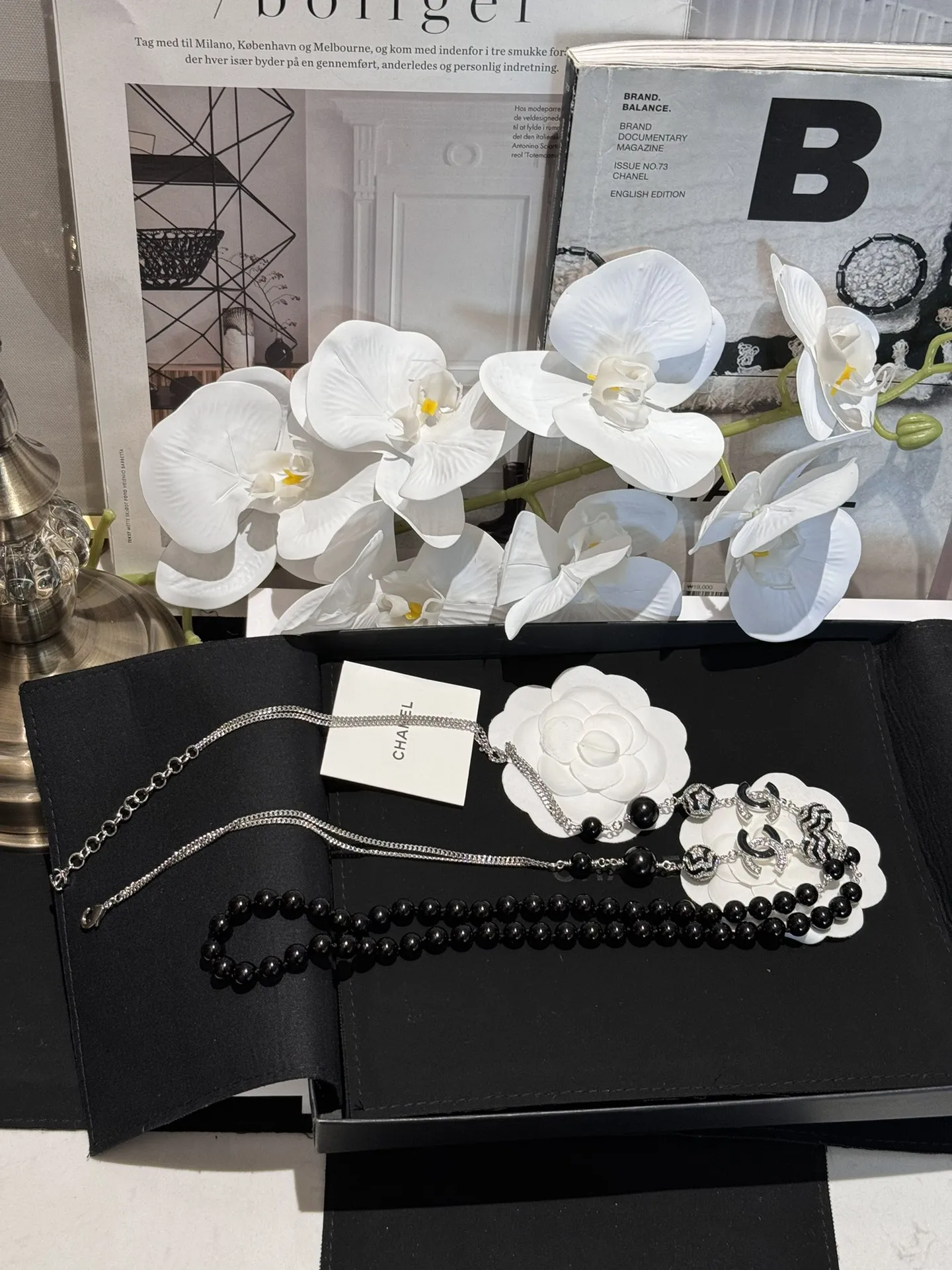 Женское колье Chanel в серебре с искусственным жемчугом.
