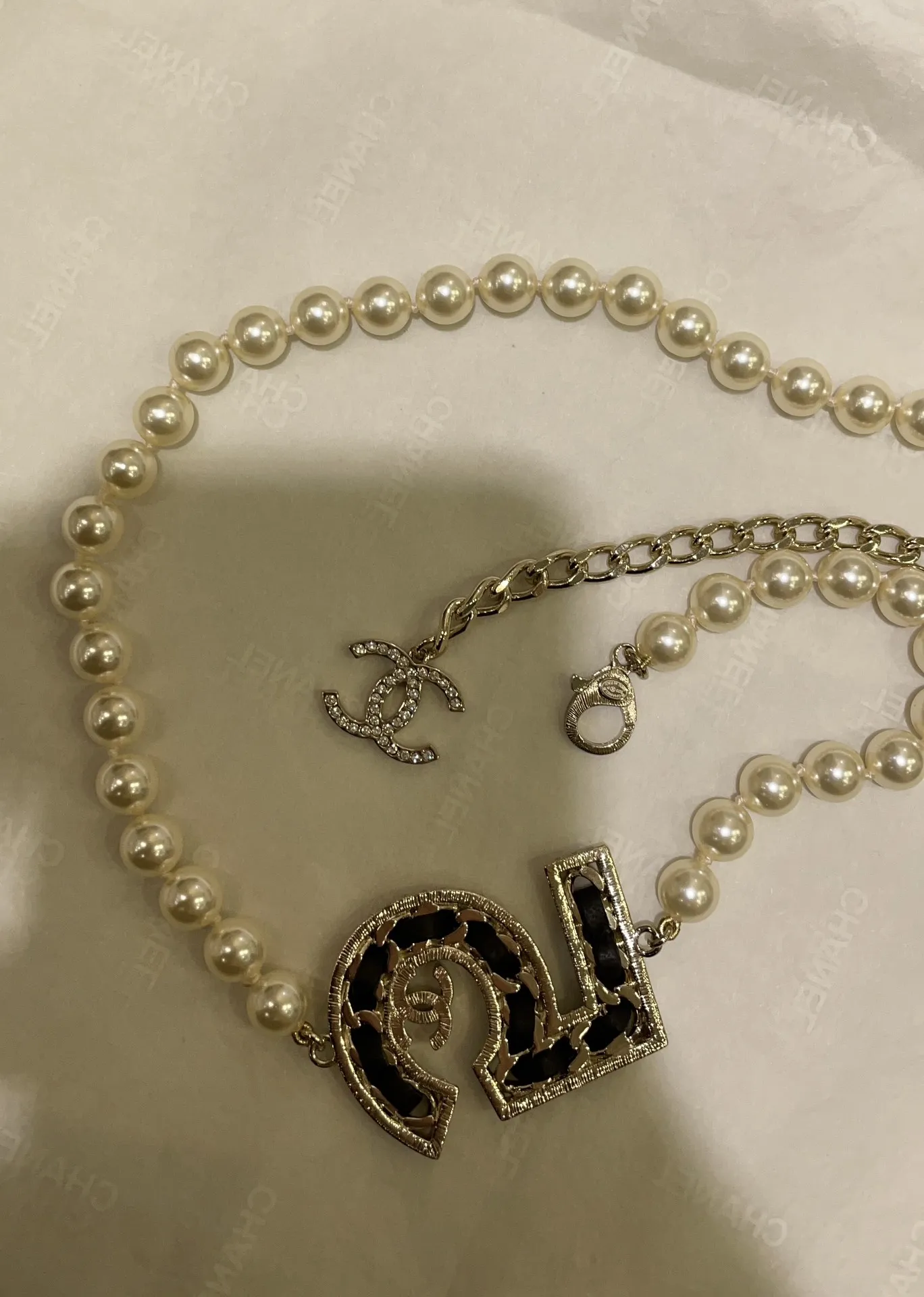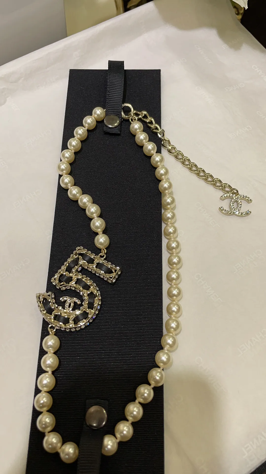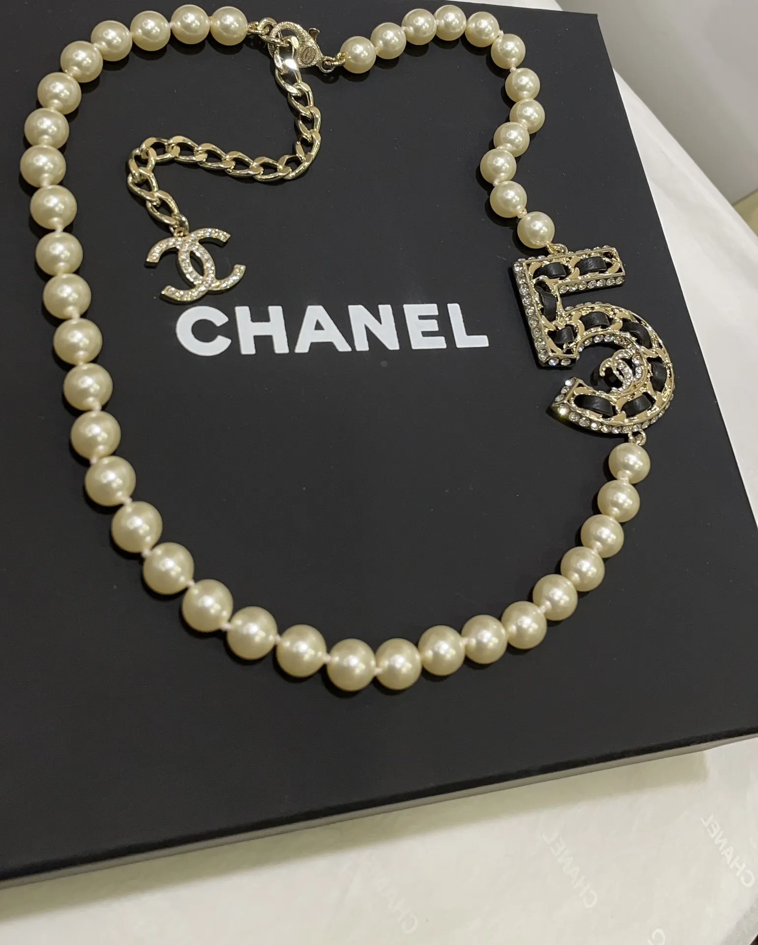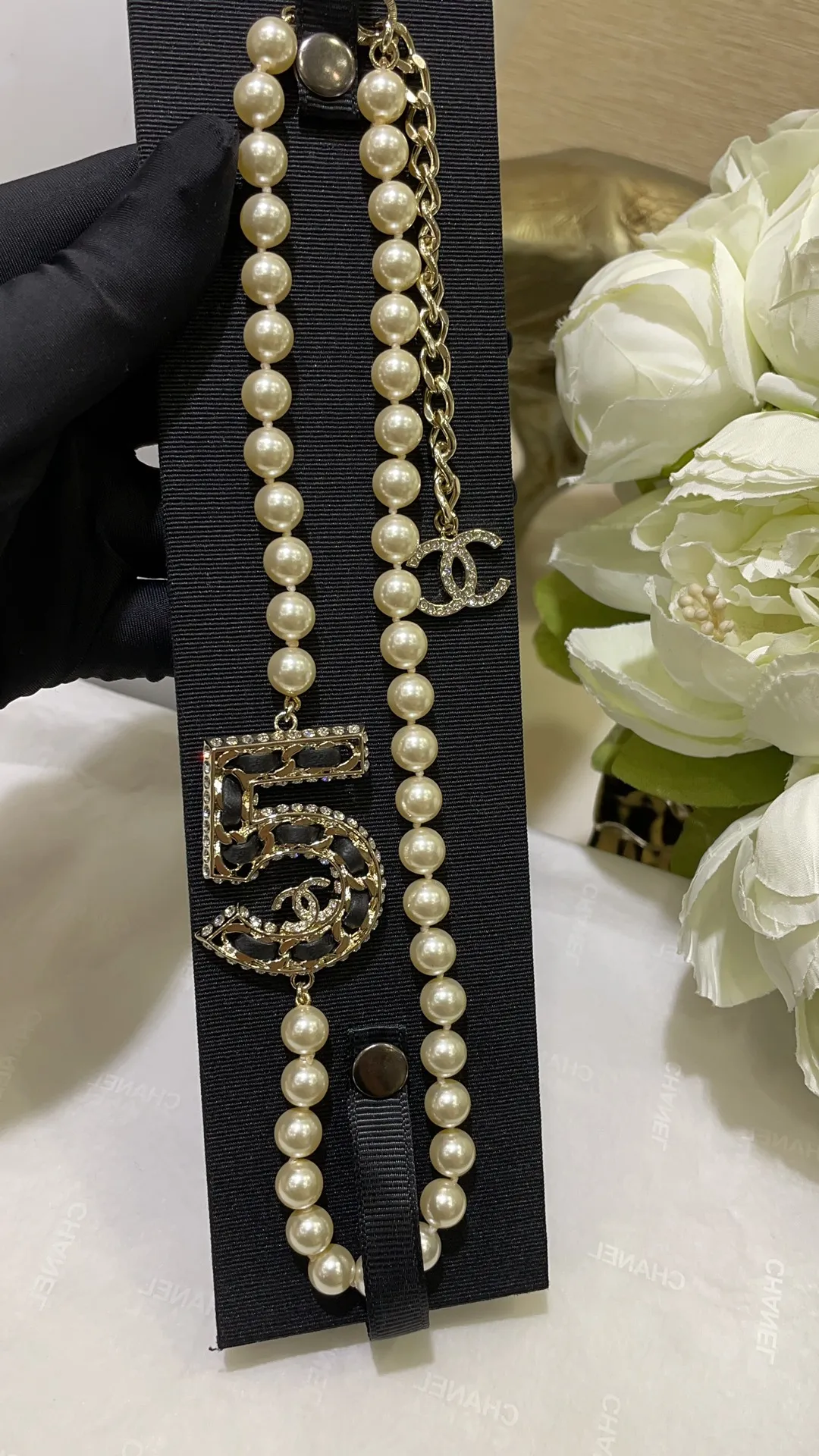 Ожерелье колье с жемчугом от Chanel связано с культовым ароматом Chanel No. 5, является уникальным предметом роскоши. Chanel известна своими изысканными украшениями, которые сочетают в себе элегантность и современность.