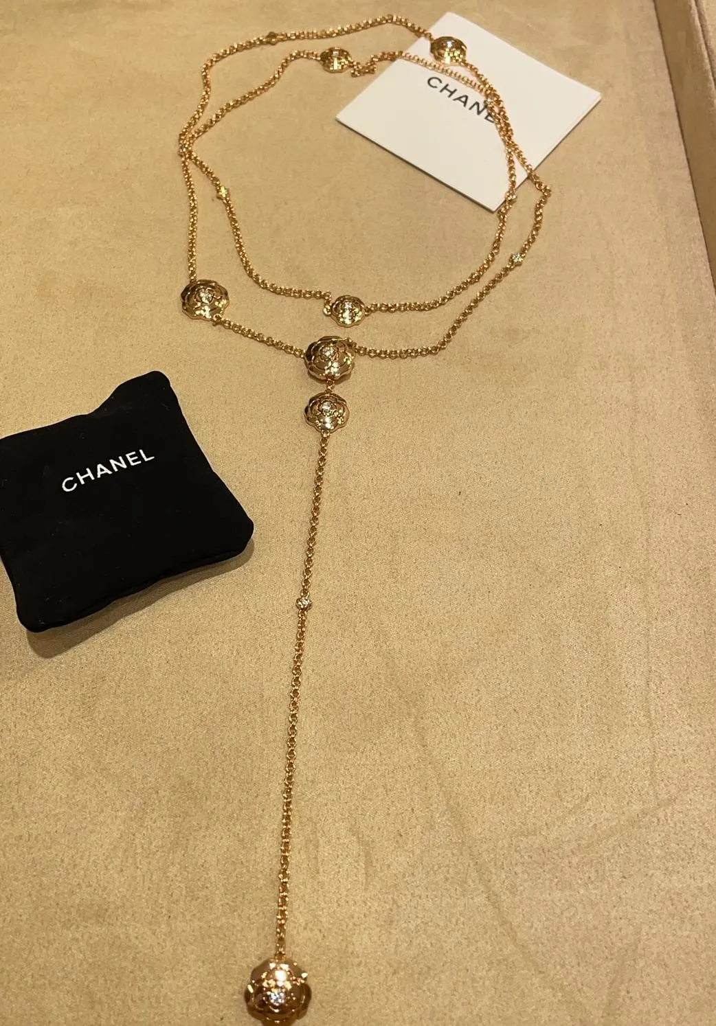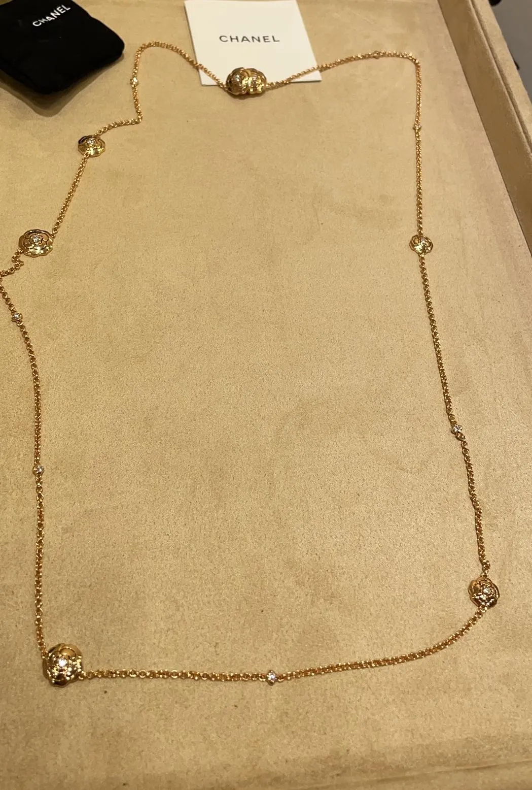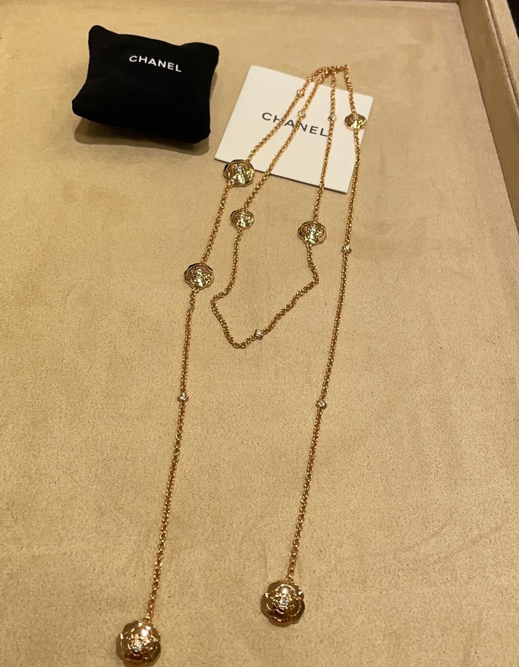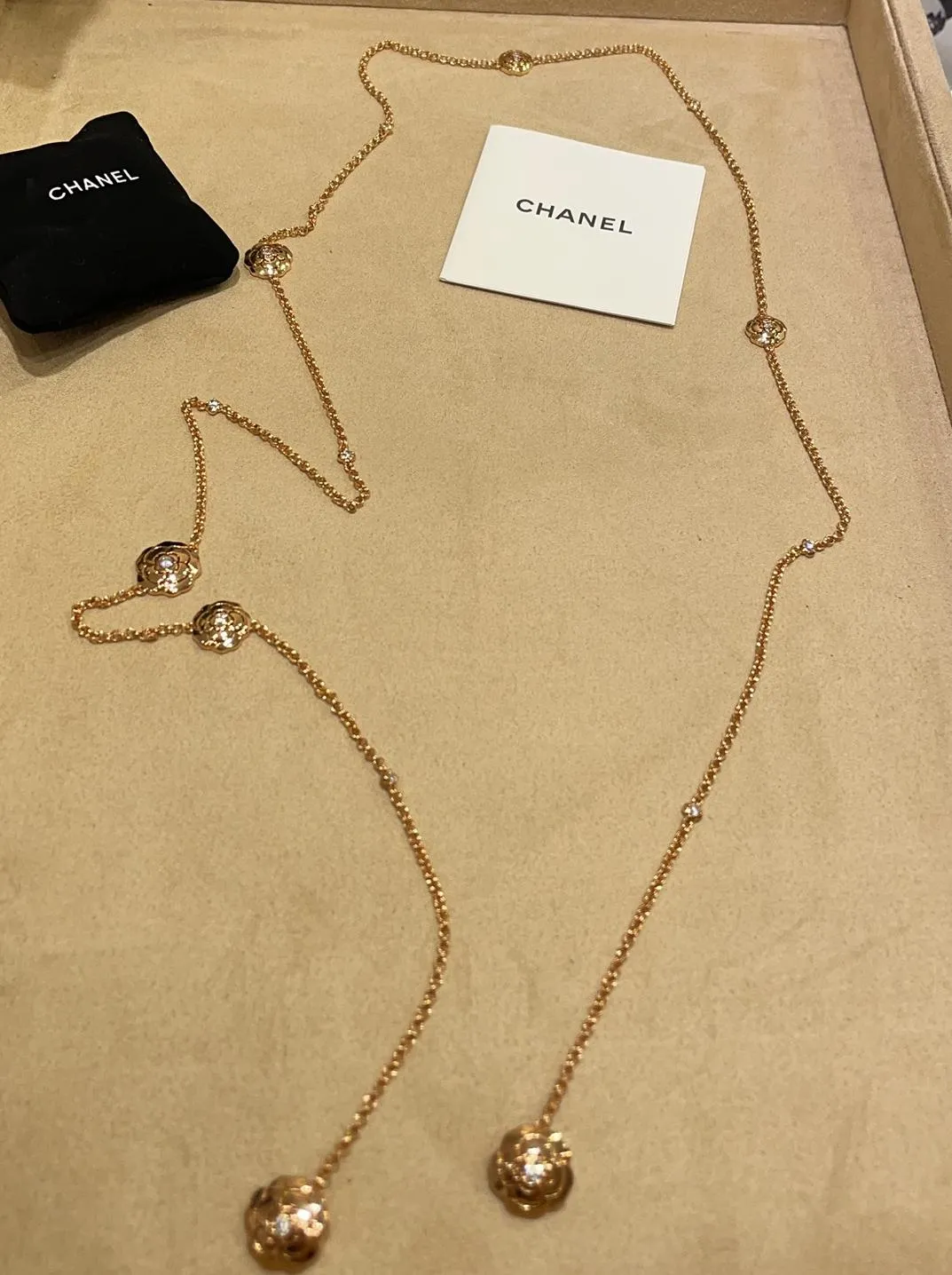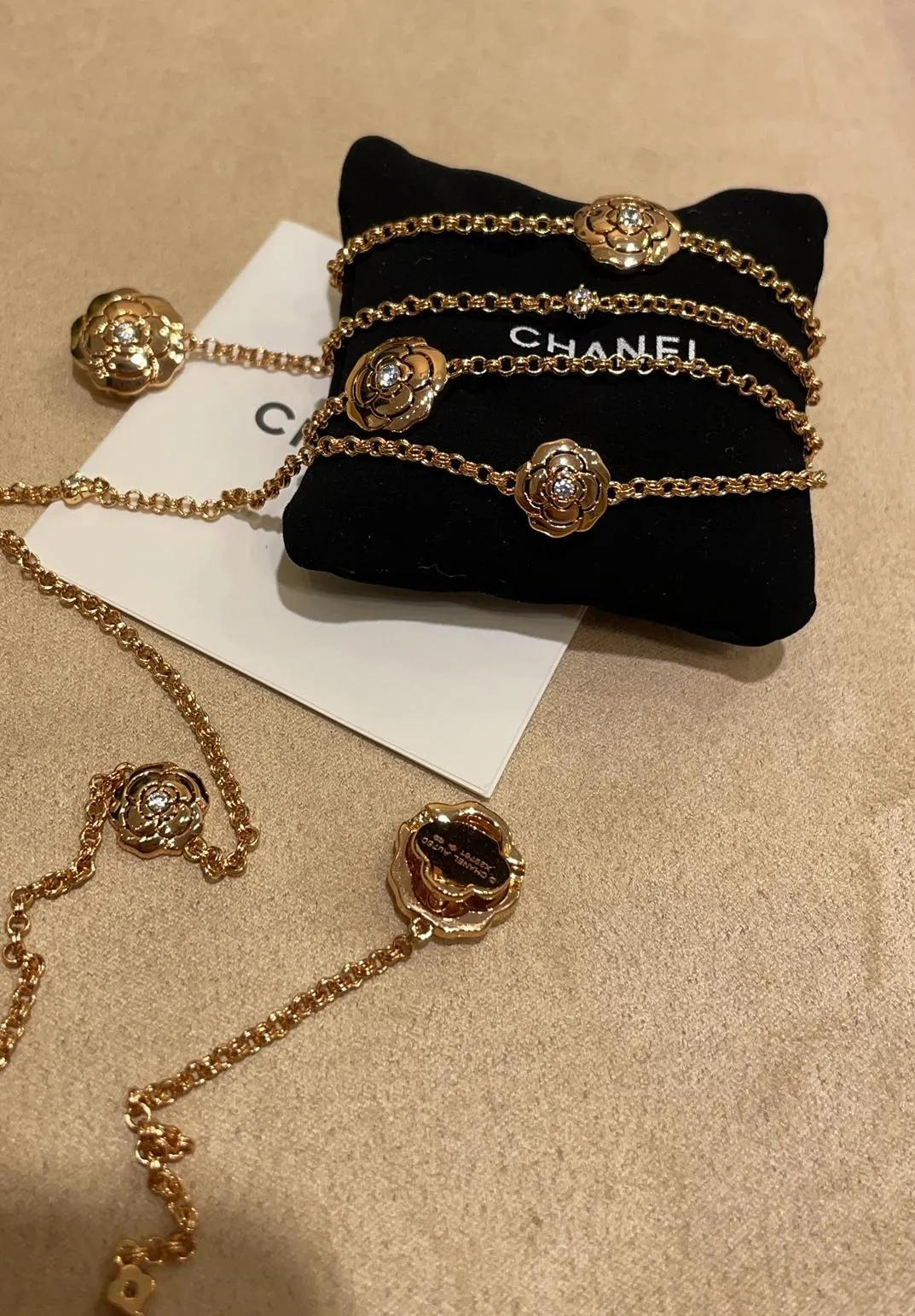 Колье Chanel из меди и циркона в форме камелии, можно носить как браслет.