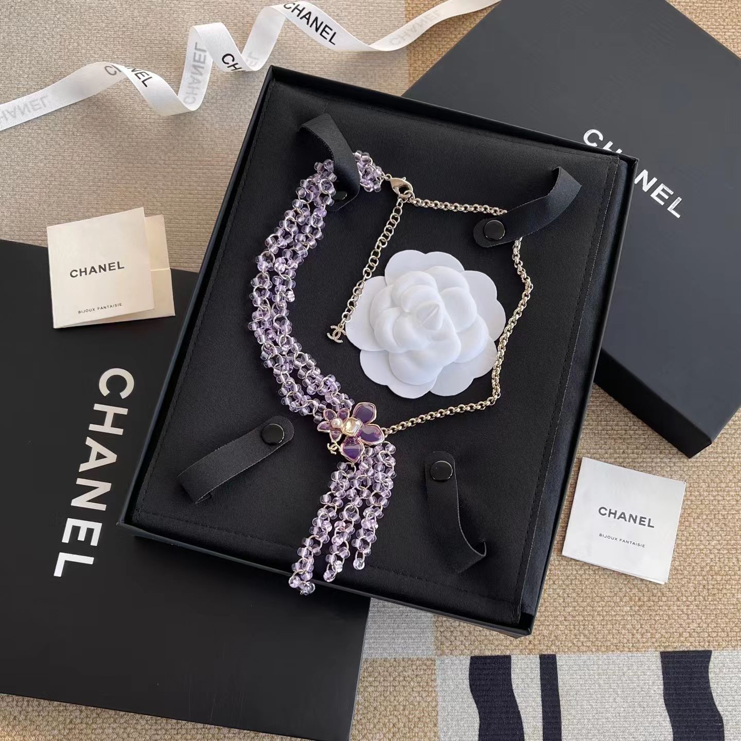 CHANEL Женское колье с цветком и стеклянным жемчугом