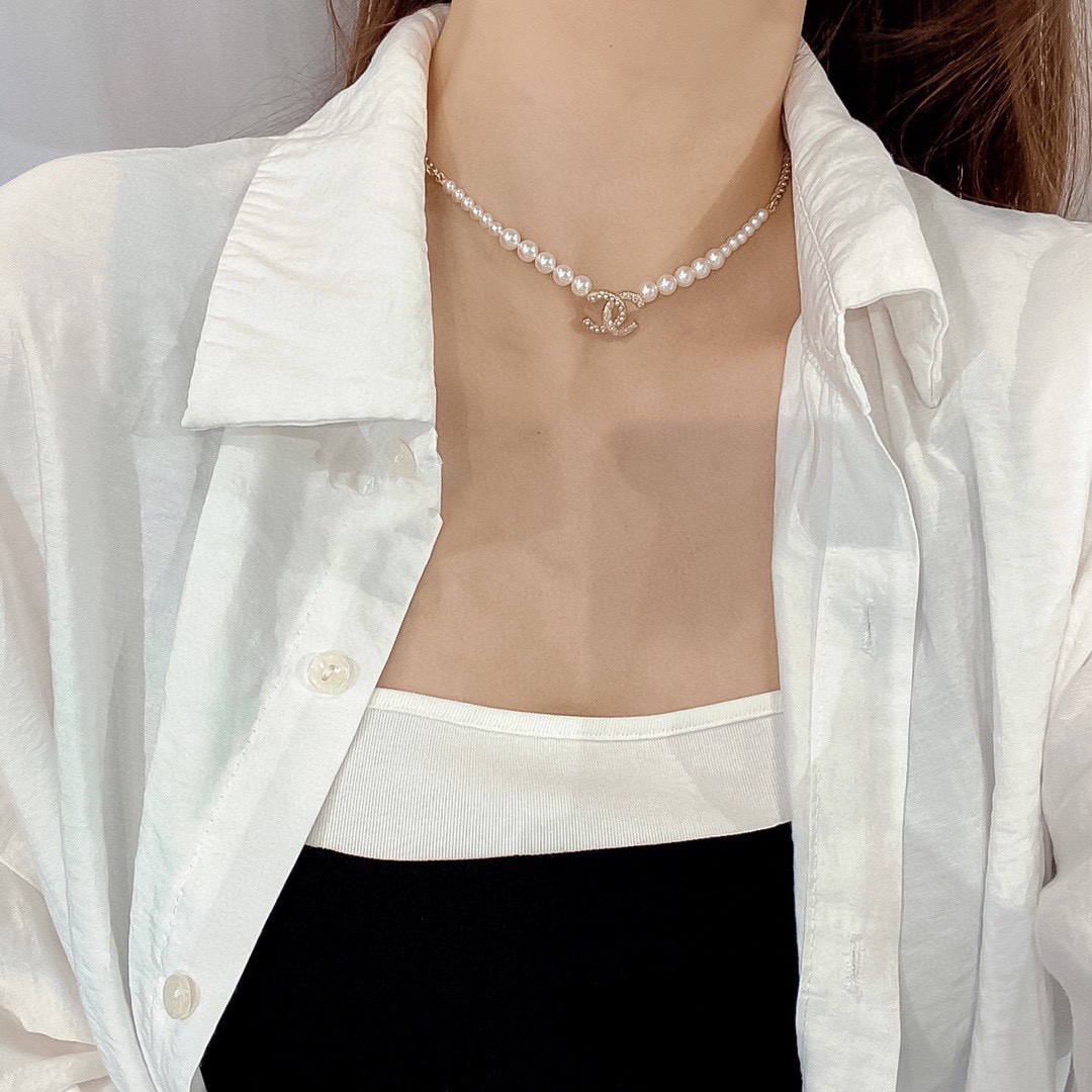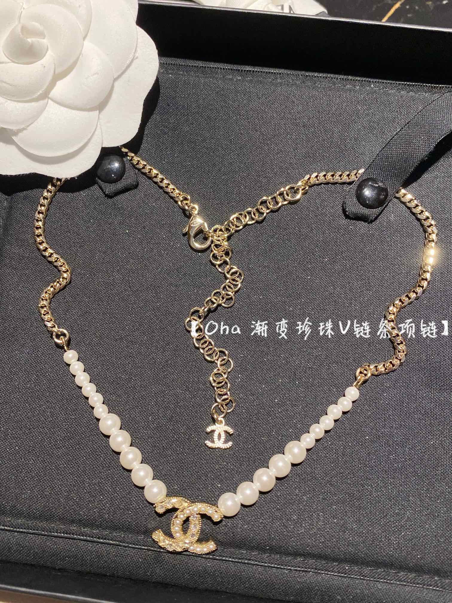 Ожерелье Chanel с V-образной цепочкой и градиентным жемчугом — это изысканный аксессуар, который добавит нотку шика в любой образ. Сочетание сверкающих цепочек и жемчуга создаёт элегантный и стильный вид, идеально подходящий для различных случаев, будь то вечерний выход или деловая встреча.