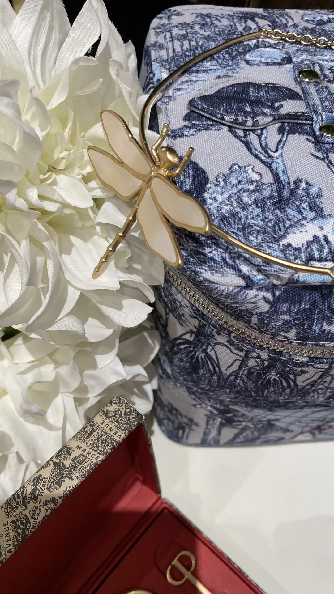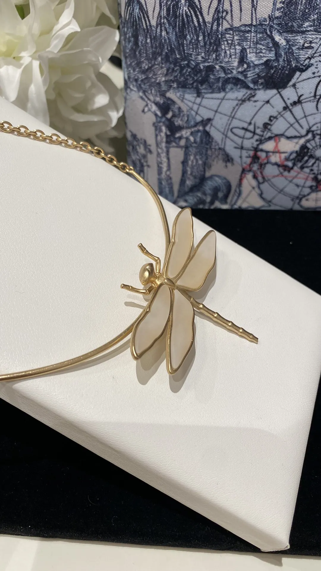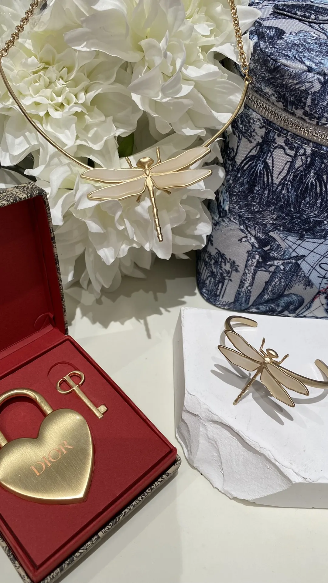 Браслет Dior в виде стрекозы из смолы – это роскошное и стильное украшение, которое сочетает в себе элементы haute couture и уникального дизайна. Dior известен своими изысканными аксессуарами, и этот браслет не является исключением. Он выполнен из цветной и прозрачной смолы, а также украшен стеклянными элементами или металлическими деталями, что добавляет декоративности и выразительности.