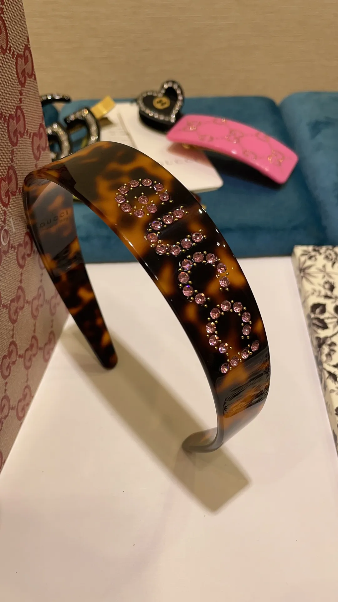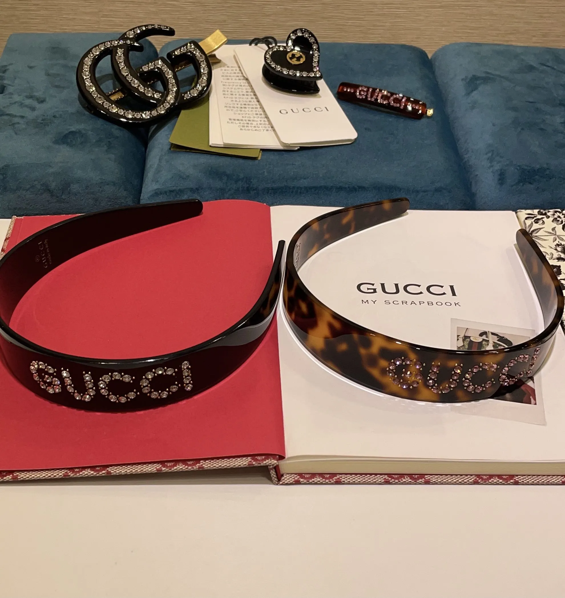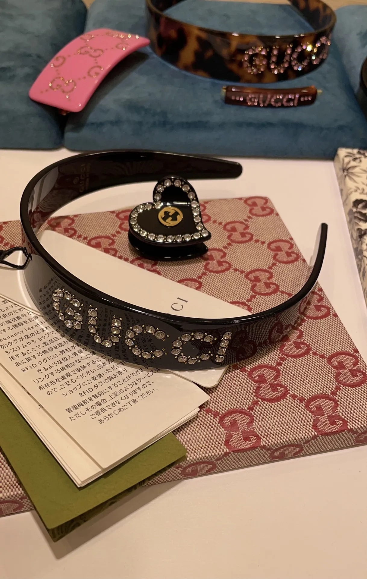 Ободок на голову Gucci из смолы, украшенный стразами, — это стильный аксессуар, который прекрасно дополнит любой образ. Обычно такие изделия сочетают в себе элегантный дизайн и высокое качество, что делает их популярными среди модников.