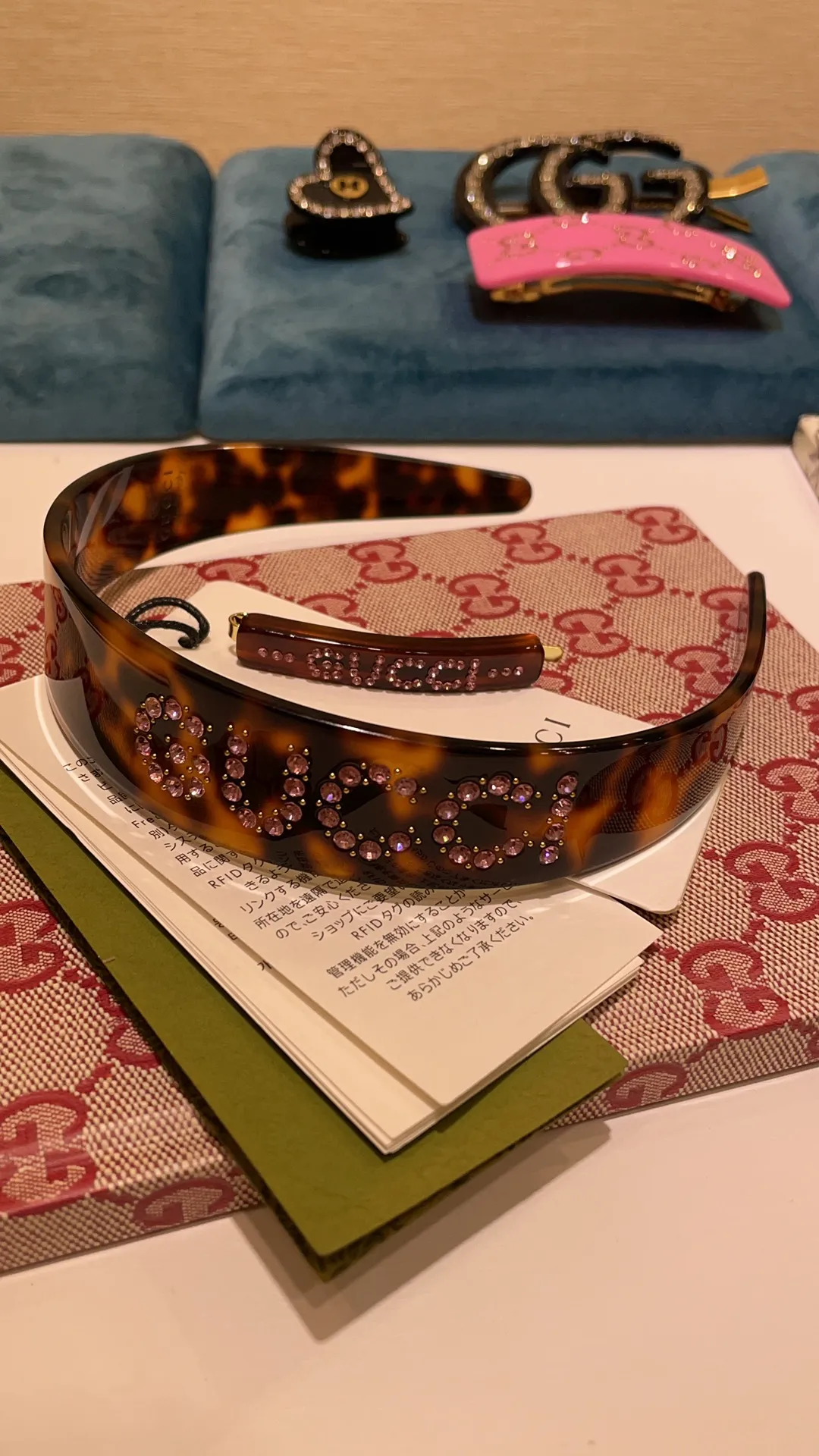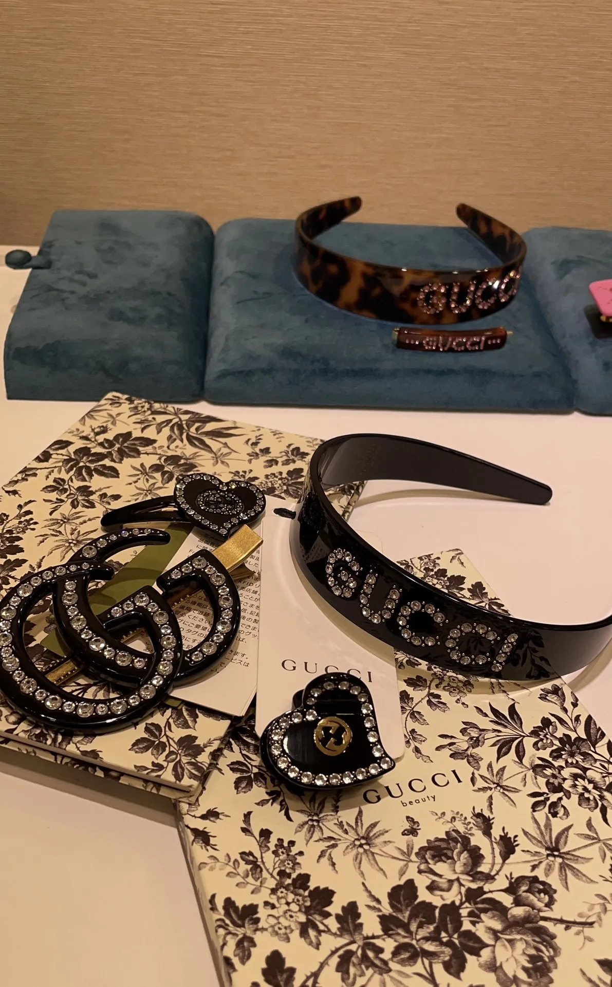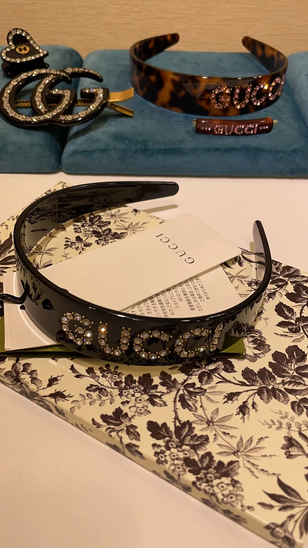 Ободок на голову Gucci из смолы, украшенный стразами, — это стильный аксессуар, который прекрасно дополнит любой образ. Обычно такие изделия сочетают в себе элегантный дизайн и высокое качество, что делает их популярными среди модников.