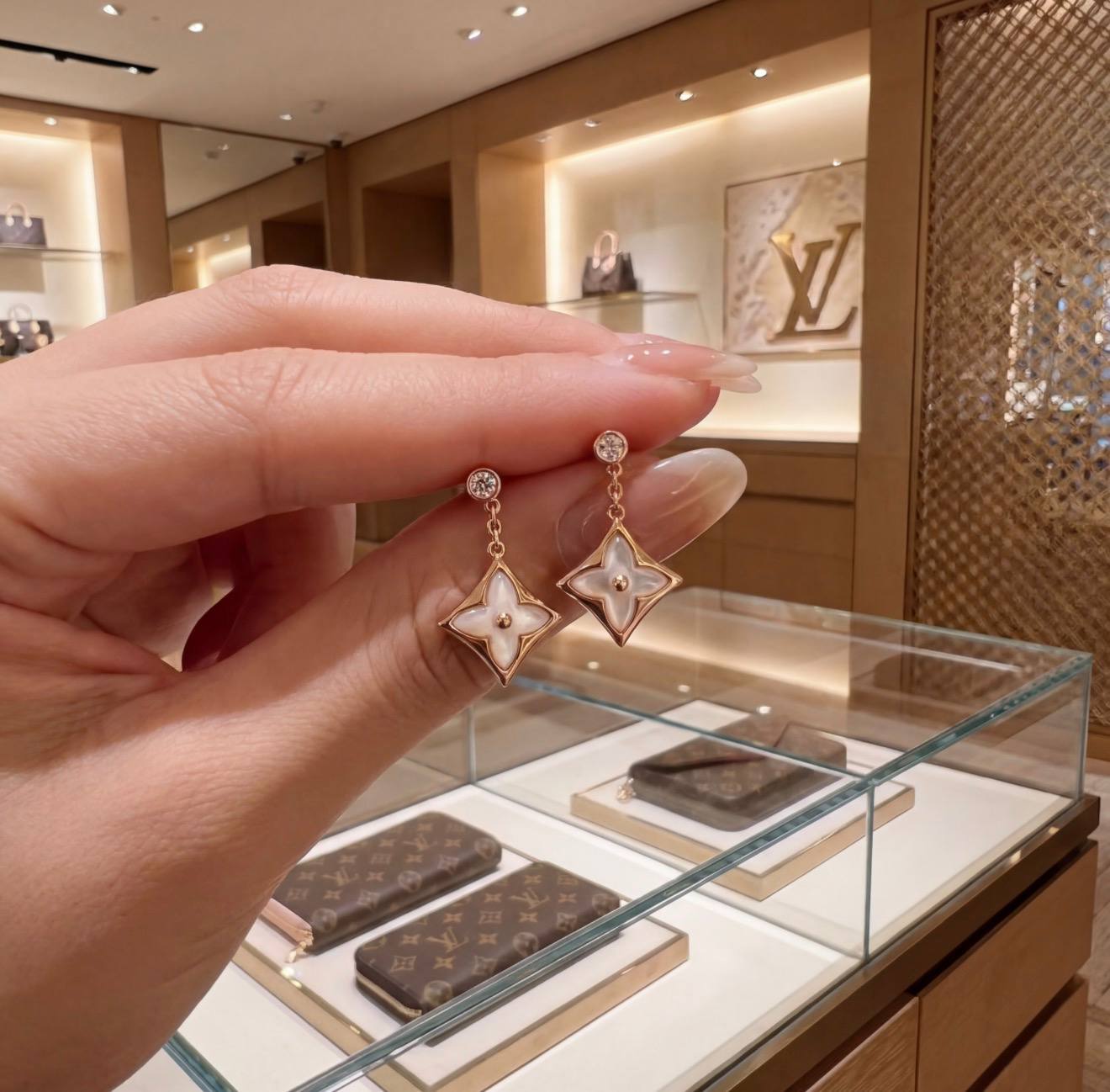 • Дизайн: подвесные серьги с мотивом Monogram Flower, гвоздик с кристаллом