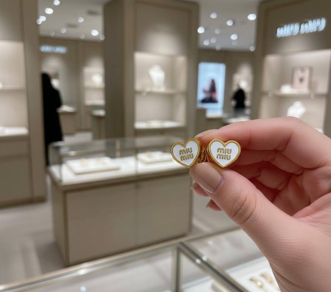 Игривые и в то же время утончённые серьги‑гвоздики MIU MIU в форме сердца — идеальный аксессуар для повседневного и вечернего образа. Изделие сочетает теплый золотистый металл и белую эмаль, а фирменный логотип Miu Miu нанесён на лицевой стороне, создавая аккуратный брендовый акцент.