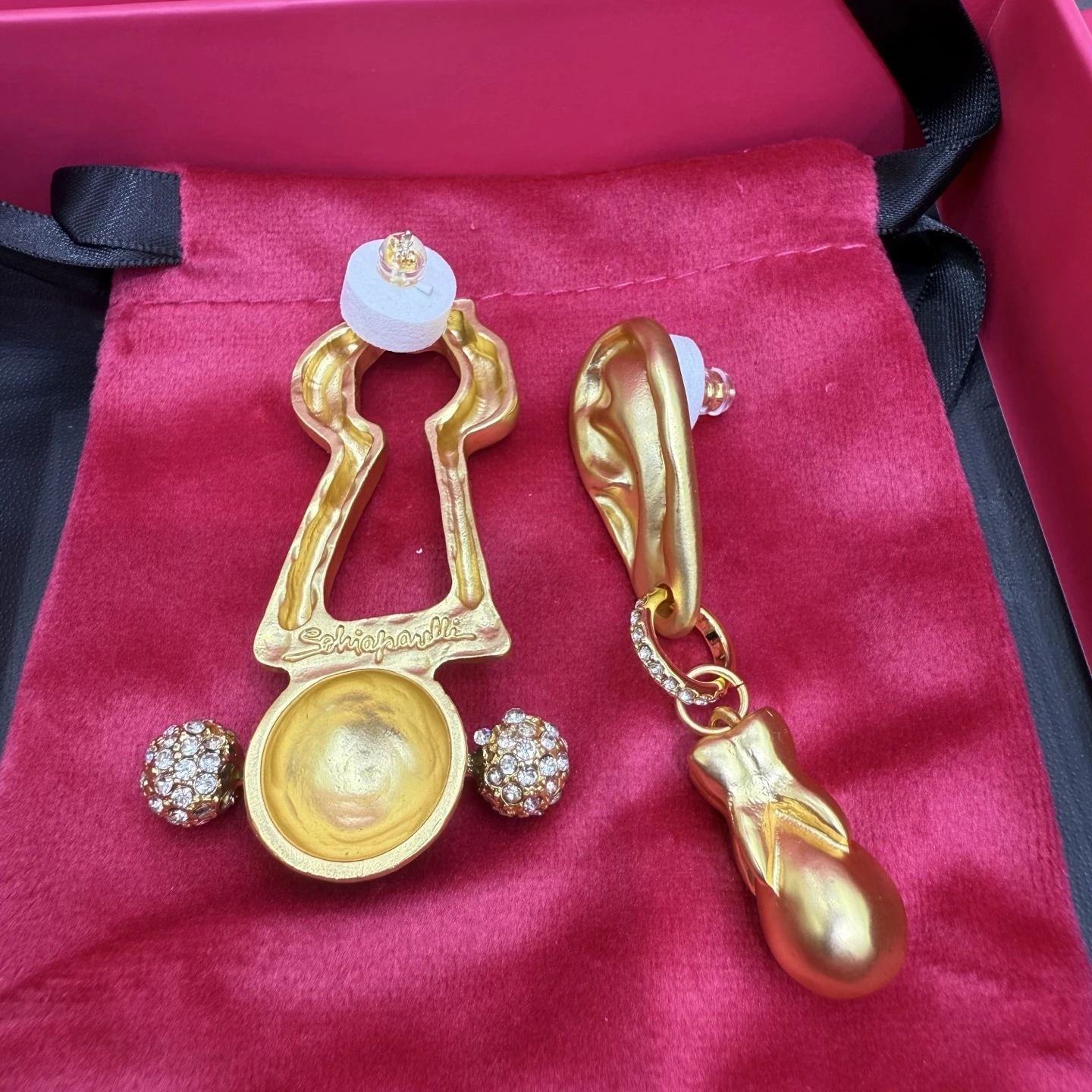 Серьги Скиапарелли воплощают в себе уникальную эстетику, которая сочетает в себе сюрреализм и экстравагантность. Использование камней, эмали и позолоты придает им роскошный вид, а необычные формы и детали делают каждое изделие настоящим произведением искусства.