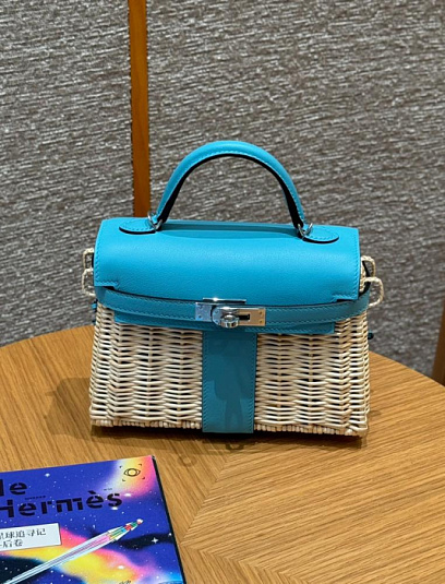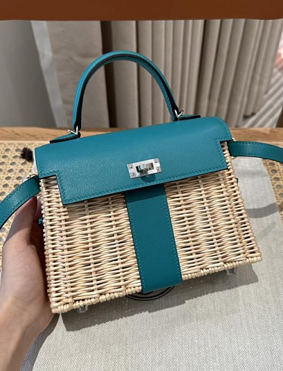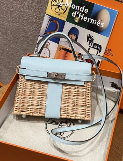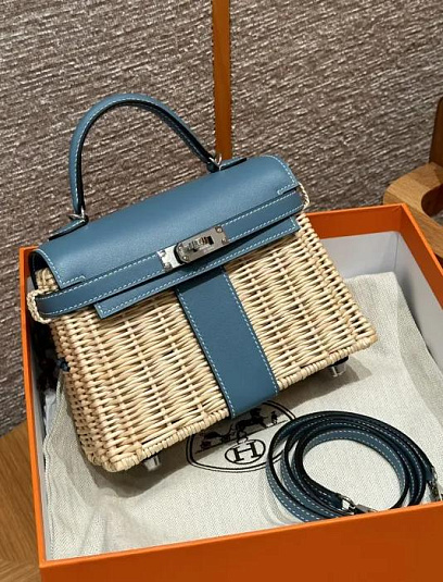HERMES Женская сумка Kelly Picnic 20 см T0/Blue Brume Swift