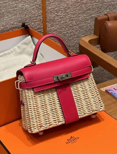 HERMES Женская сумка Kelly Picnic 20 см 90/Framboise Swift