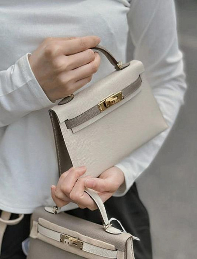 HERMES Женская сумка Kelly mini 19 см 18/Etoupe 0U/New white Chevre
