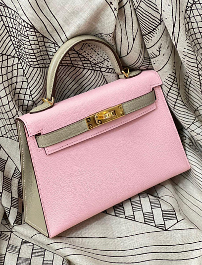 HERMES Женская сумка Kelly mini 19 см 3Q/Rose Sakura Epsom