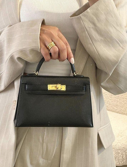 HERMES Женская сумка Kelly mini 19 см 89/Noir Chevre
