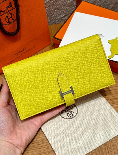HERMES Кошелёк Bearn 17.5 см 9R/Lime Epsom