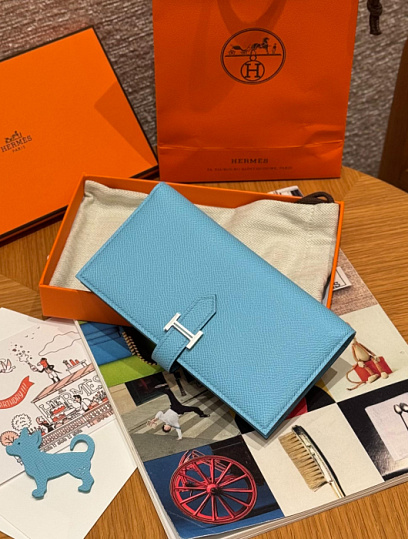 HERMES Кошелёк Bearn 17.5 см M3/Blue encer Epsom