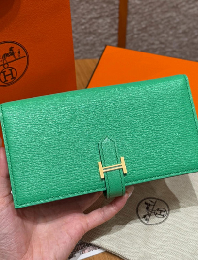 HERMES Кошелёк Bearn 17.5 см U4/Vert vertigo Epsom
