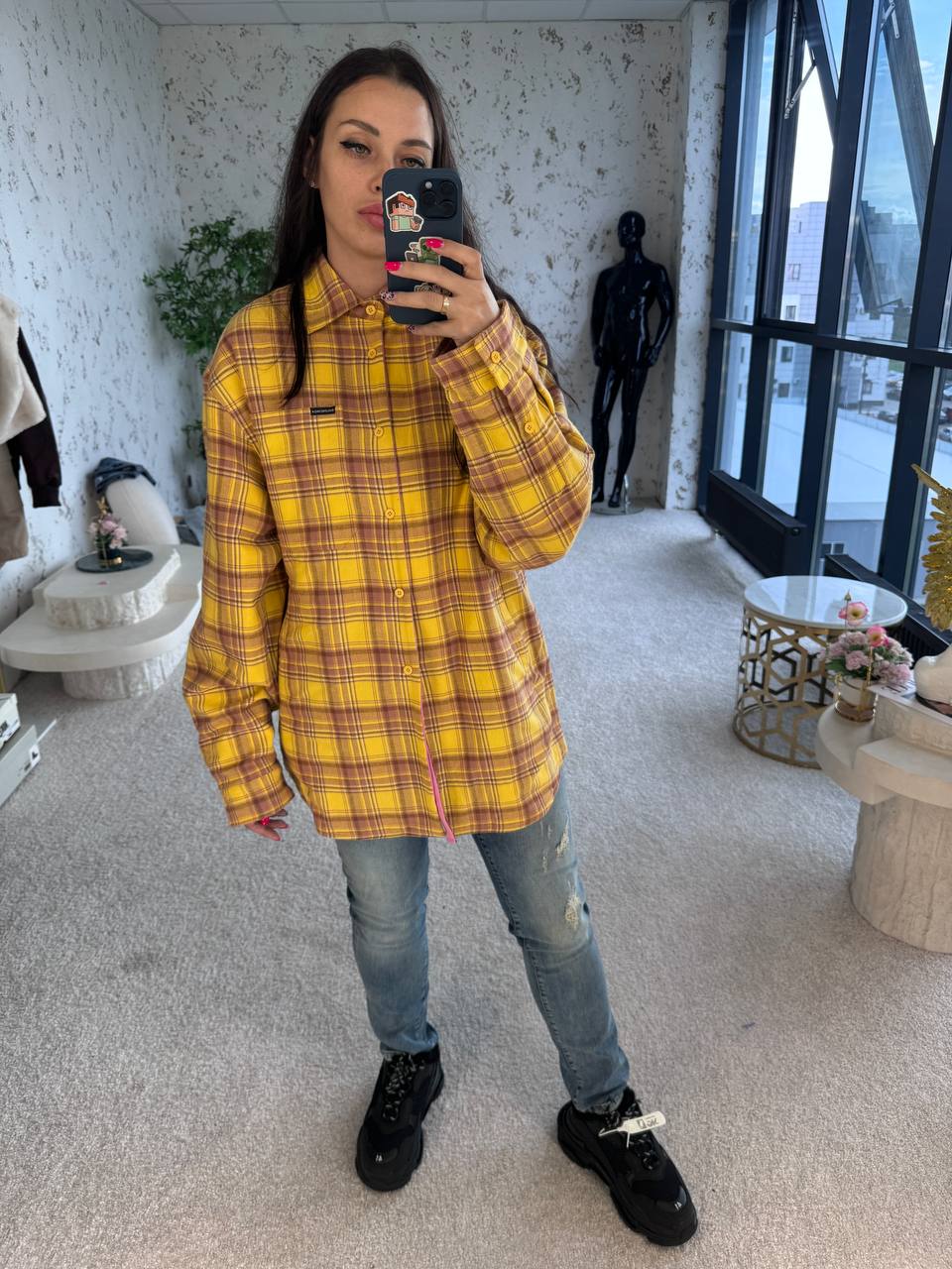 Оверсайз рубашка отлично смотрится в многослойных образах. Вы можете надеть её поверх легкого свитера или водолазки, чтобы создать уютный и модный лук.