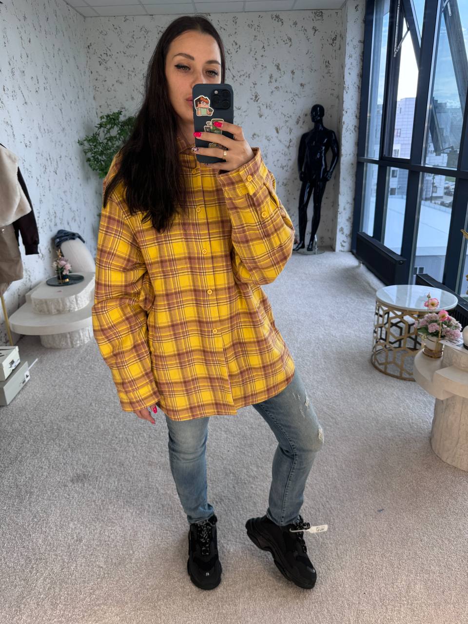 Сочетайте рубашку с узкими джинсами или леггинсами, чтобы сбалансировать объемный верх.