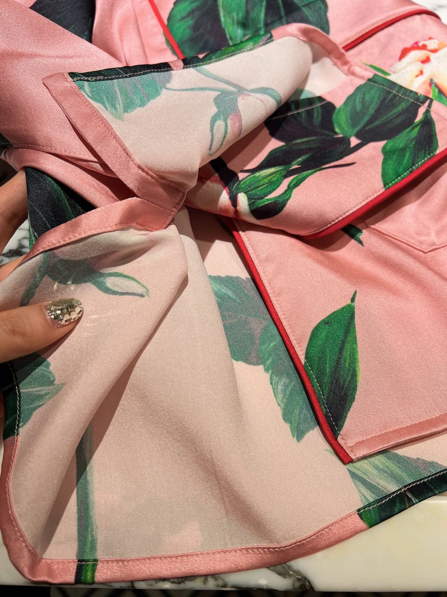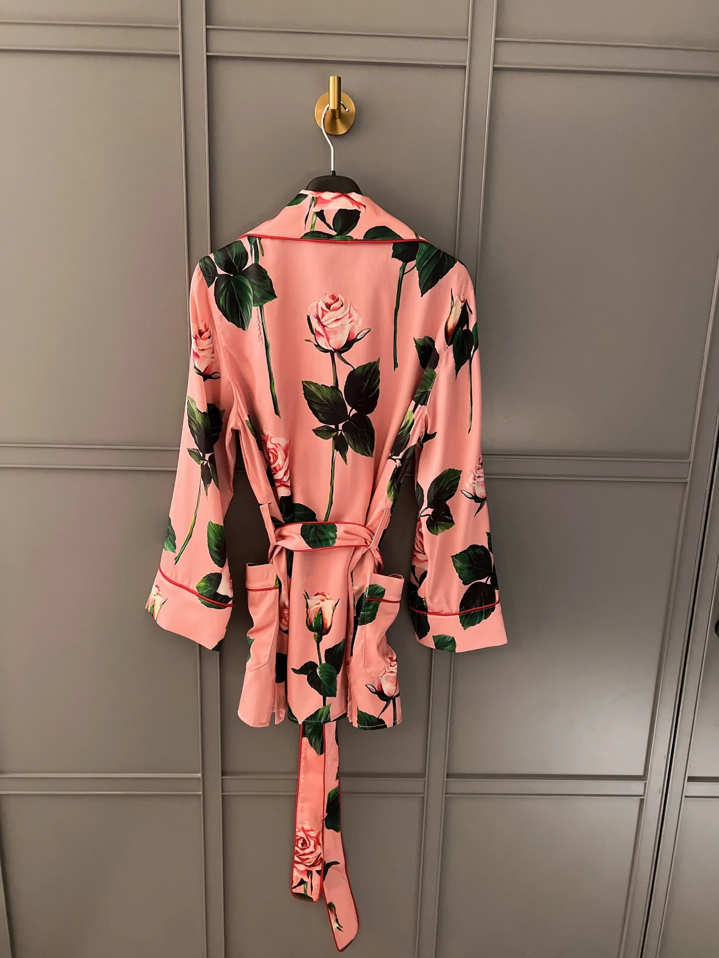 Эта рубашка нежно-розового оттенка из шелкового атласа, окутывает кожу мягким прикосновением, даря ощущение роскоши и комфорта. Искусный принт, рассыпающий бутоны роз по ткани, добавляет романтичности и женственности образу. Легкий, струящийся силуэт делает эту рубашку идеальной для создания элегантных и непринужденных ансамблей.