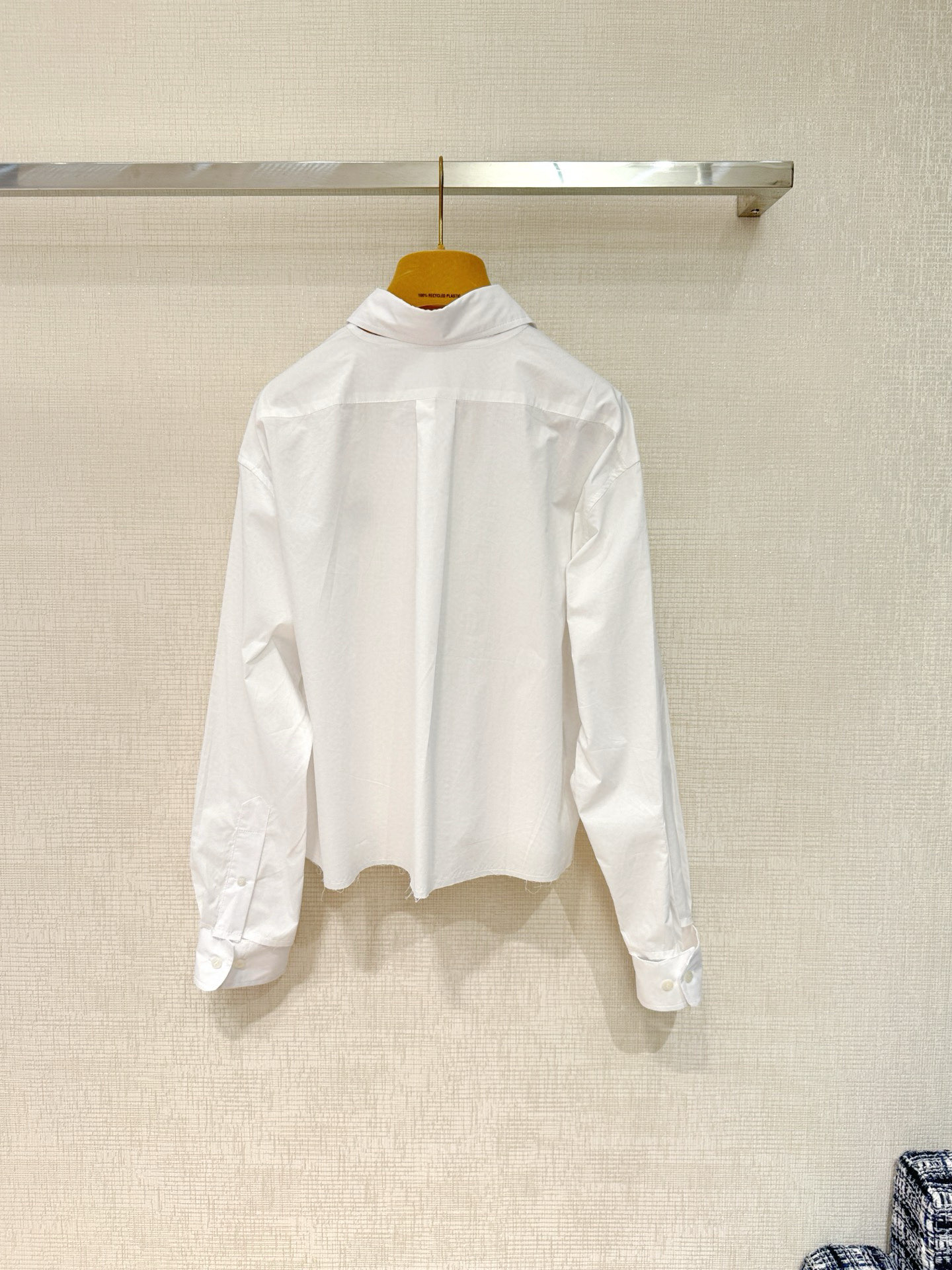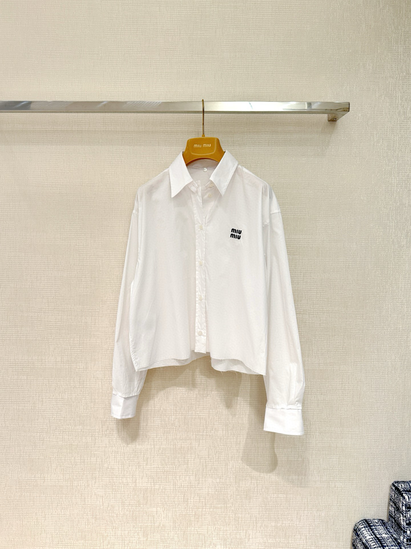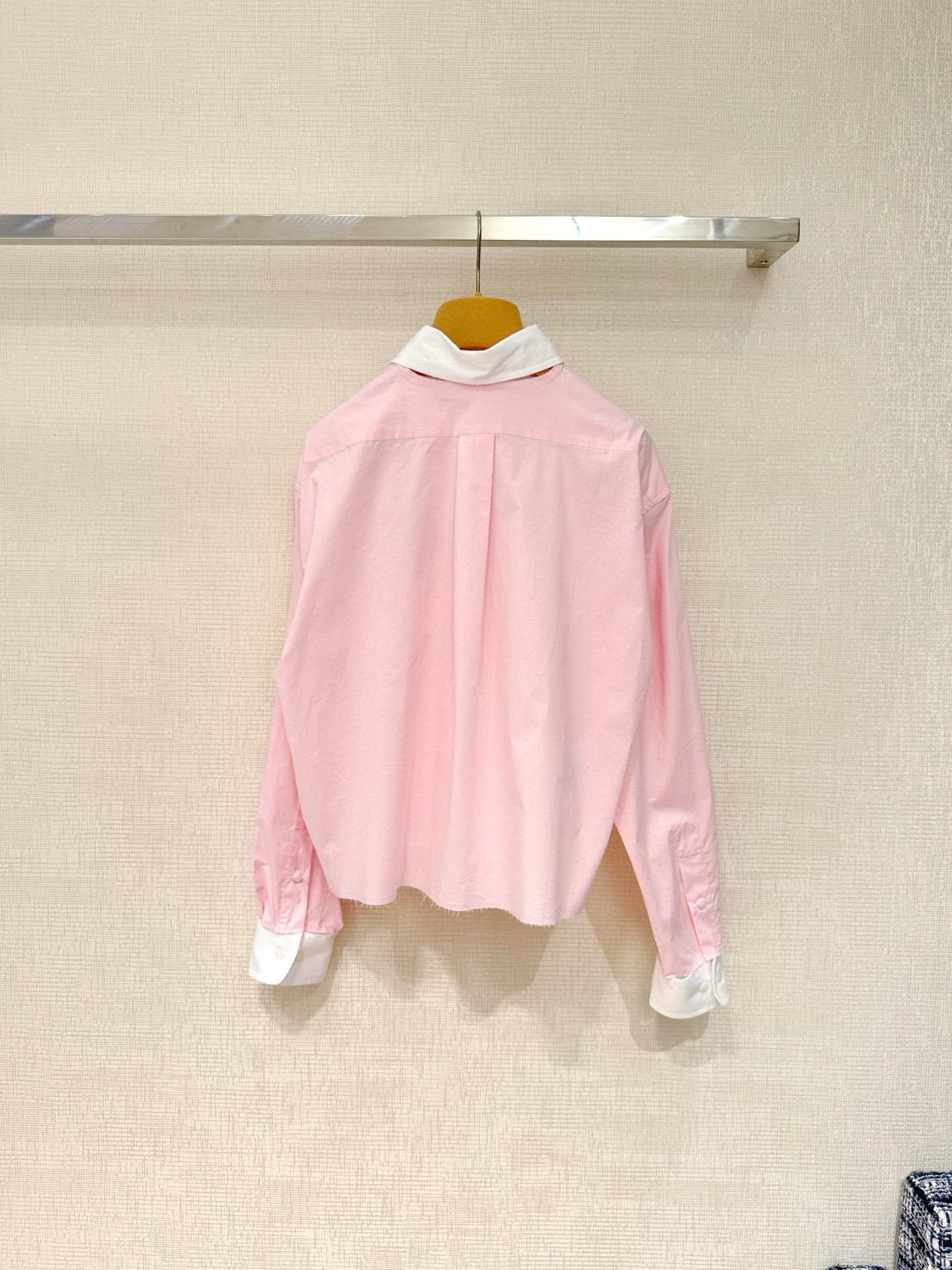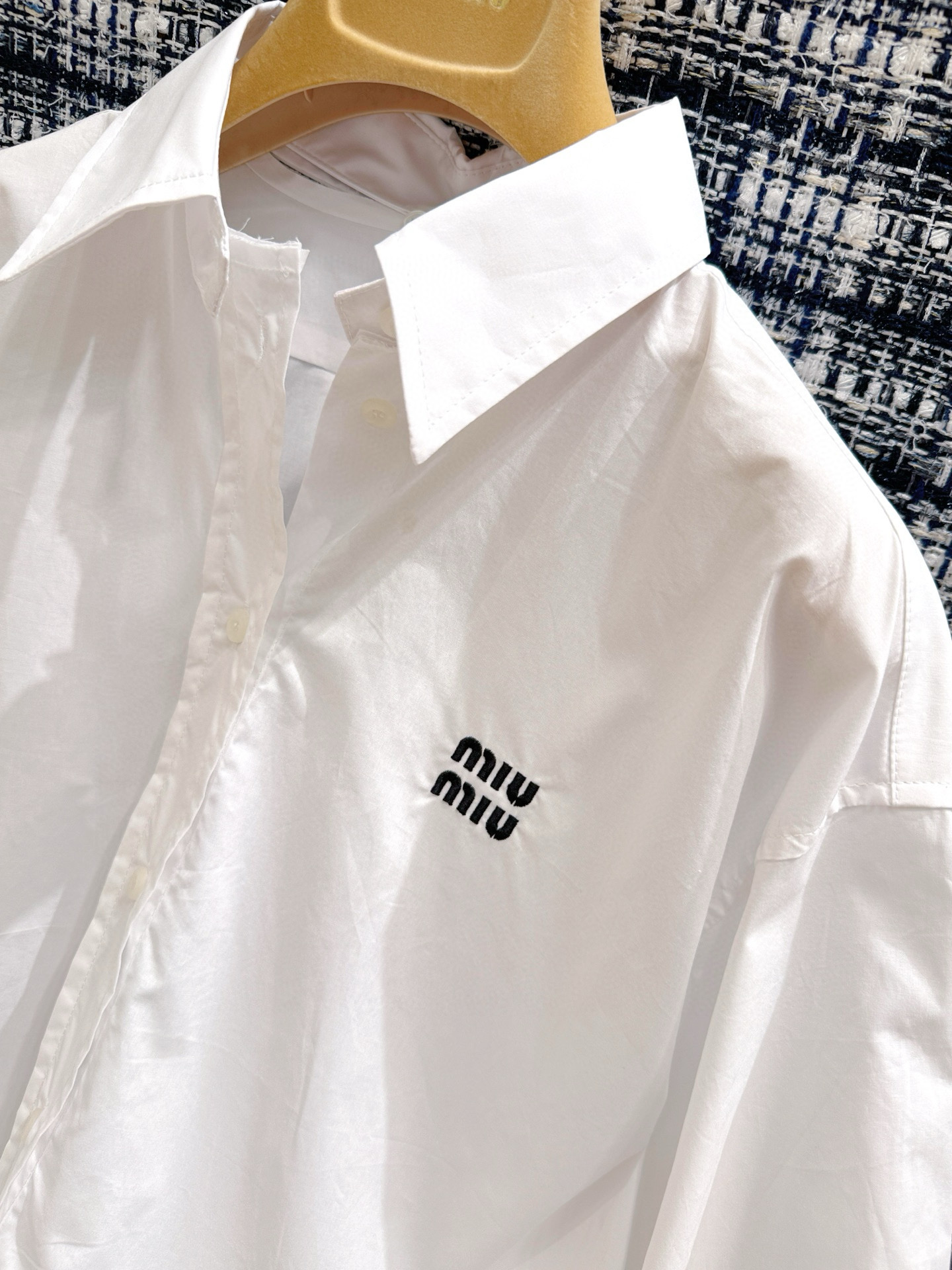 Элегантная женская рубашка от культового бренда MIU MIU выполнена из натурального хлопка, обеспечивающего комфорт на протяжении всего дня. Модель имеет стильный свободный крой и укороченную длину, идеально сочетается с джинсами, юбками или классическими брюками. Рубашка представлена в нежно-розовом и классическом белом цветах, с контрастным белым воротником и манжетами, что придает образу современный шарм. Лаконичный брендовый логотип MIU MIU на груди расставляет акцент на изысканности и статусе изделия.