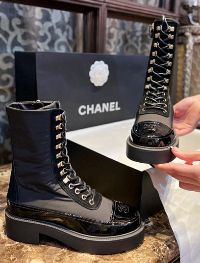 CHANEL Женские лакированные ботинки на шнуровке 23b