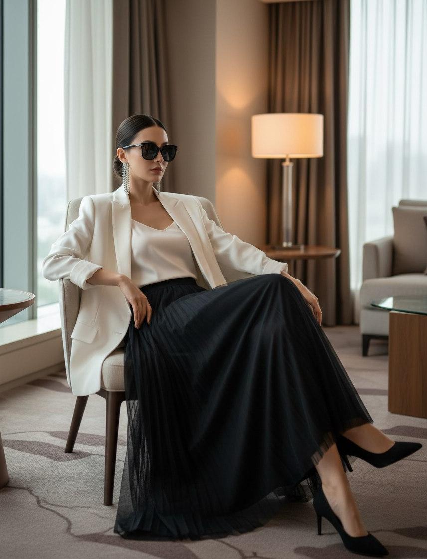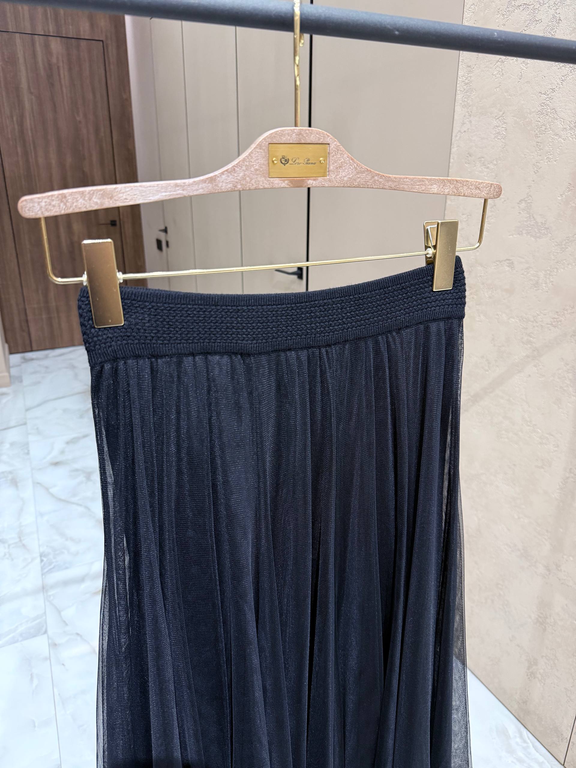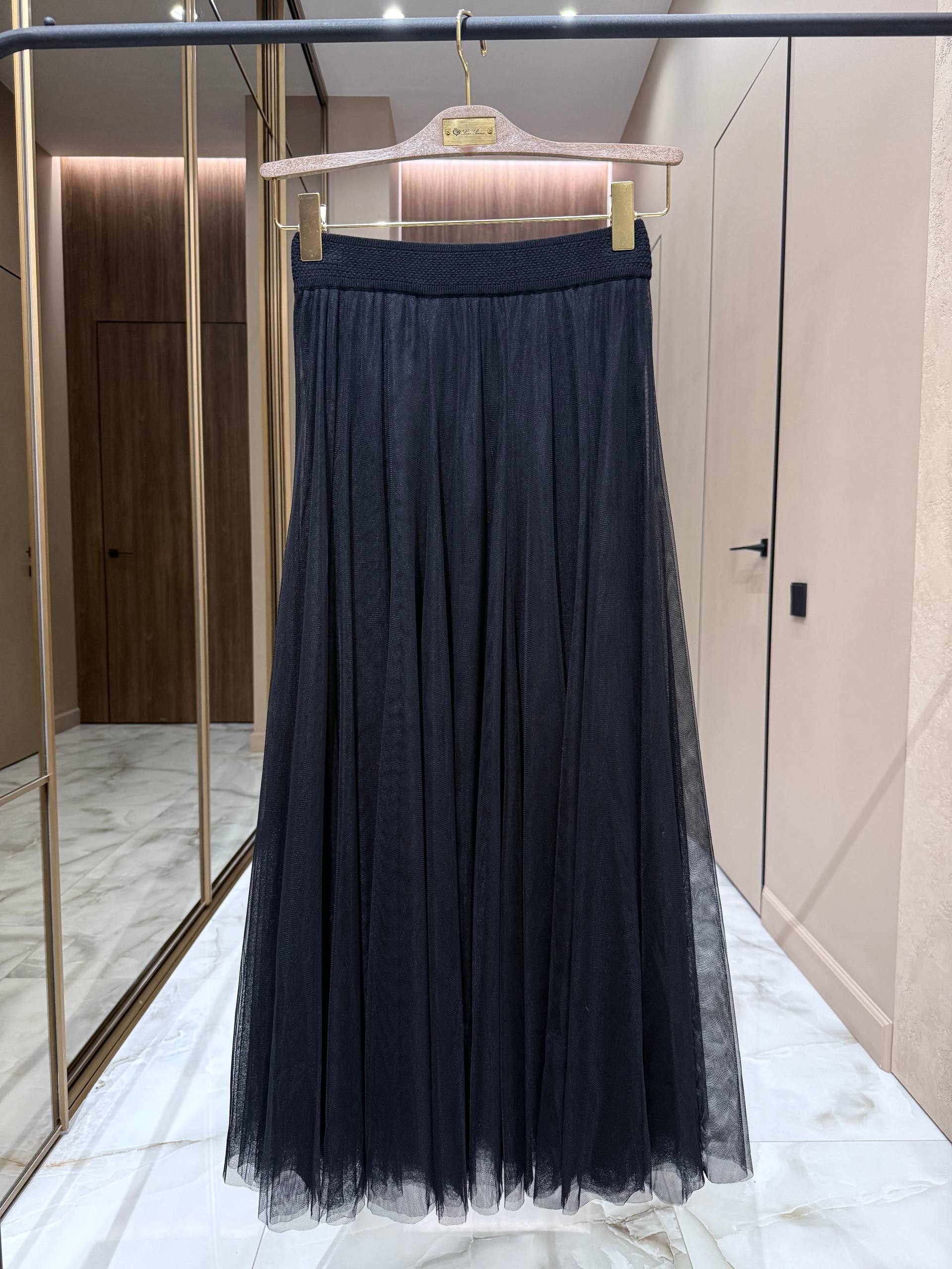 Юбка дополнена эластичным поясом для максимального удобства и идеальной посадки на талии. Универсальный черный цвет делает эту вещь отличным выбором как для повседневных, так и для вечерних образов. Стильная и женственная, она подчеркнет вашу индивидуальность и утонченность.