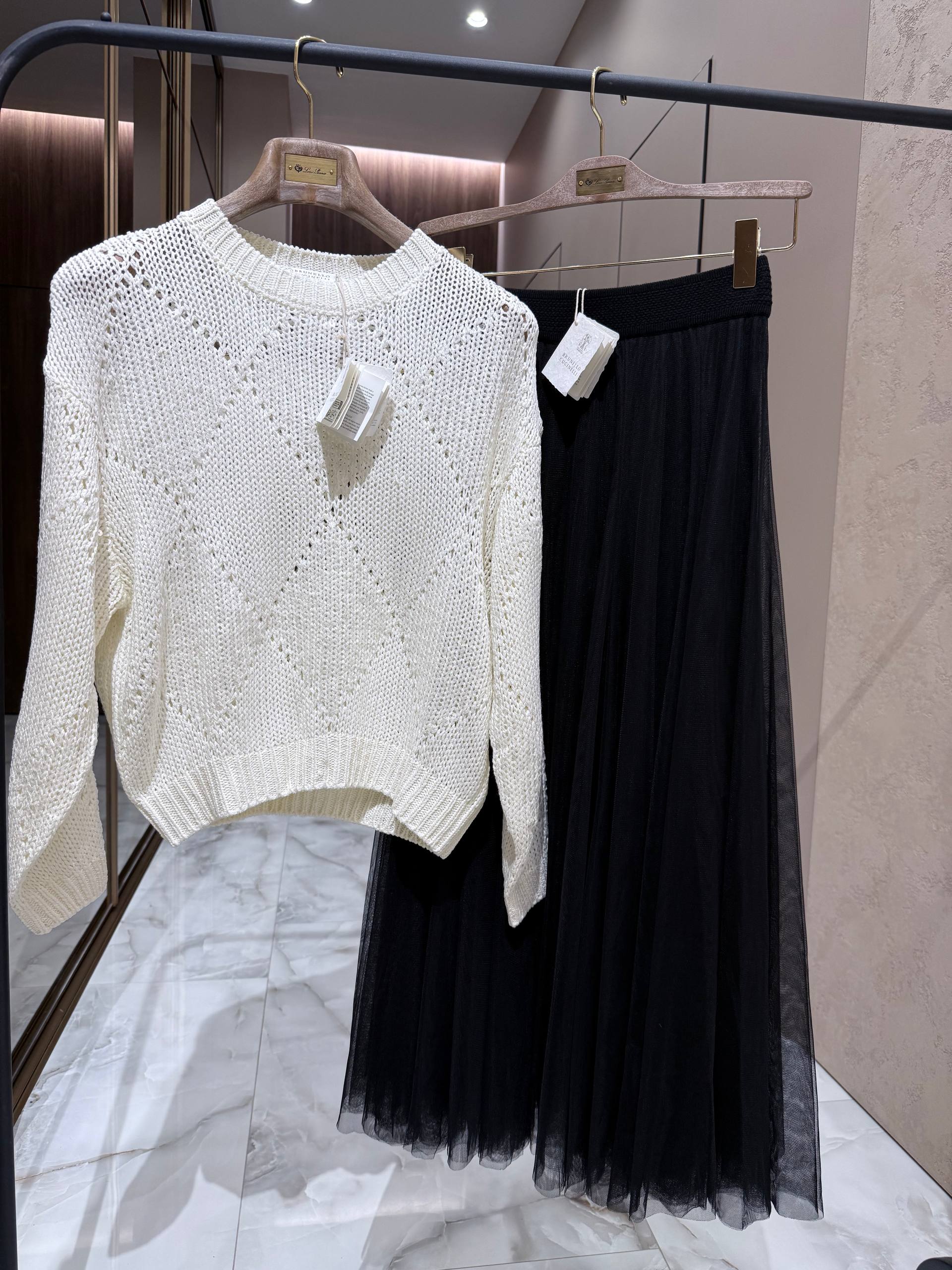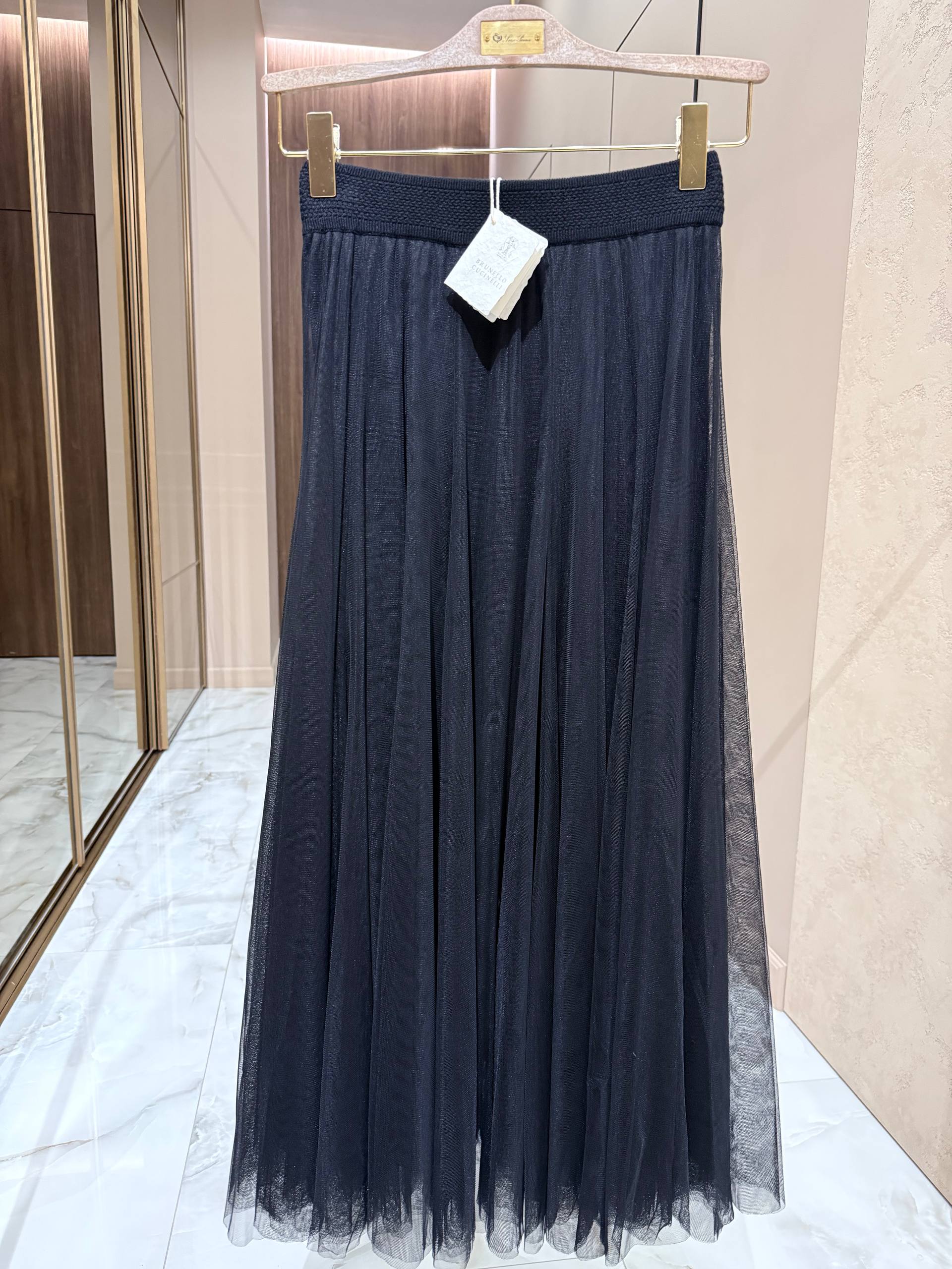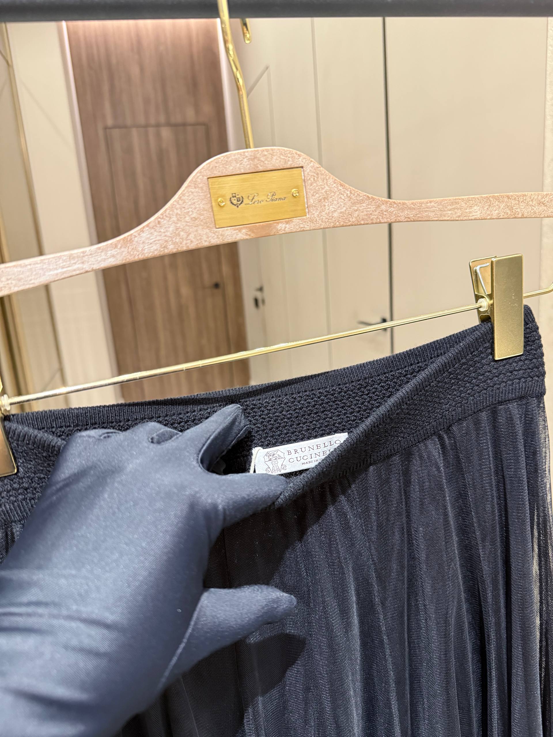 Юбка Brunello Cucinelli выполнена из премиальной смеси шерсти и нейлона, что обеспечивает комфорт и практичность в носке. Легкая многослойная структура придает модели воздушность и изысканность, а мягкая драпировка создает красивый силуэт.