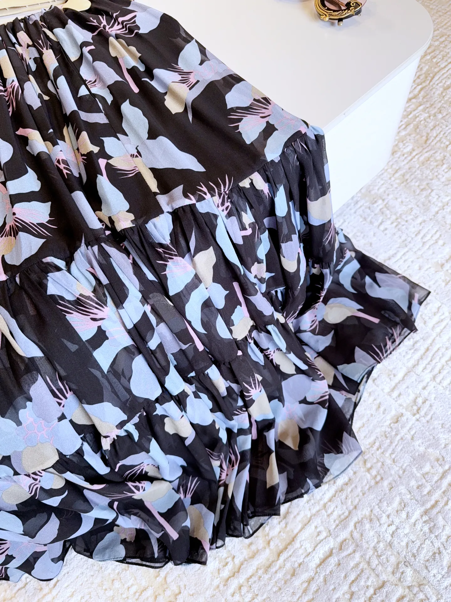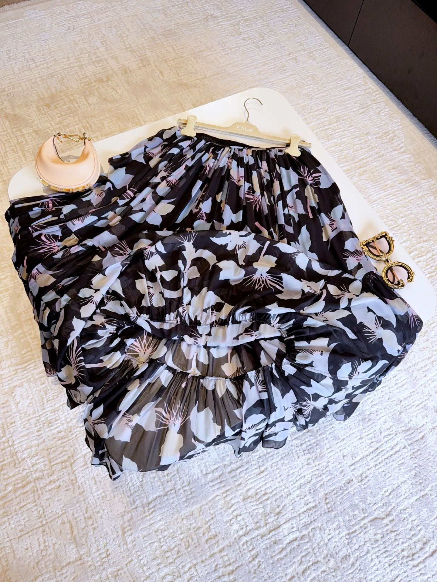 Юбка из двух частей из струящейся ткани – это элегантный и воздушный элемент гардероба. Шелковая ткань придаёт изделиям особую лёгкость и изящество, а её блеск и мягкость делают такую юбку особенно привлекательной. Цветочные узоры добавляют нотку романтики и женственности, делая юбку идеальной для весенне-летнего сезона. Эта юбка прекрасно будет смотреться как с простыми топами, так и с более нарядными блузами или коктейльными топами, создавая как повседневные, так и вечерние образы.