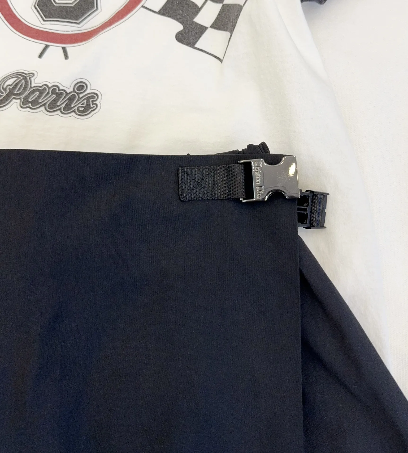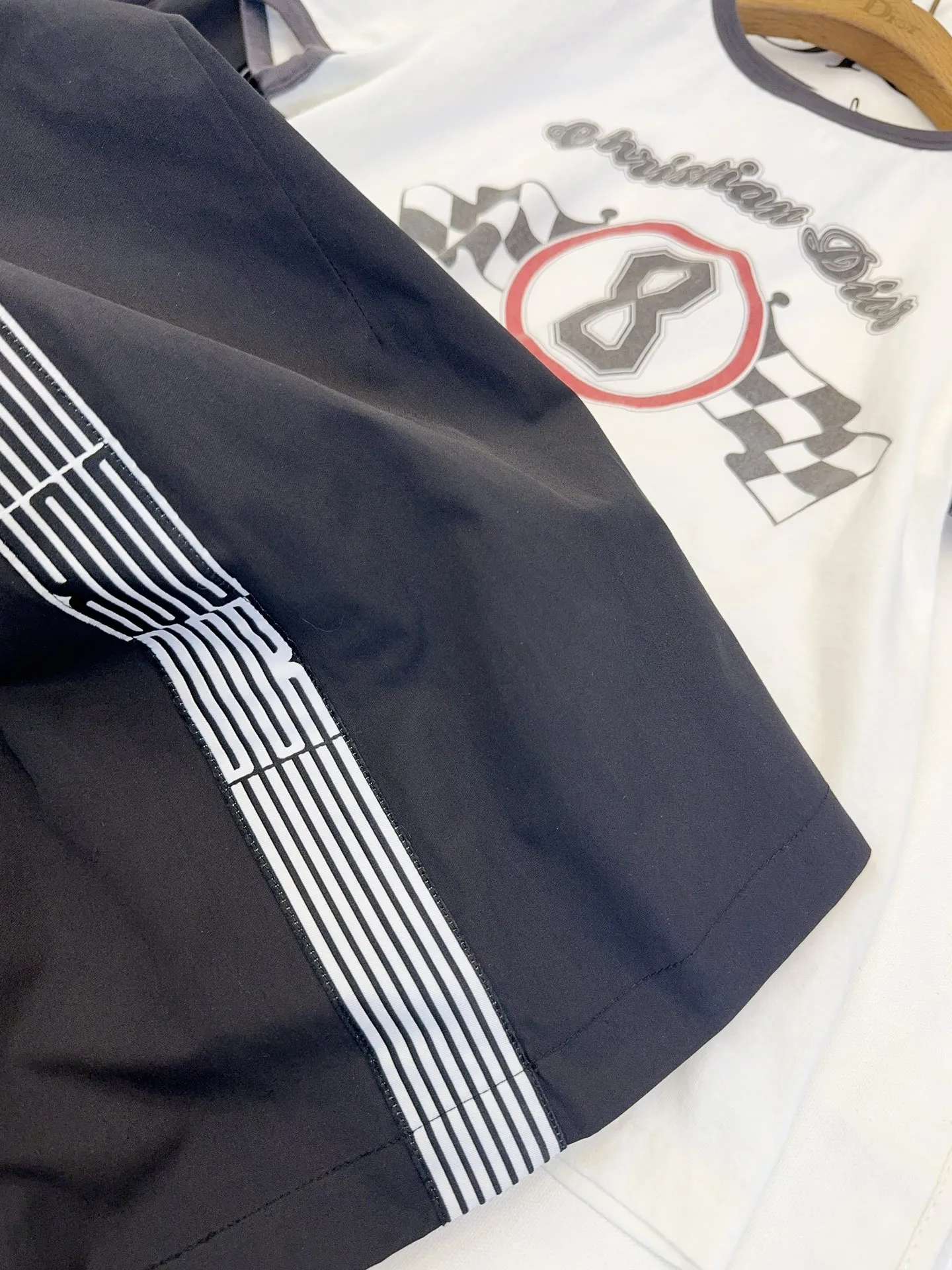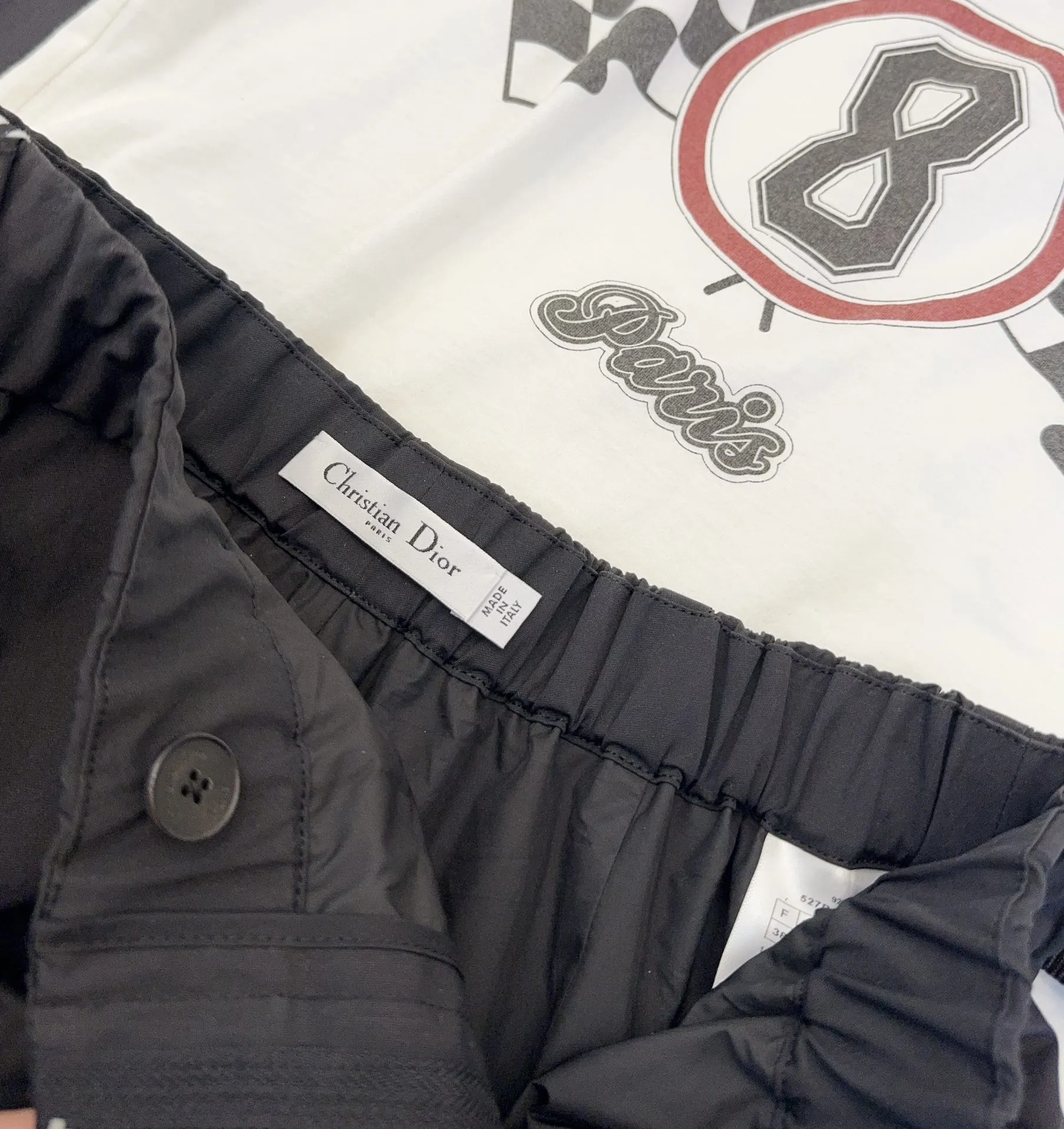 Мини-юбка Dior 2025 года выглядит как настоящий шедевр моды. Использование оригинальных тканей, подчеркивает внимание к деталям и высокое качество материалов. Сочетание четких линий и удобного кроя делает эту юбку идеальным выбором как для повседневной носки, так и для особых случаев. Интересный дизайн с соединением передней части и цельной юбки создает ощущение многослойности, а регулировка с помощью серебристой пряжки-кнопки добавляет современного шика. Боковая сторона с выпуклой лентой с буквенным логотипом бренда является стильным акцентом, который подчеркивает индивидуальность изделия и принадлежность к известному дому моды.
