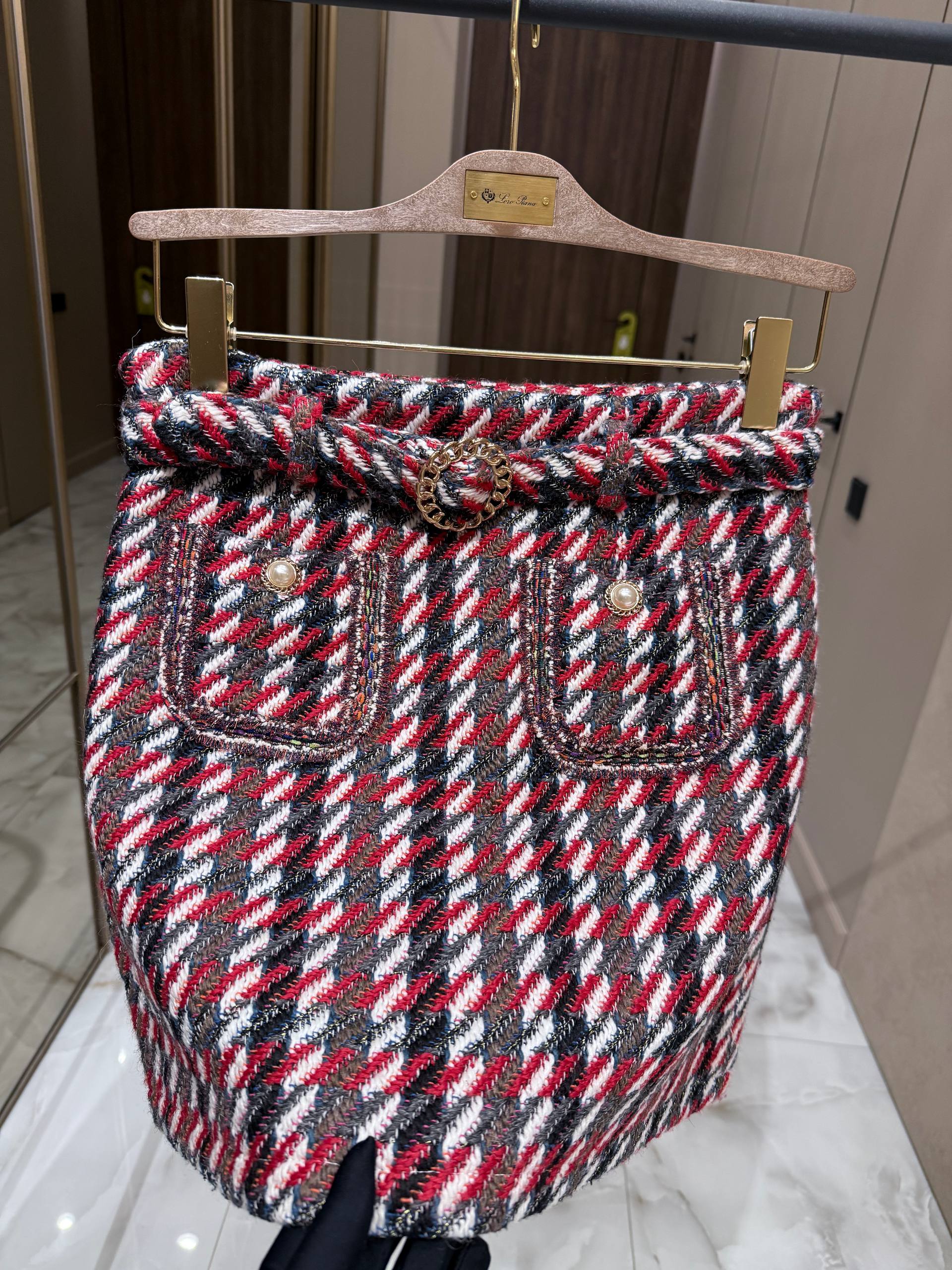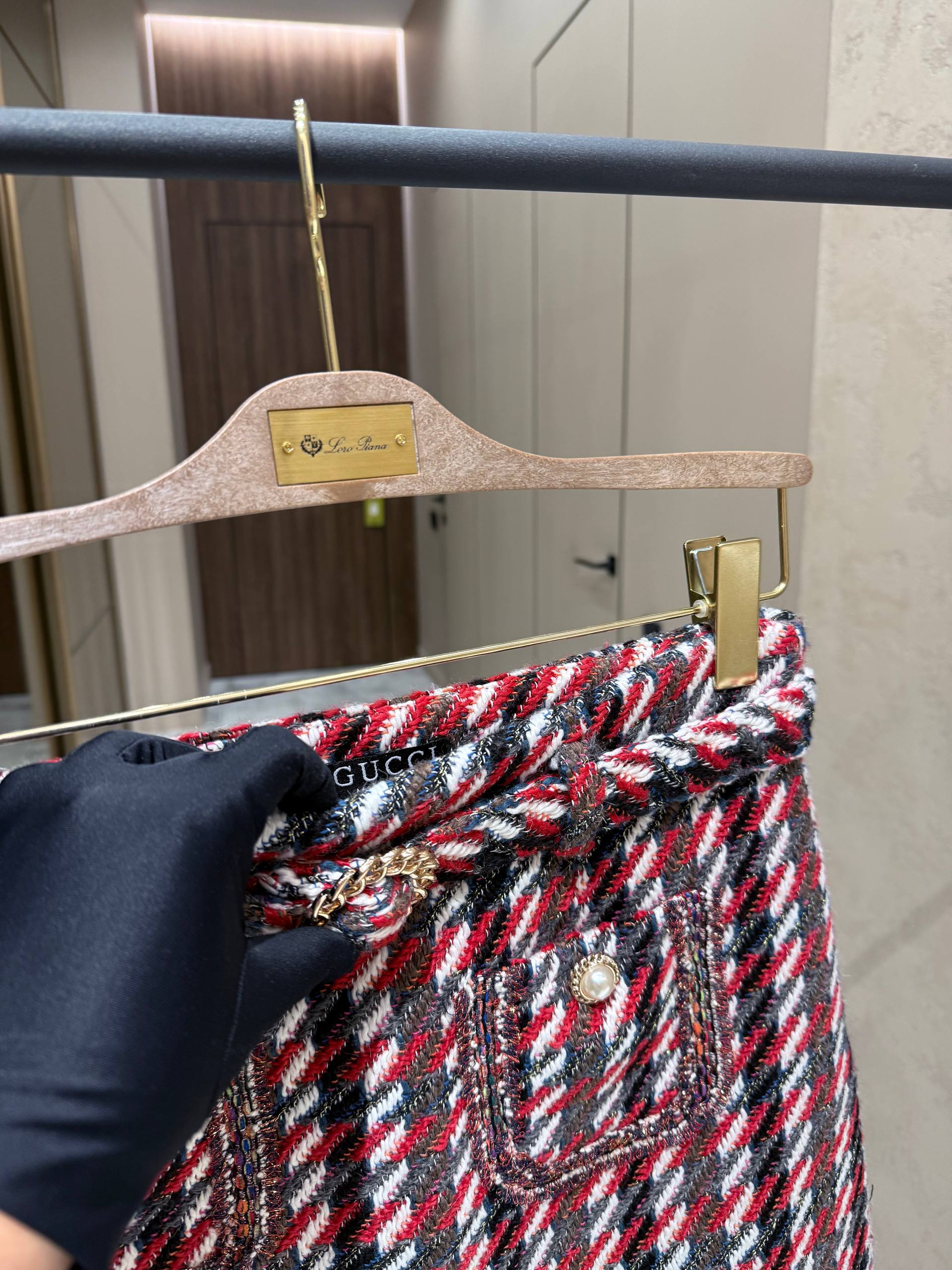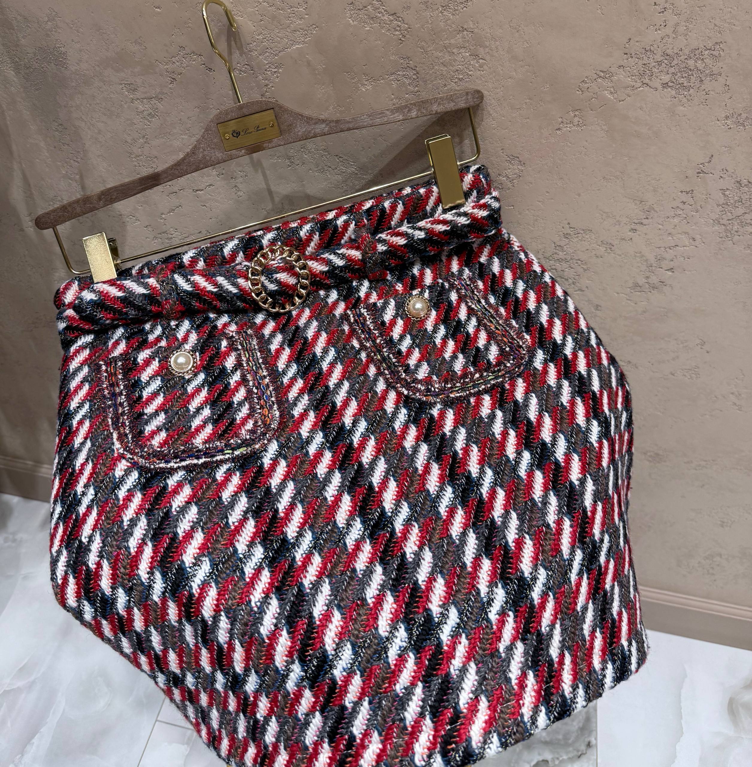 Женская винтажная юбка Gucci из твидовой шерсти саржевого плетения — элегантный предмет одежды, который сочетает в себе классические элементы и современный дизайн.